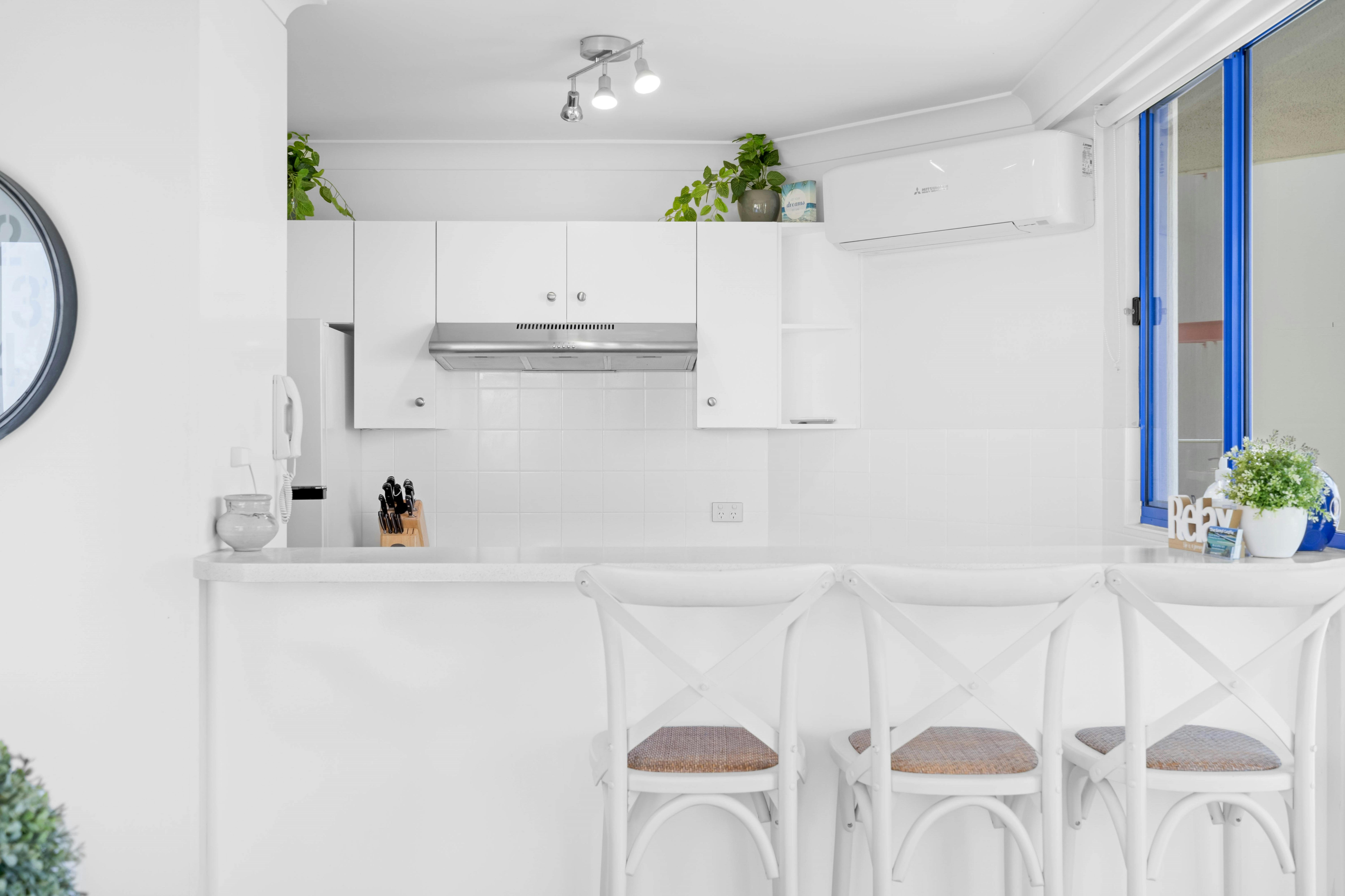 The modern kitchen is equipped with quality appliances, including a dishwasher, making mealtimes a breeze. The open-plan dining and living area is air-conditioned and comfortably furnished - the perfect space to gather and unwind after a day by the water.