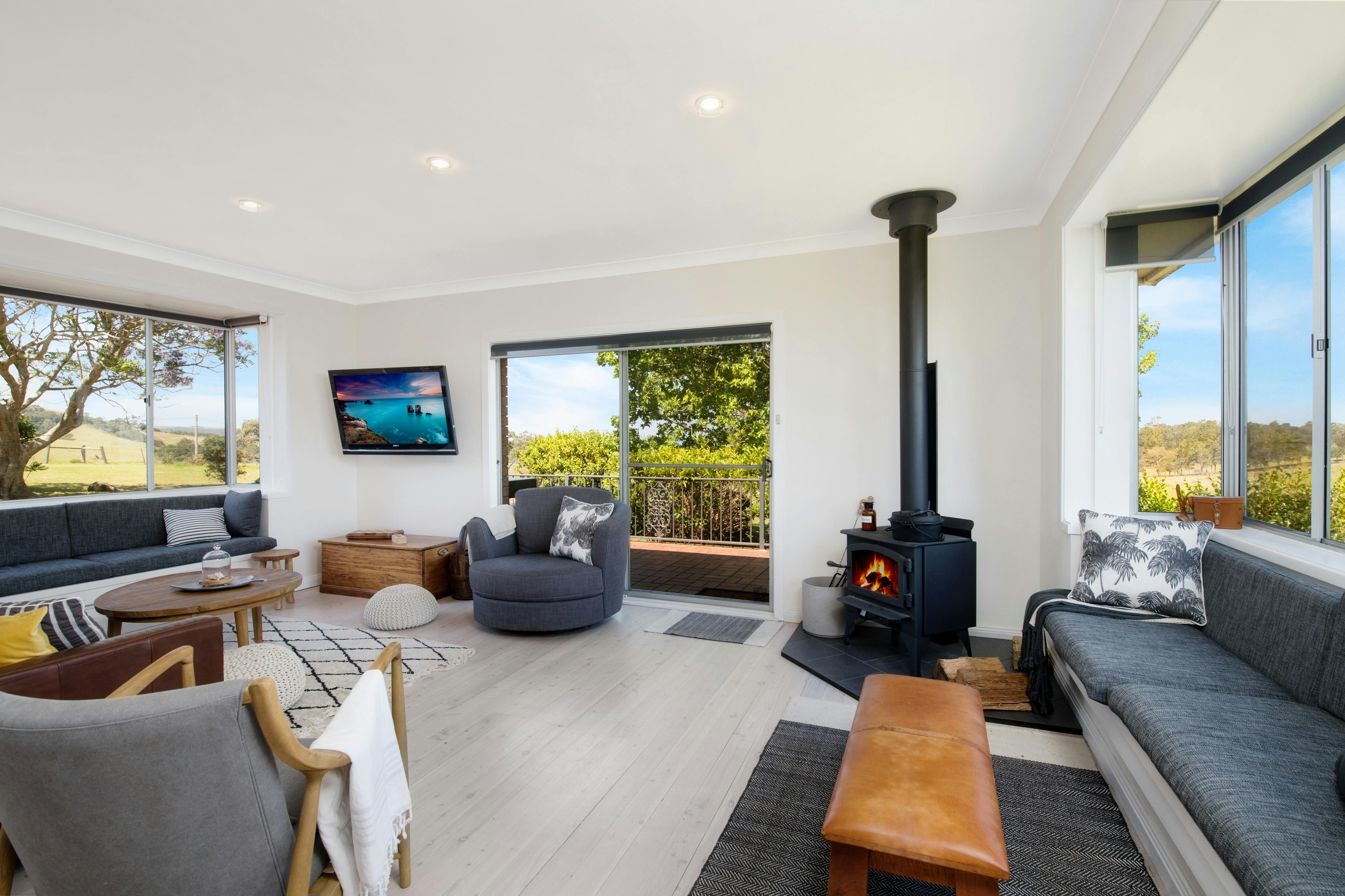 This property can be enjoyed all year round. In winter guests can enjoy the firepit and indoor fireplace, and in summer sit back and relax under the shade of the Jacaranda and Maple trees.
