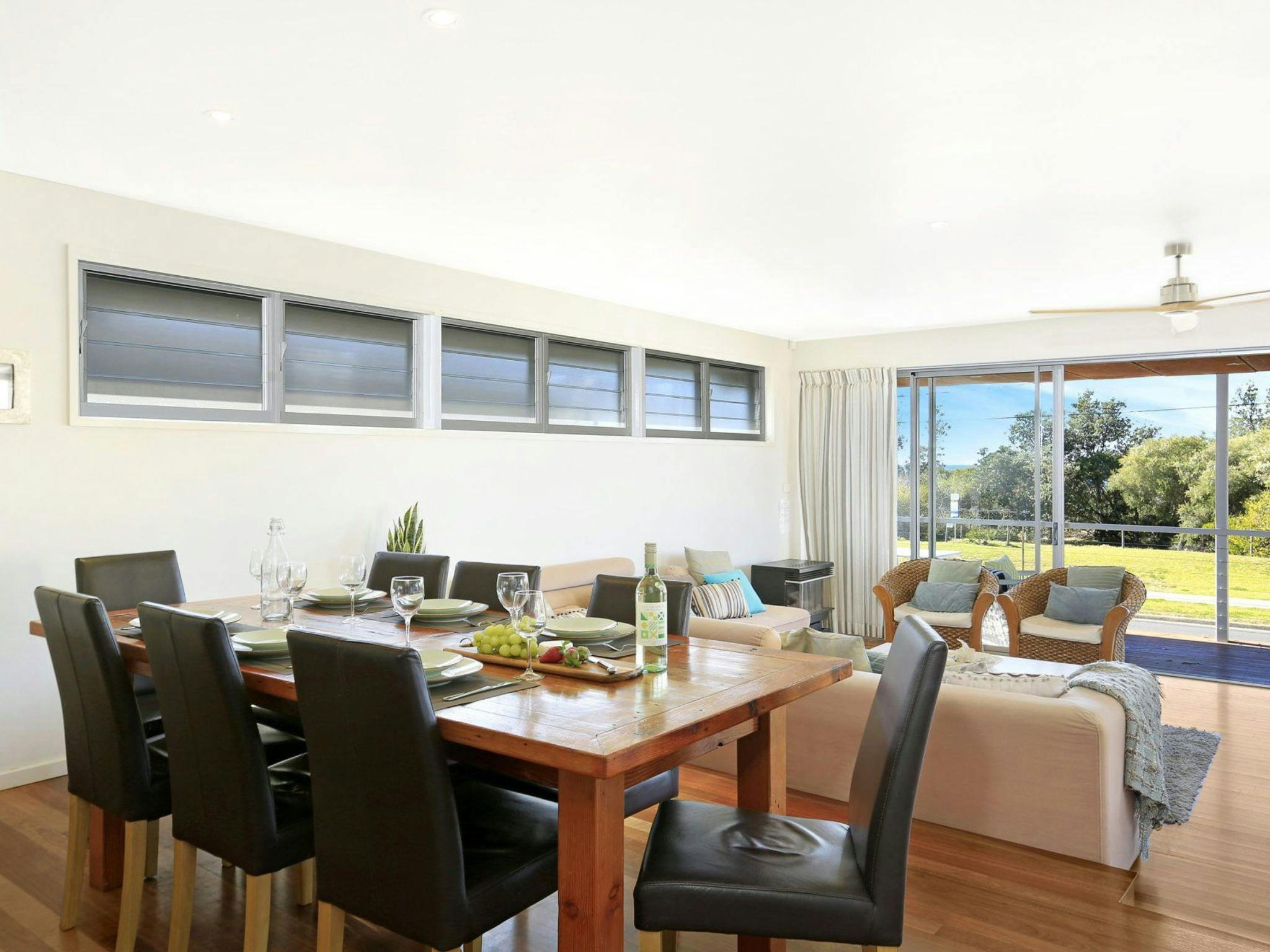 Views from the open plan upstairs living, dining and kitchen areas are to be enjoyed all year round and lead to a spacious balcony perfect for entertaining. On this level are three bedrooms, a sun room with a day bed and two bathrooms.