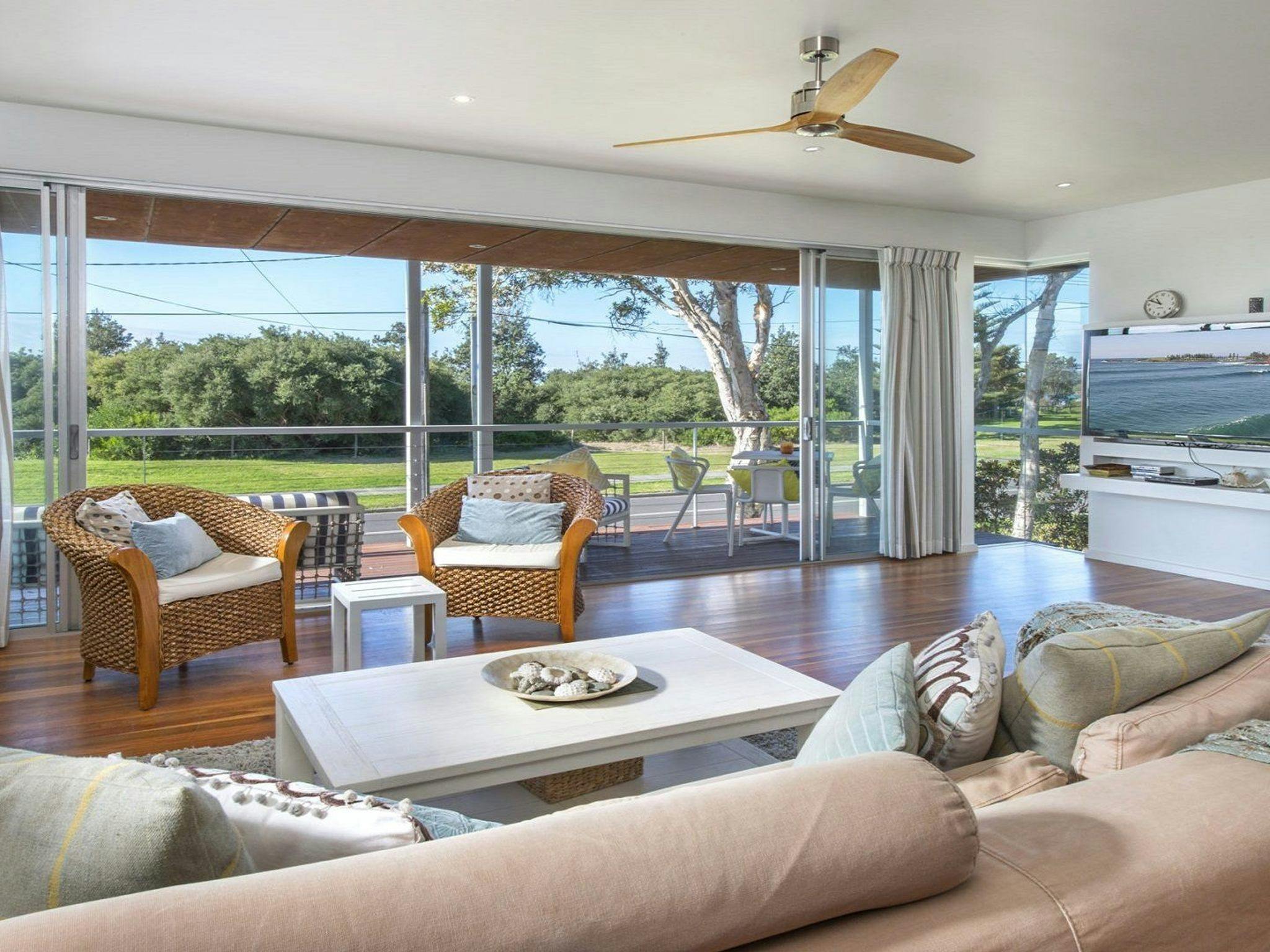 This is the perfect family holiday home where direct access to the surf-patrolled Jones Beach is across the road, and the children's play park is just a stroll away.