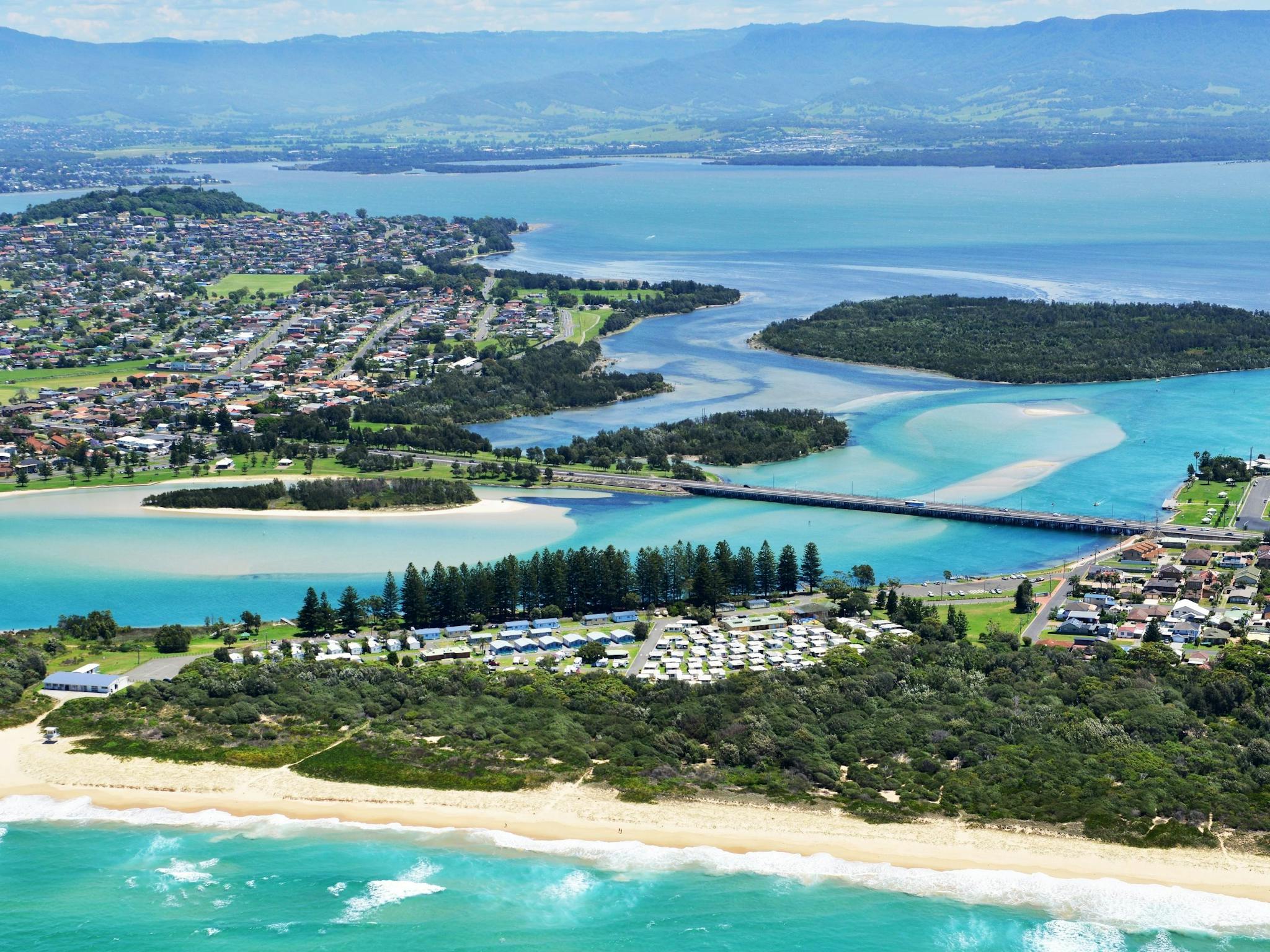 Nestled between picturesque Lake Illawarra and the sparkling blue waters of Windang Beach, this park is a haven for water enthusiasts, offering the very best in fishing, boating, windsurfing and surfing, or simply enjoy the golden sunrises or moonlight-caressed waters.