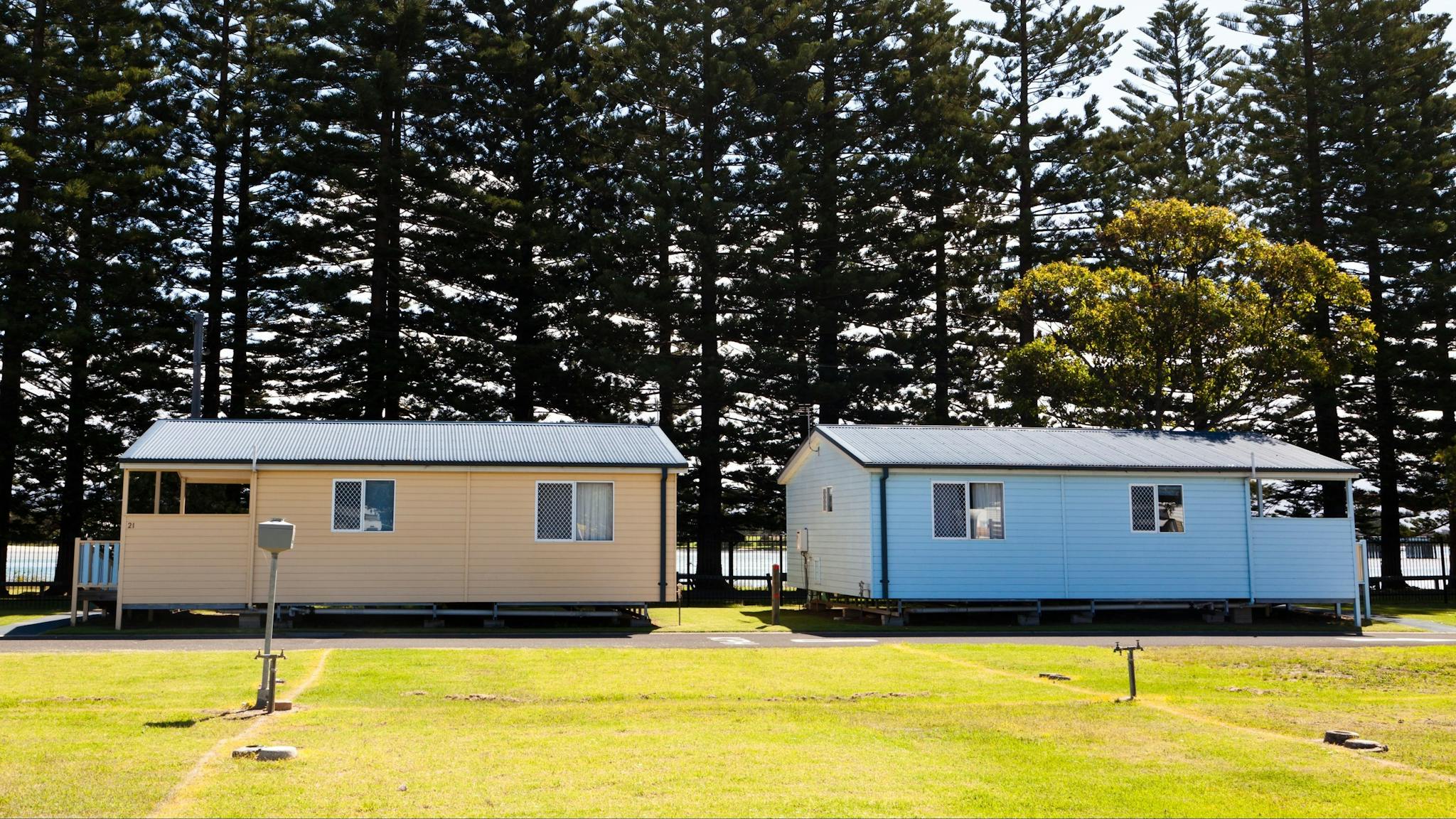 The Park offers a variety of self-contained one, two or three-bedroom cabins - many equipped with washing machines and dryers, air-conditioning, a spa, a private barbecue, and undercover verandas with lake views. The caravanner or camper wishing to supply their own accommodation, can choose from prime powered sites with lake views, and have access to clean amenities, laundry facilities, a caravan dump point, a children's playground, sheltered barbecue areas and a boat ramp.