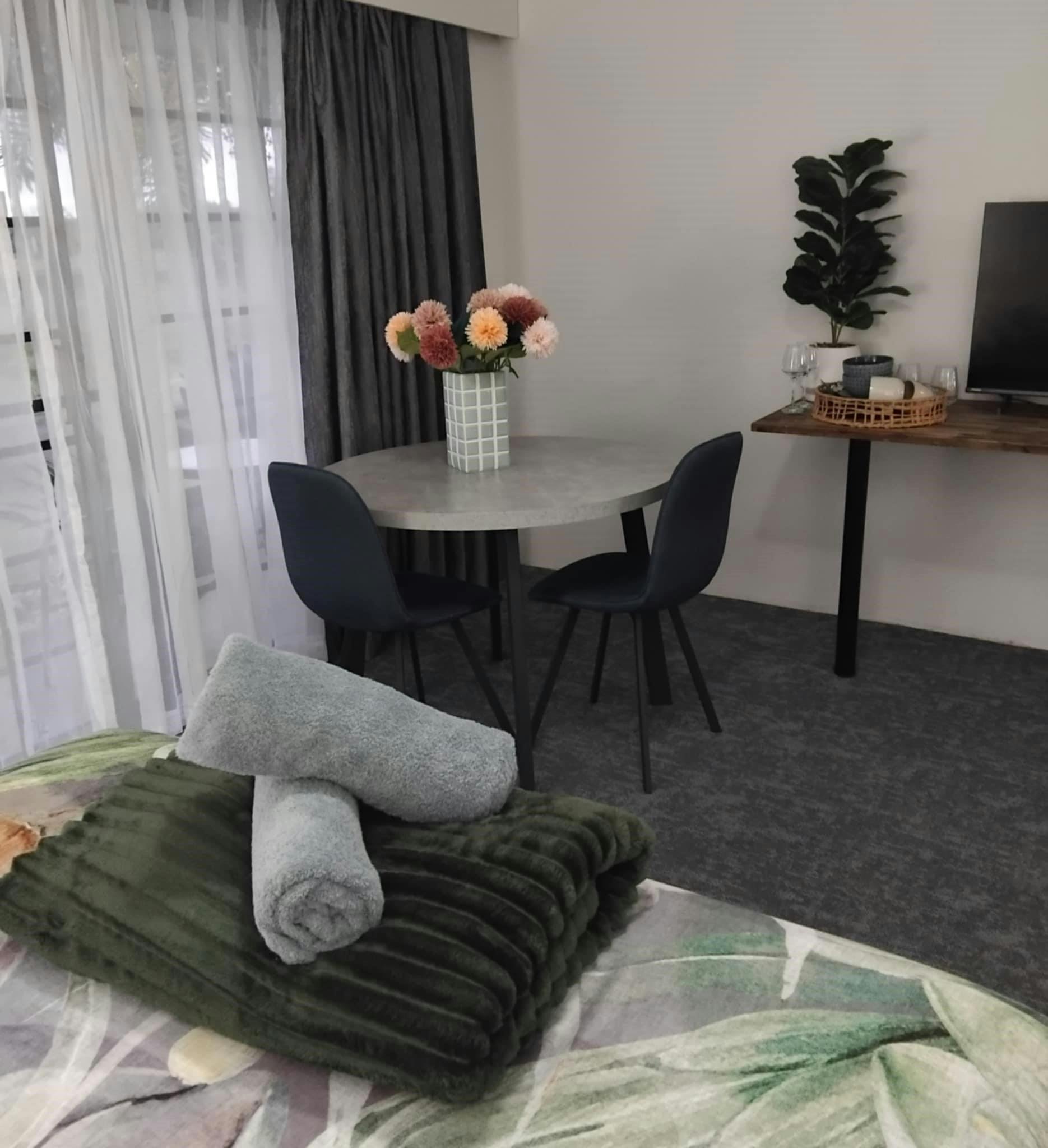 Each room has a small terrace and onsite parking. They offer pet friendly accommodation but they do not provide bedding or bowls. Pets have 3 acres onsite to roam and access to scenic walks around the old Lismore lake.