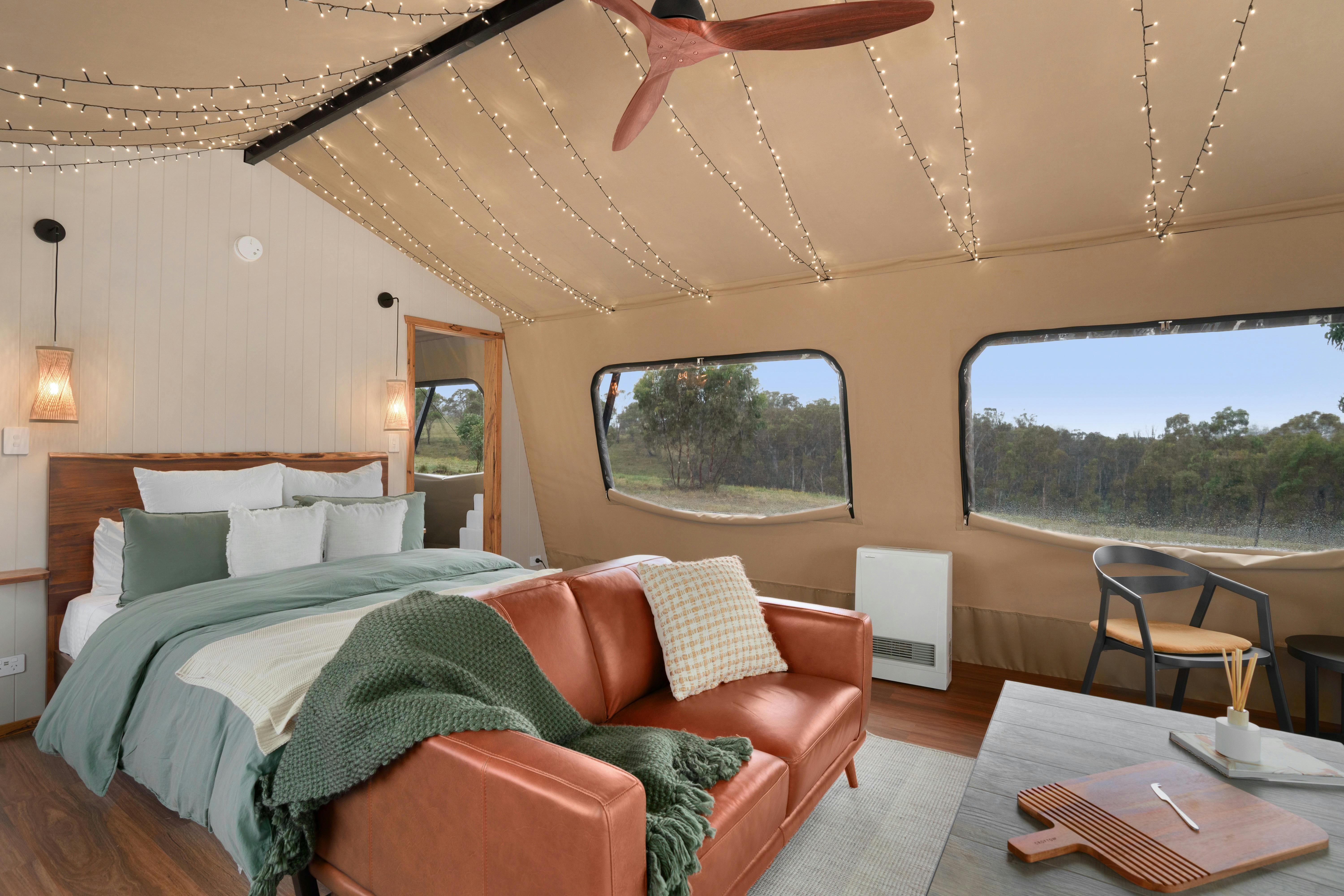 At Akuna Estate, they focus on sustainability without compromising comfort. Their luxury tents are Australian-made and crafted from eco-friendly materials to minimise environmental impact.