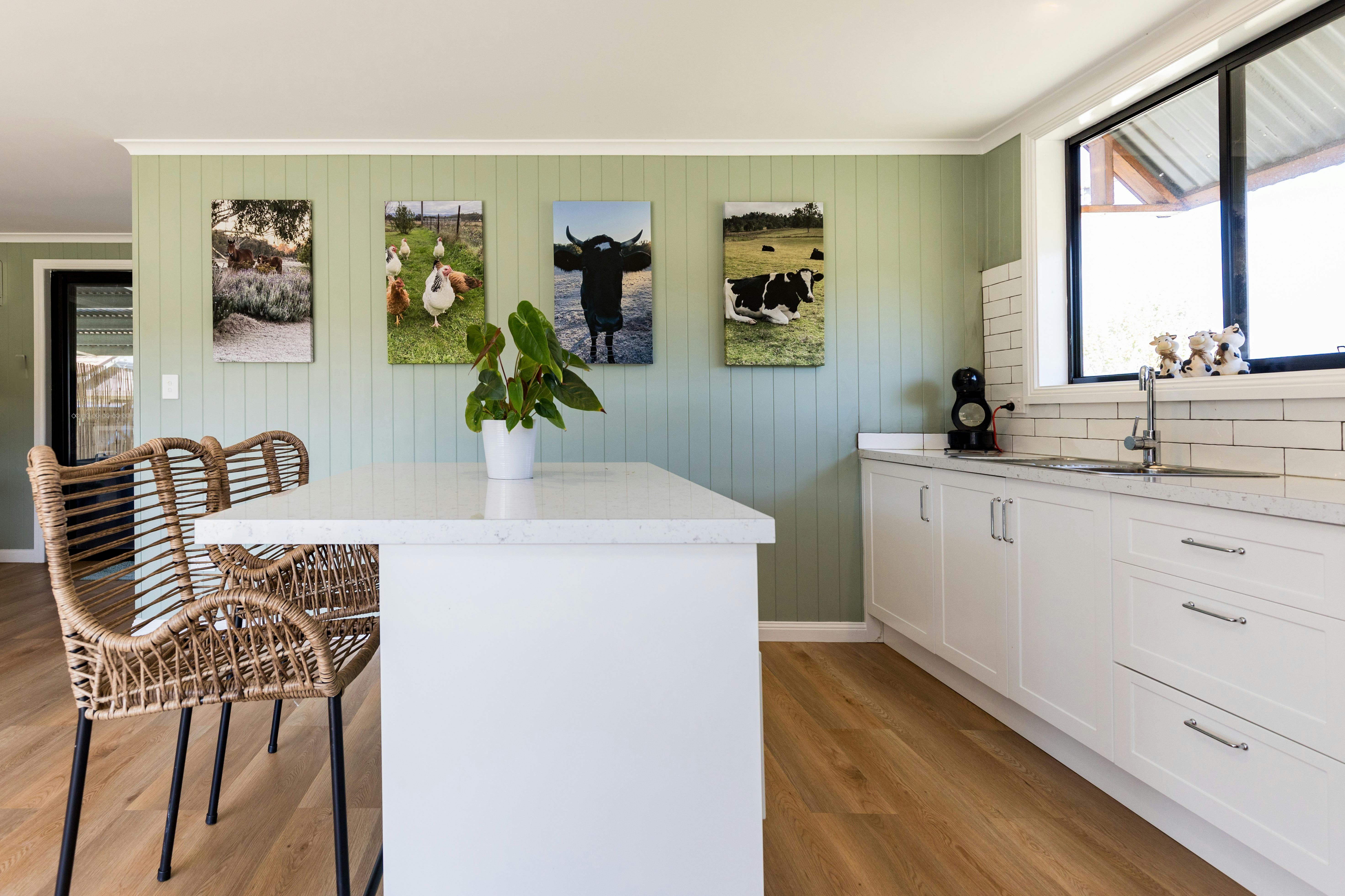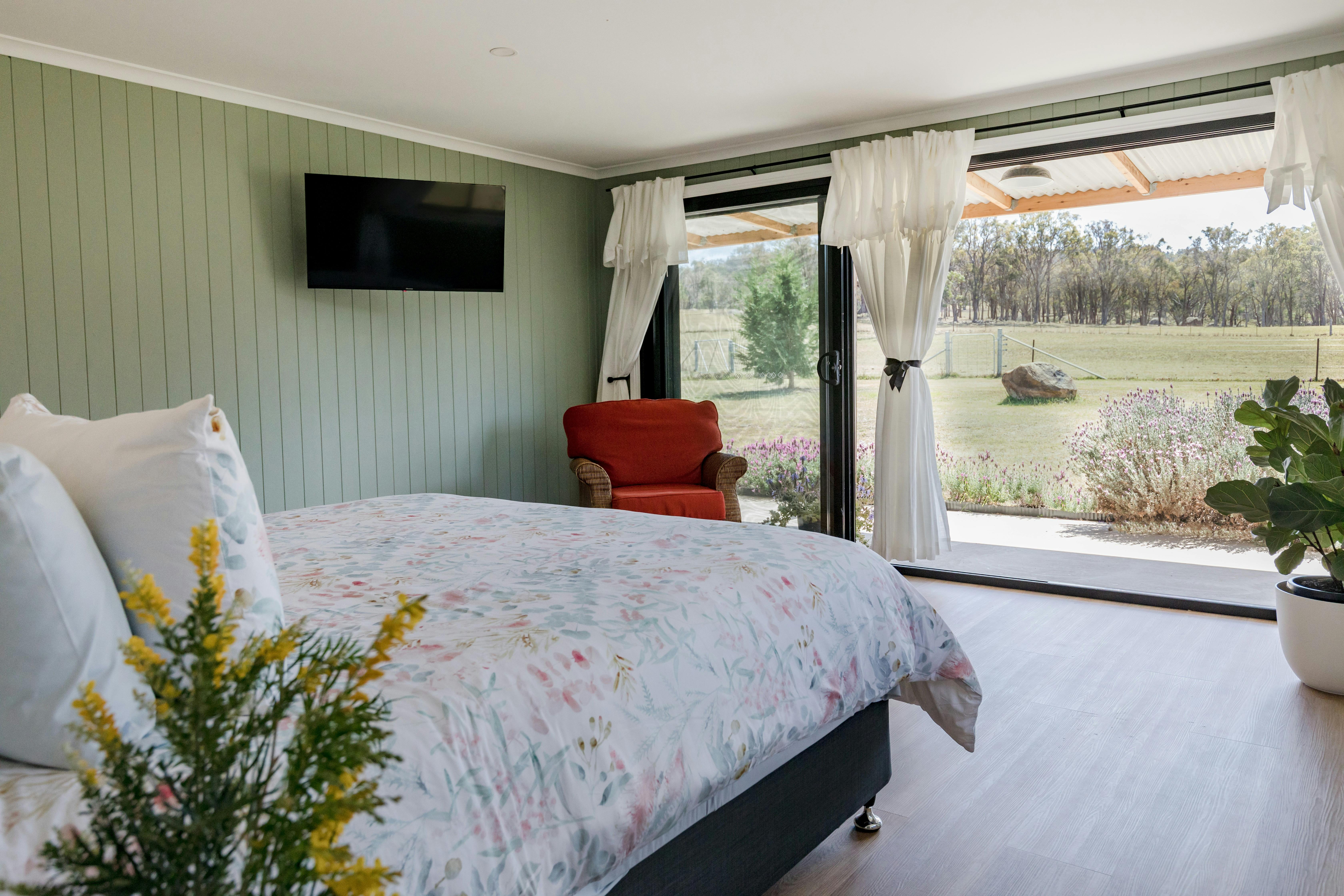 Q1 on Crestview accommodates two guests, sleeping in a luxurious king-size bed overlooking the back paddock. There's a modern open-plan full kitchen, dining and lounge area, an outdoor covered barbeque entertaining space, a bathroom with laundry facilities, and a carport. Keep warm in the winter months with a fireplace and an outdoor firepit to enjoy while gazing at the Mudgee city lights at night. You also have reverse-cycle air conditioning.