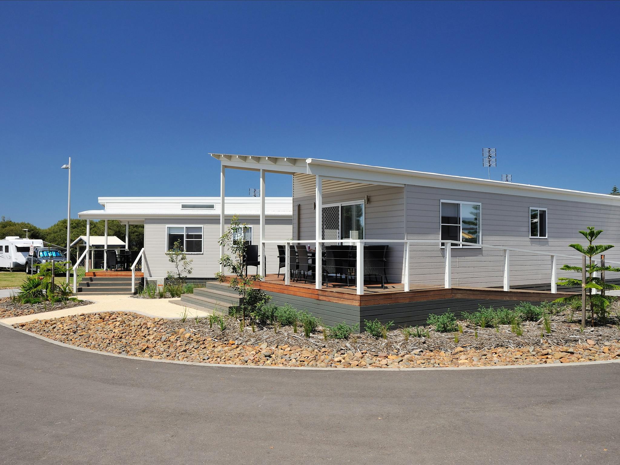 Wake up to the sound of the ocean with their beachfront accommodation options. These include three and two bedroom villas, accessible villas and sites. Take advantage of a great range of facilities and facilities including amenities, camp kitchen, lounge and television area, games room, playground and barbecue facilities. Plus, if you are travelling with your four-legged friend, dogs are also welcome when staying on sites.
