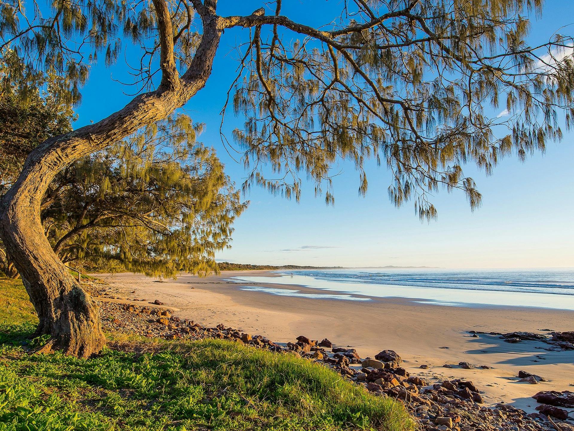 Ocean Drive skirts around the beach with access only available at Middle Rock, where there are no facilities, while Bonny Hills has the surf club, a park, picnic area, and two caravan parks. Rainbow Beach is patrolled during school holidays from October through April.