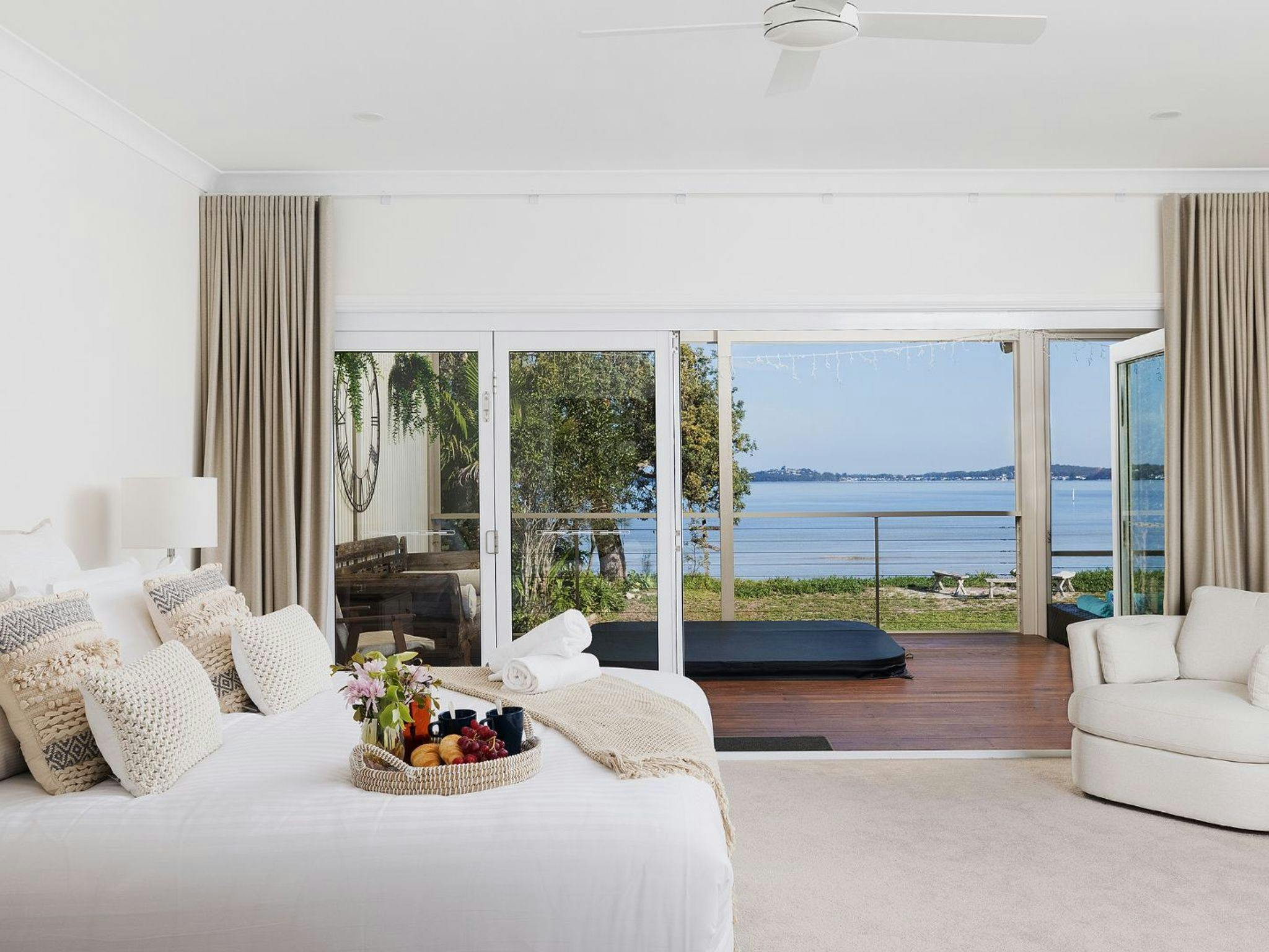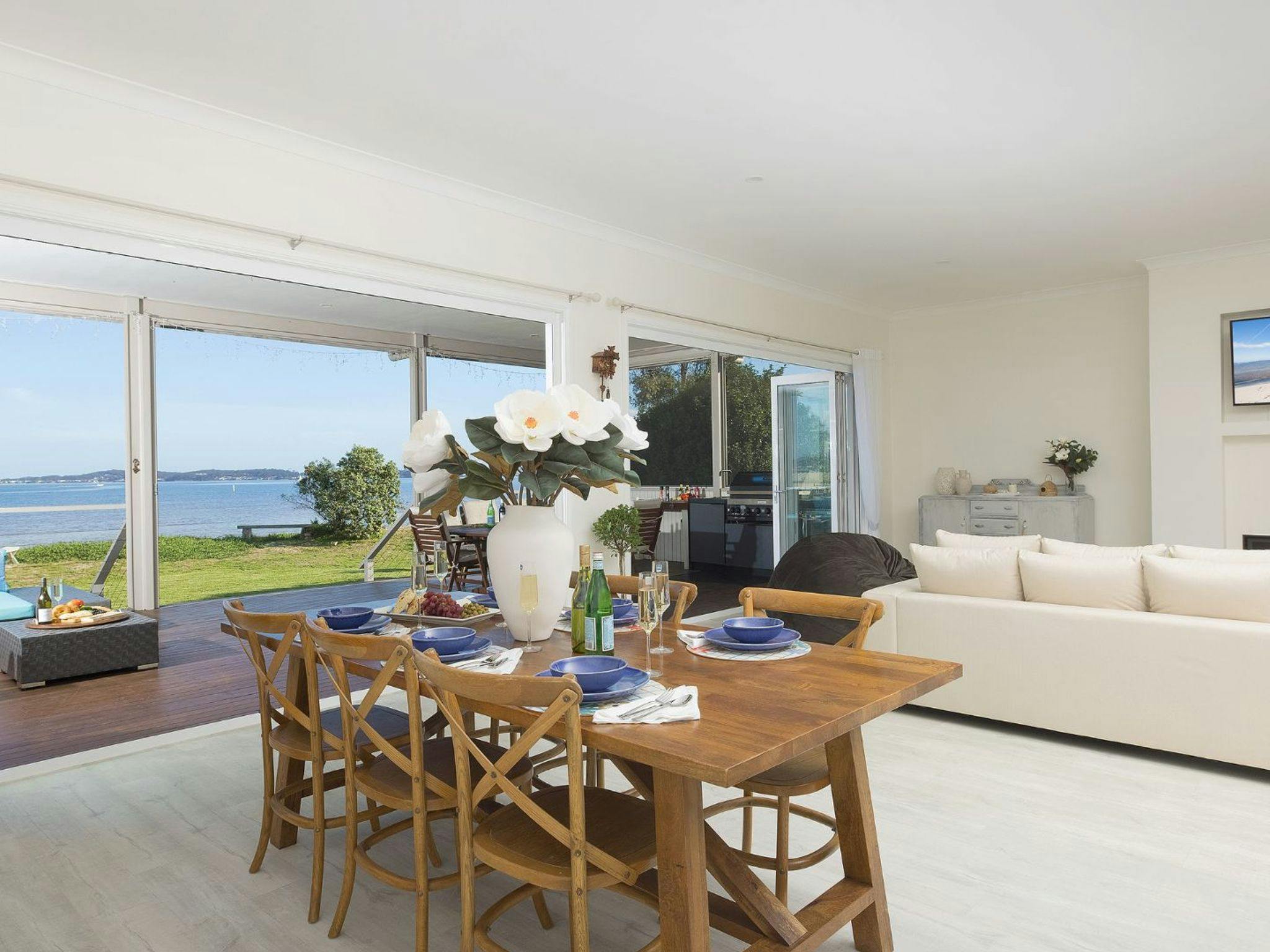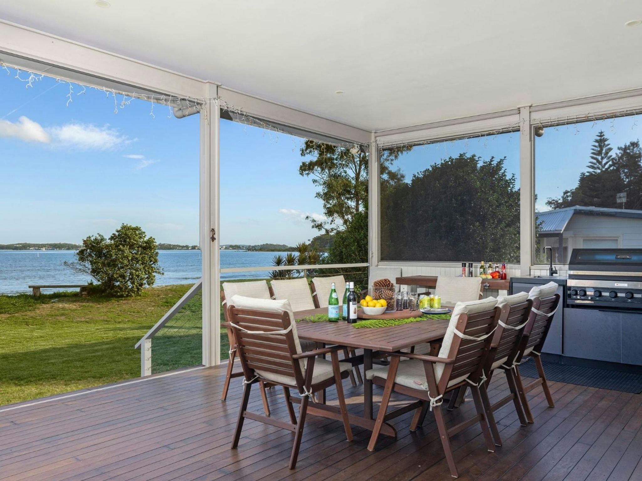 Outside, immerse yourself in the beauty of our waterfront oasis, the water views paint a breathtaking backdrop to your escape. Lounge outside on the outdoor covered entertaining deck, firing up the barbecue as you soak in the serenity. A flat grassy yard offers ample space for leisurely activities and outdoor games.