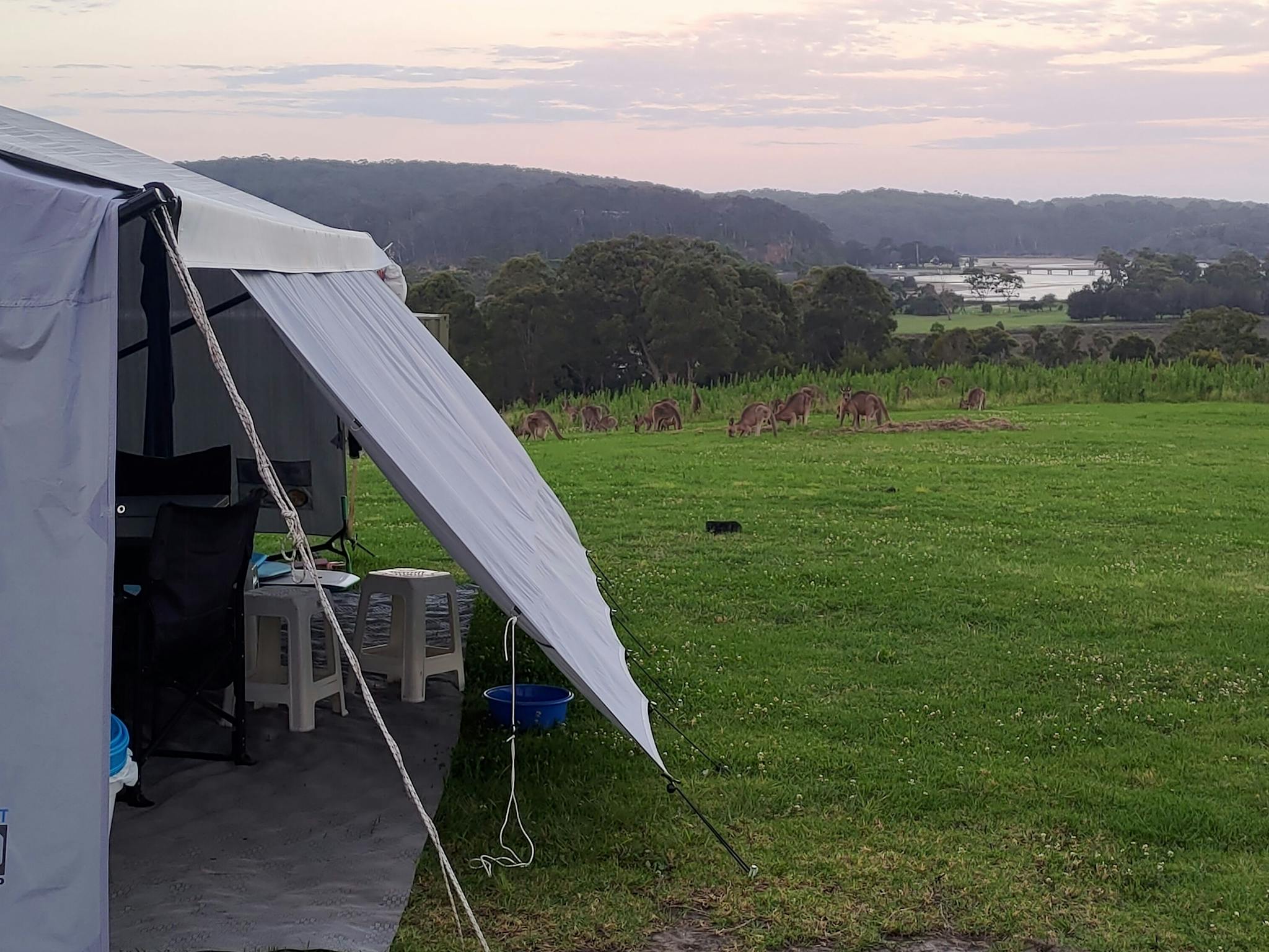 Choose where to park your van to get the best views. The block is connected to town water as well for use for drinking etc. Stay here and use it as a base to explore Bega Valley, Tathra, Merimbula/Pambula and all that is to offer. Visit the nearby beach. Take your boat and launch from Tathra or Mogareeka for ocean or river fishing. Return in the evening to enjoy the beautiful colours of sunset along with the kangaroos and other native wildlife that peruse the area.