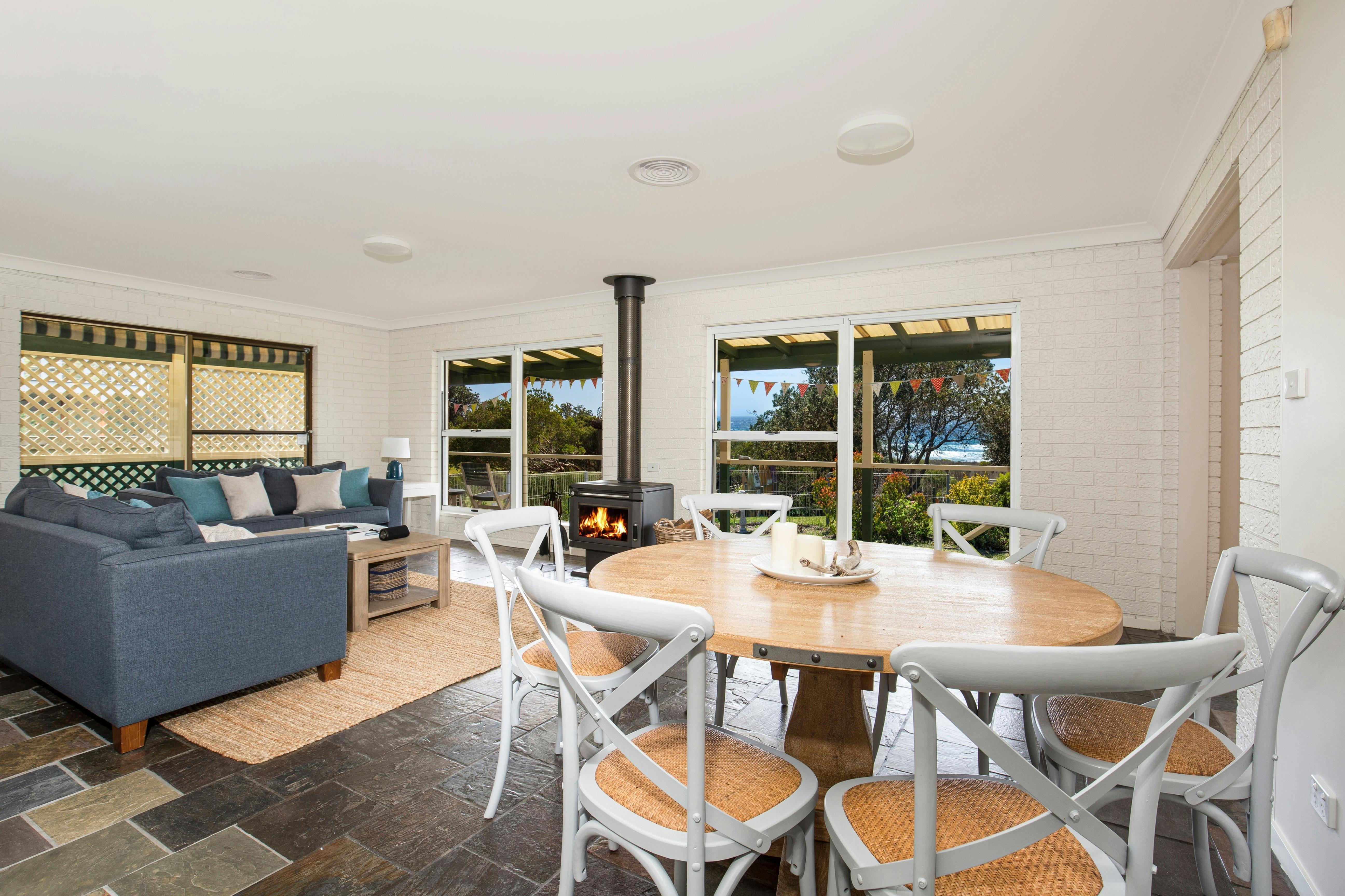 Shower off the sand in the heated outdoor shower, and enjoy lunch cooked in the modern kitchen or out on the barbecue. On a chillier day, sit by the combustion fire and read on the couch or play a board game next to marvellous ocean and bush views. The television room has Netflix for the kids to stay entertained, and Clearwater has a number of indoor and outdoor areas to relax when everyone needs their space from each other, including a sun-soaked dining area.
