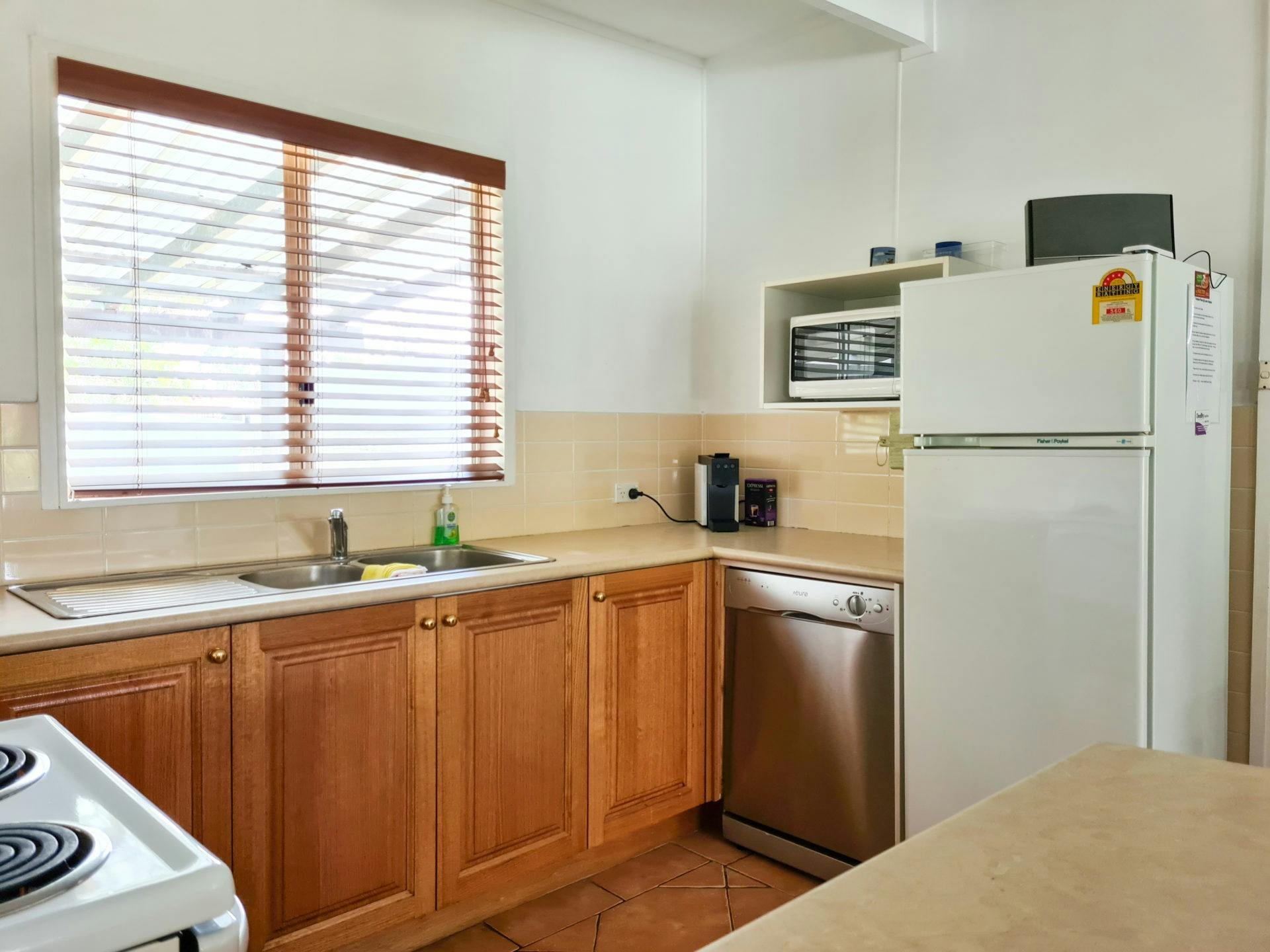 This bright home features an open-plan living, dining, and kitchen area, three bedrooms and two bathrooms (one is an en suite). The kitchen has everything you need to be able to cook meals at home including a dishwasher and coffee machine.