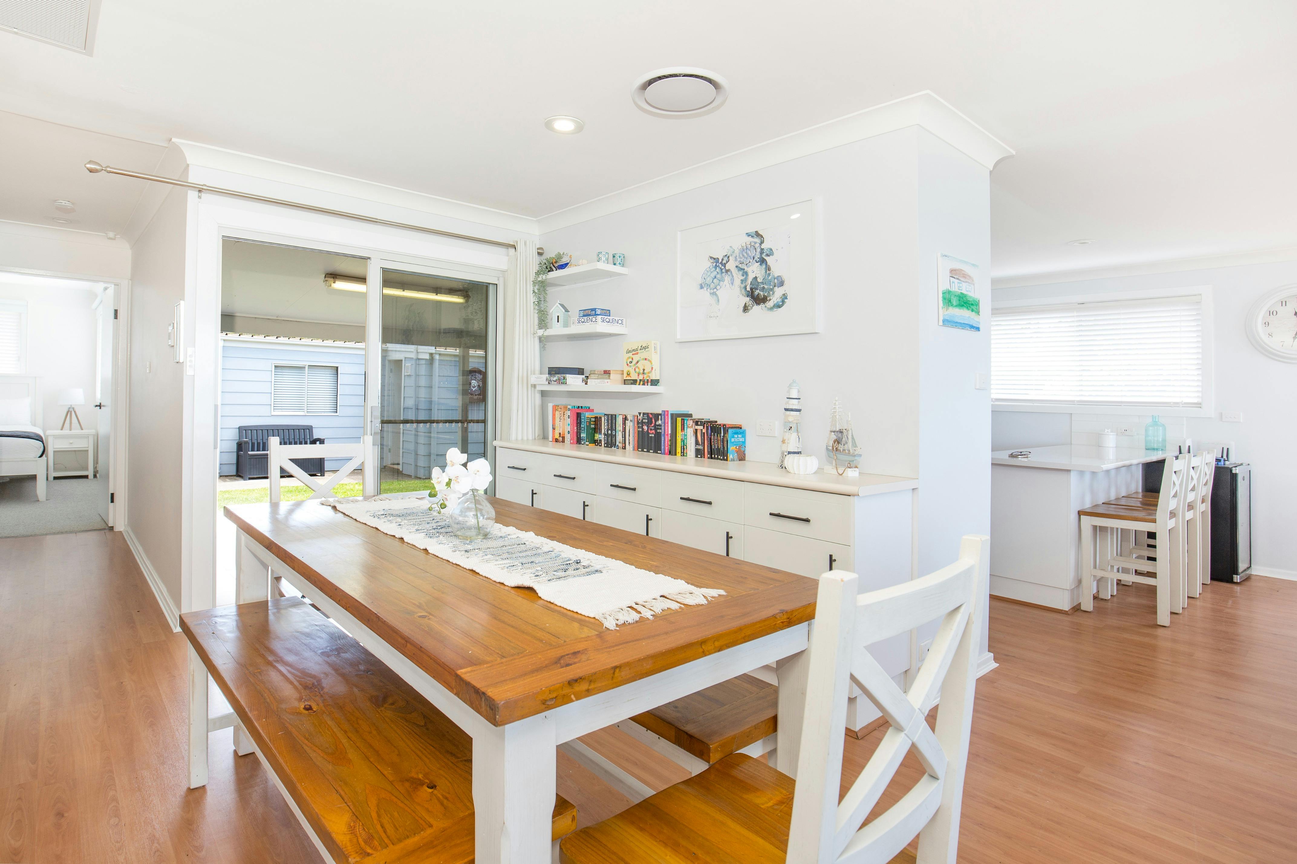 For those caffeine enthusiasts, start each day with your morning cup of coffee using the convenient Nespresso coffee machine in the well-stocked kitchen. Here, you'll find a home that's as inviting as the ocean breeze that wafts through its windows. With two bathrooms, including one conveniently located just steps away from the main house, there’s plenty of space for everyone. The entire property is adorned with ducted air conditioning, ensuring your comfort on even the hottest days.