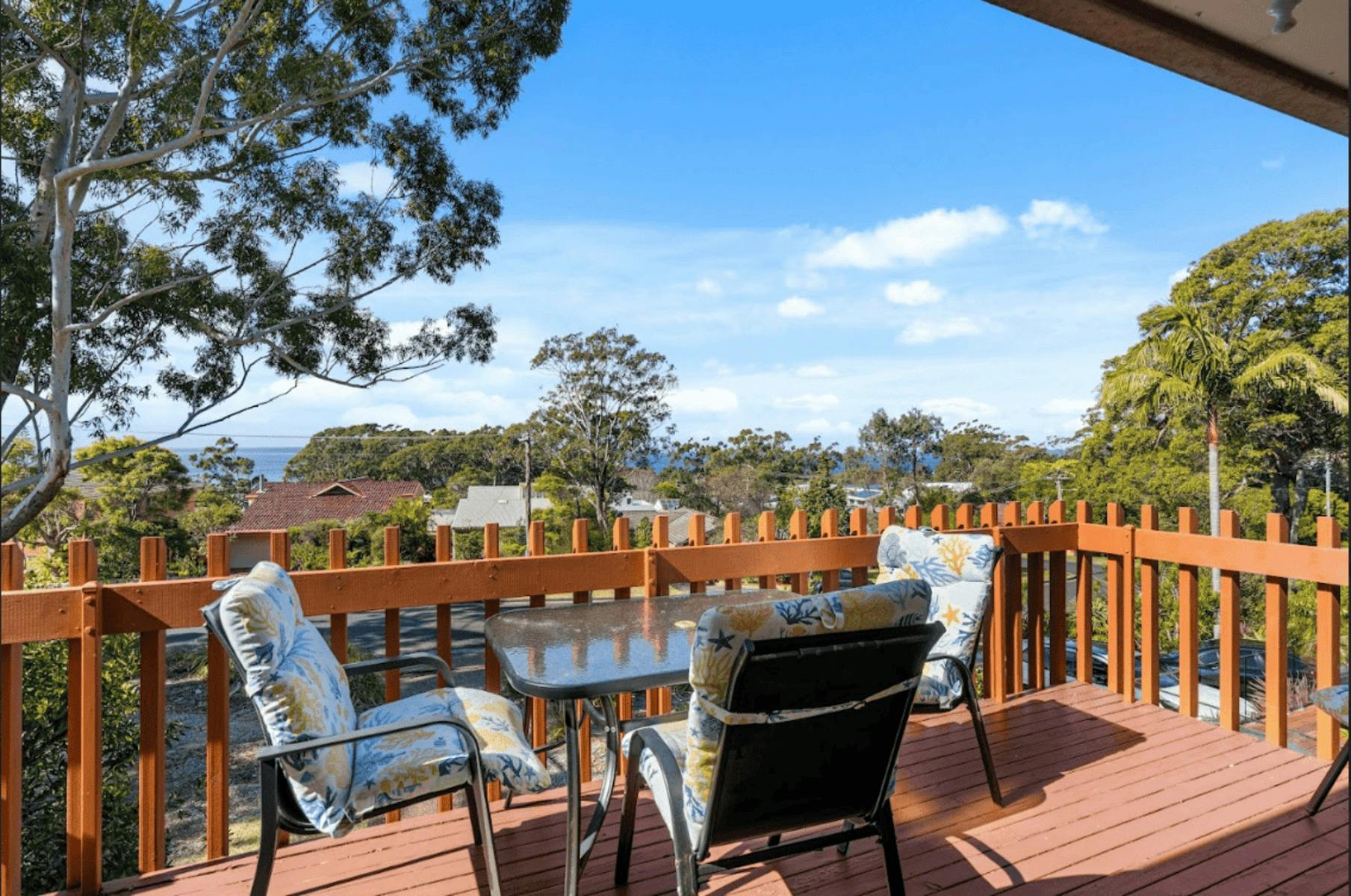 With easy access to cafes, golf, parks, and leisure activities, every day feels like a holiday at Baybreeze. Sleeps 7. Bed 1: Queen bed, with built-in wardrobe. Bed 2: Queen bed with single bed, portable heater and drawers. Bed 3: Single bed x 2 with portable fan and built-in wardrobe. Bath 1: Main bathroom: Bath, shower, toilet and vanity. Bath 2. Downstairs Bathroom Shower, toilet and vanity. Products provided: Shampoo, conditioner, body wash, handwash, toilet paper and tissues. Carport: 1. Off-street parking: 2. Boat Parking: Yes off Lanyon Street. Nearest beach: Nelsons Beach close by. Nearest shops: Vincentia Coles close by.