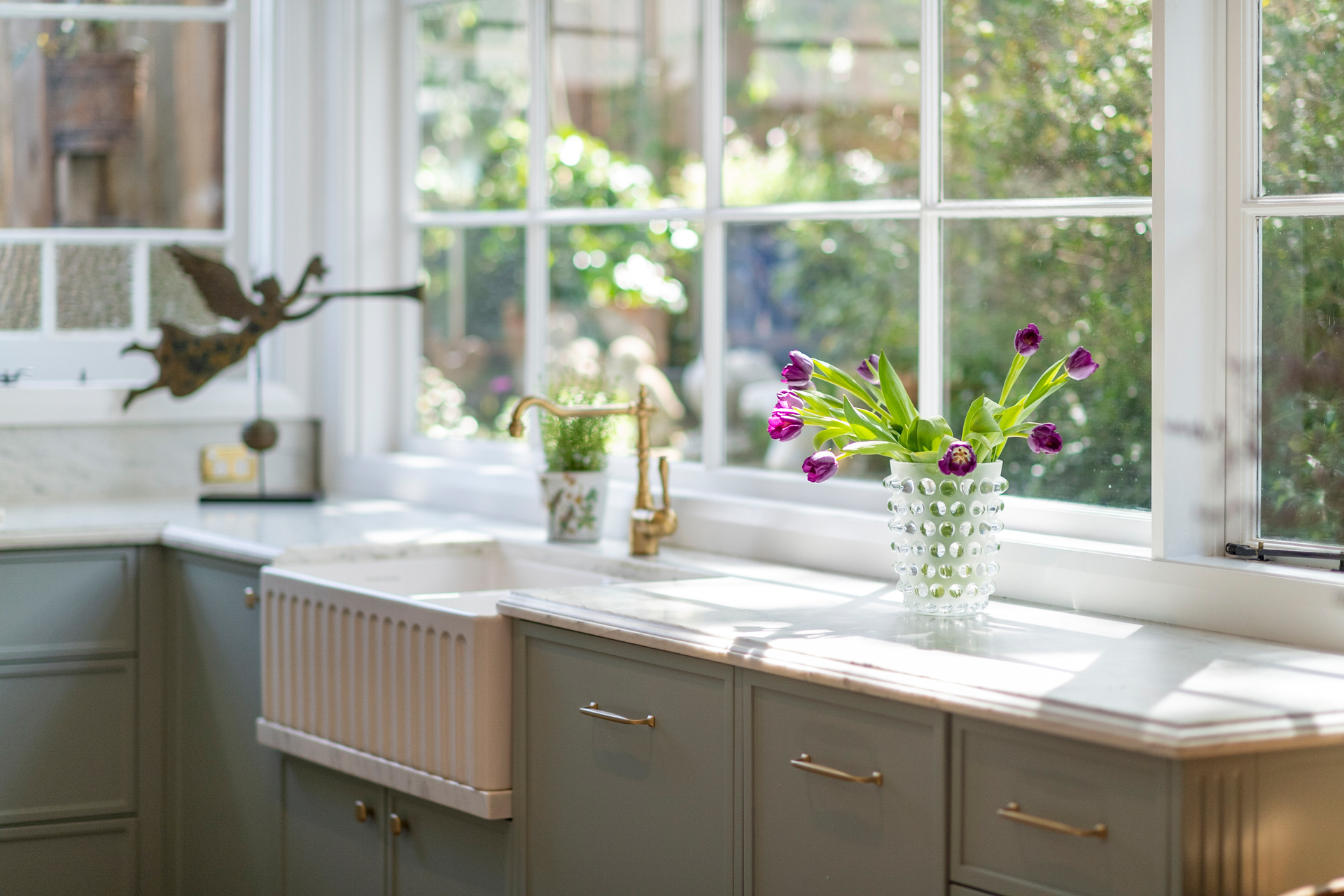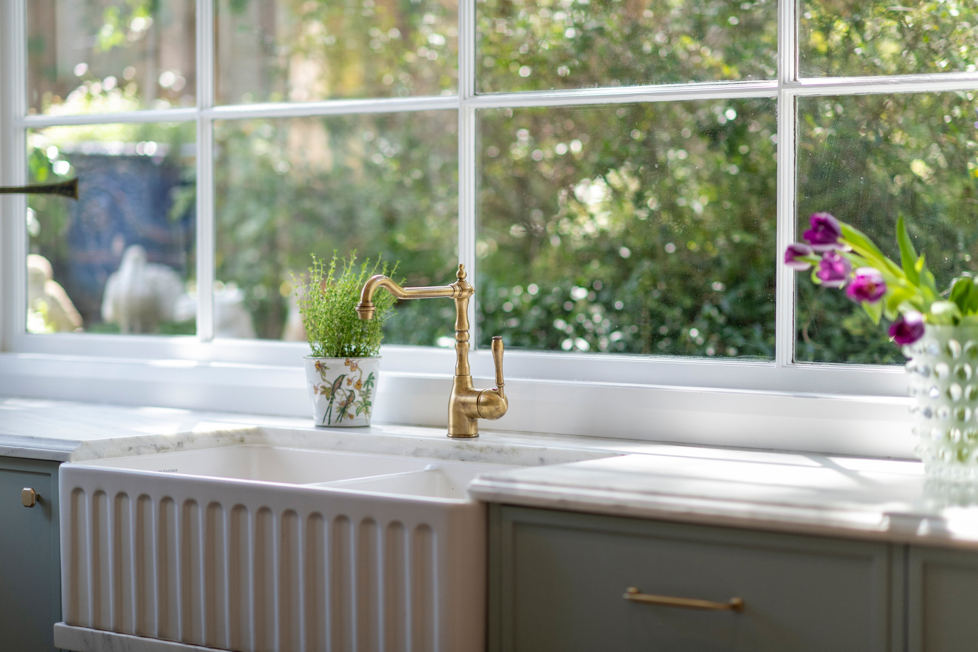 - Newly fitted bespoke gourmet kitchen with sculpted marble benchtops/splashbacks, Turner Hastings double butler sink, premium AEG appliances including a 4-burner gas cooktop, and a spacious walk-in pantry offering abundance of storage