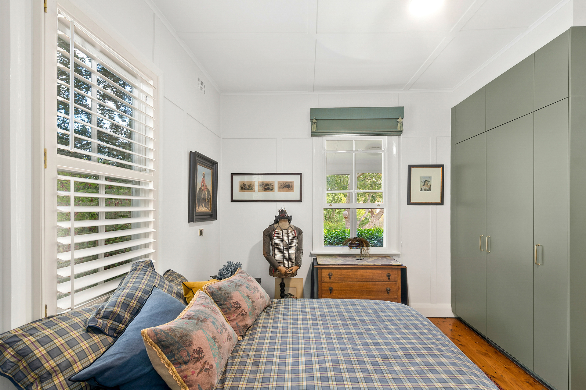 - Elevated ceilings, original timber floorboards, classic feature panelling, and charming window shutters enhance the cottage's timeless appeal