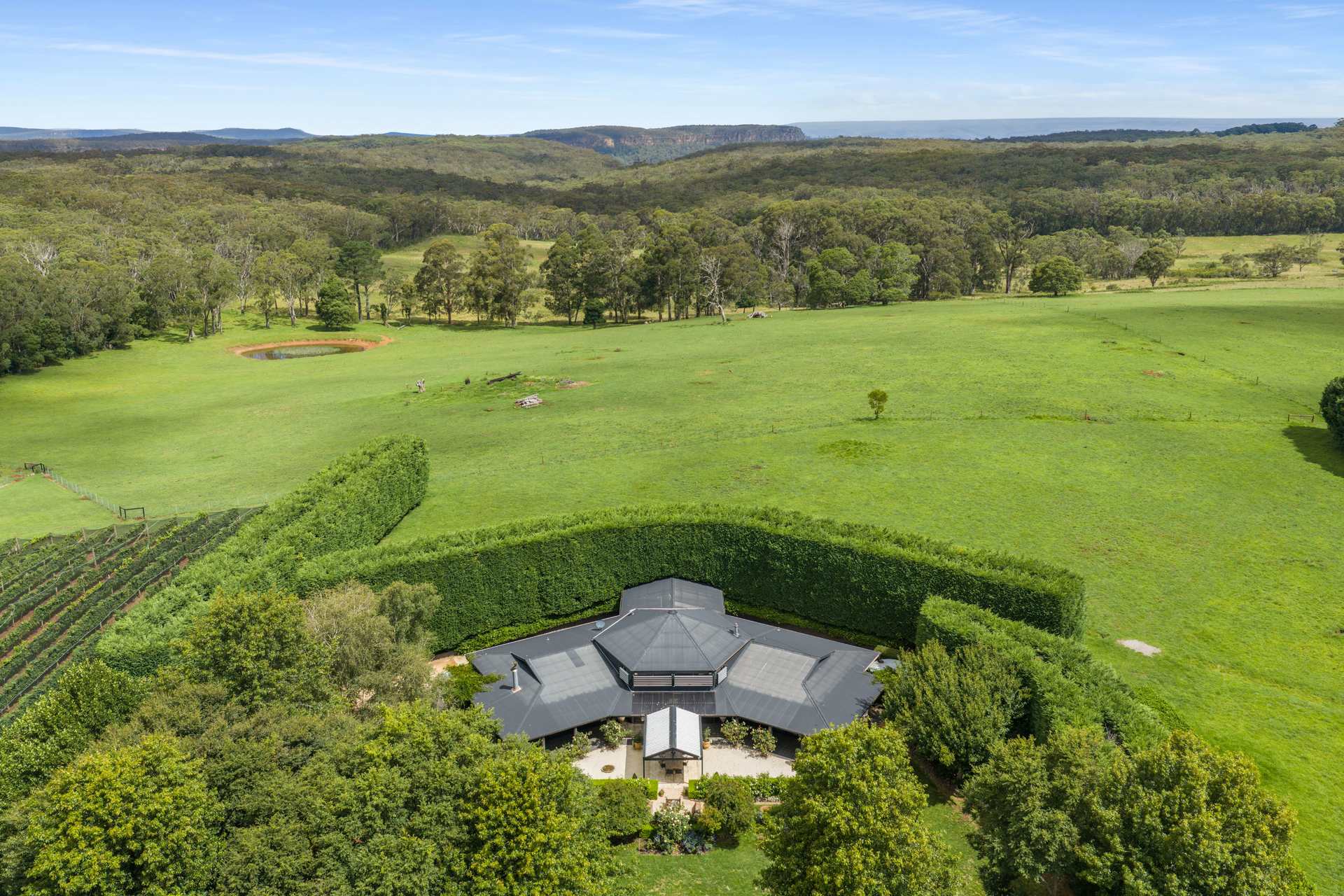 A breathtaking Southern Highlands estate, "Rocket Ranch" is an immaculate, turnkey property that offers the ultimate convergence of secluded luxury, boutique viticulture, equine enjoyment and cattle grazing capacity. Accessed via a private, tree-lined driveway and spanning 40 hectares (100 acres), this property is the perfect sanctuary for a multi-purpose retreat, providing a premier lifestyle without sacrificing functionality.