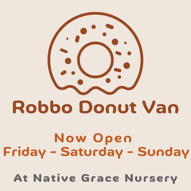 The Robbo Donut Van is open every Friday and Saturday from 9am-4pm and Sundays from 10am-2pm, right here at Native Grace Nursery.