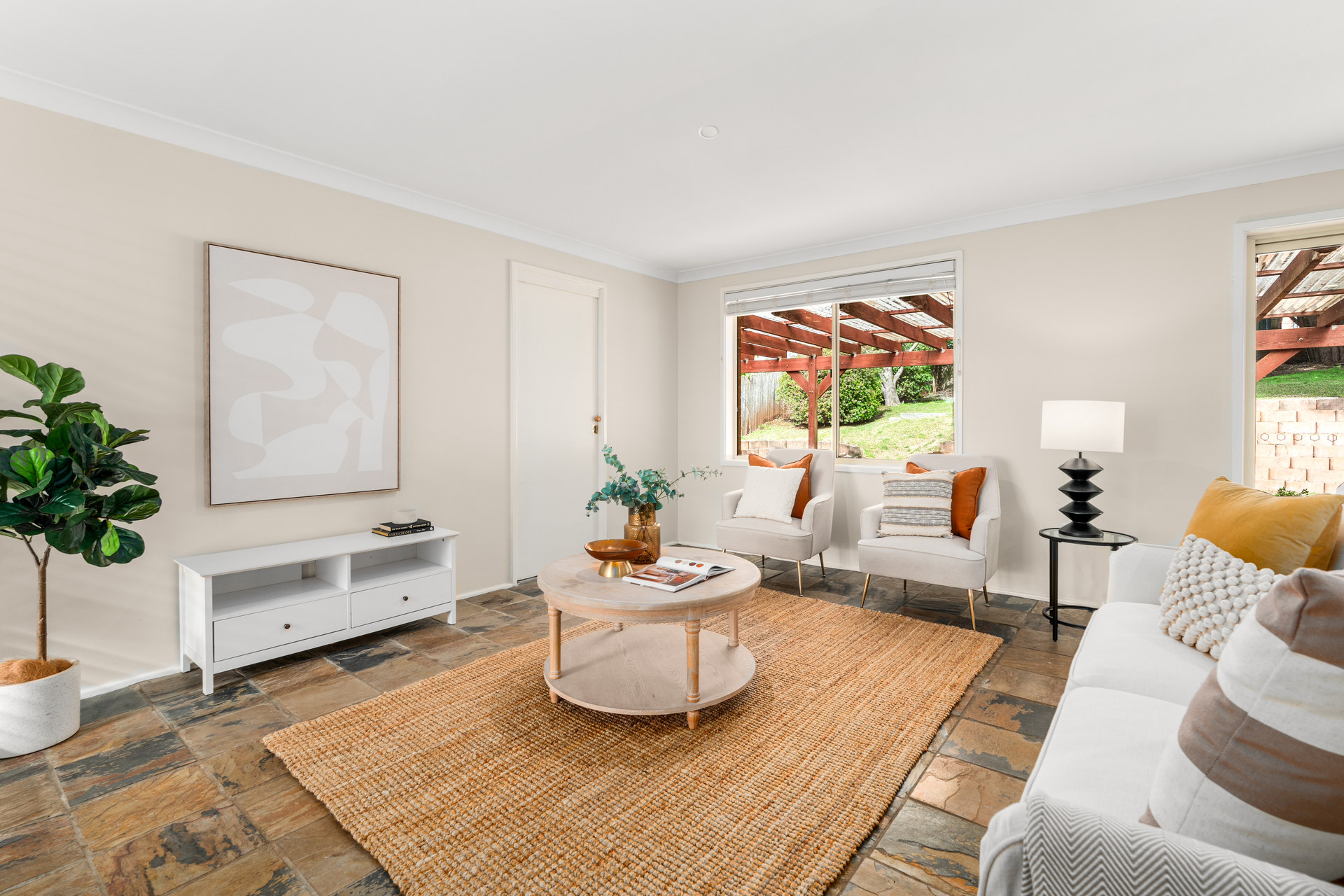 Landscaped surrounds: Beautifully established gardens offering privacy and tranquillity on an elevated, easy-care 689sqm parcel, capturing lovely district views.