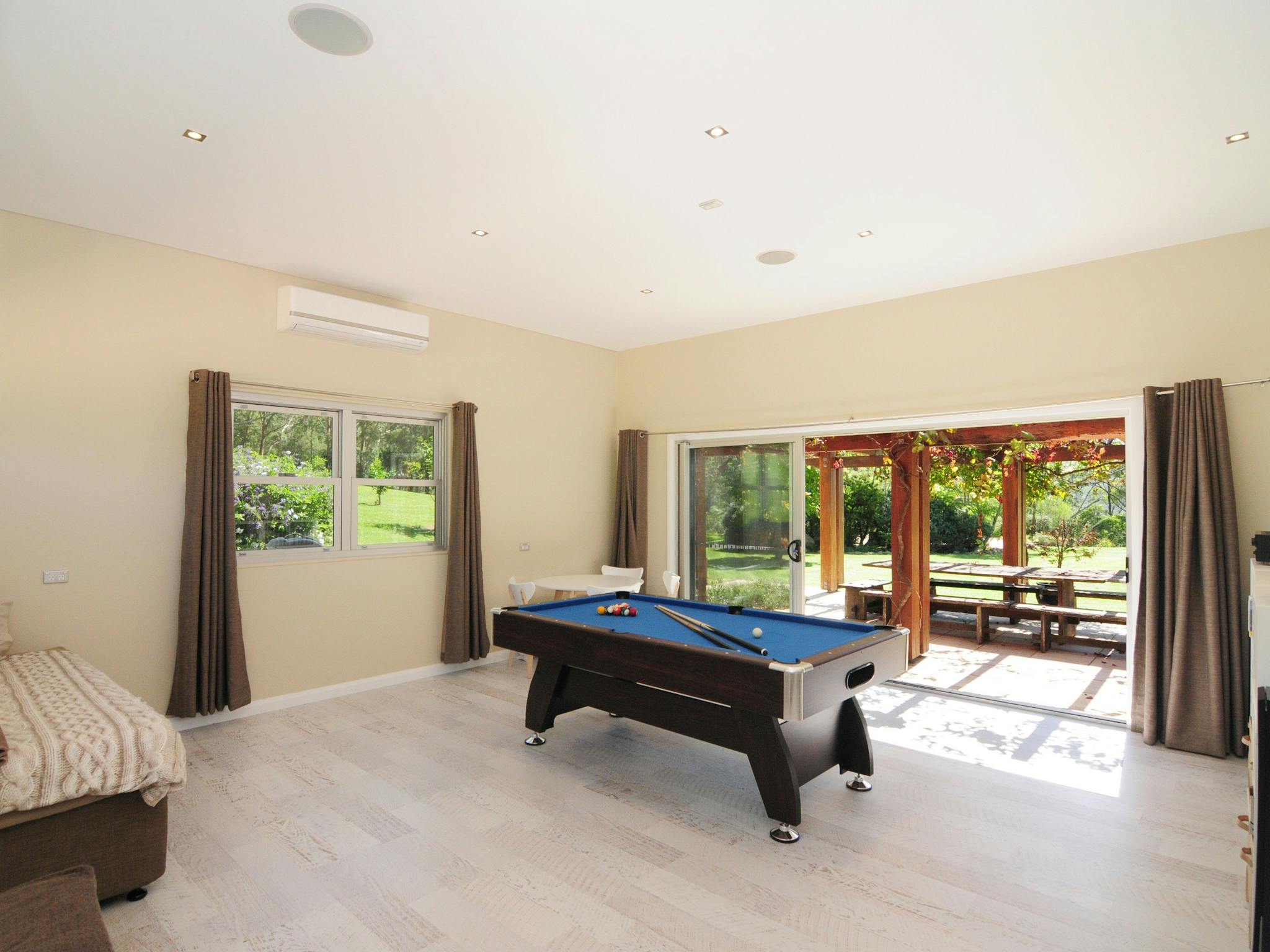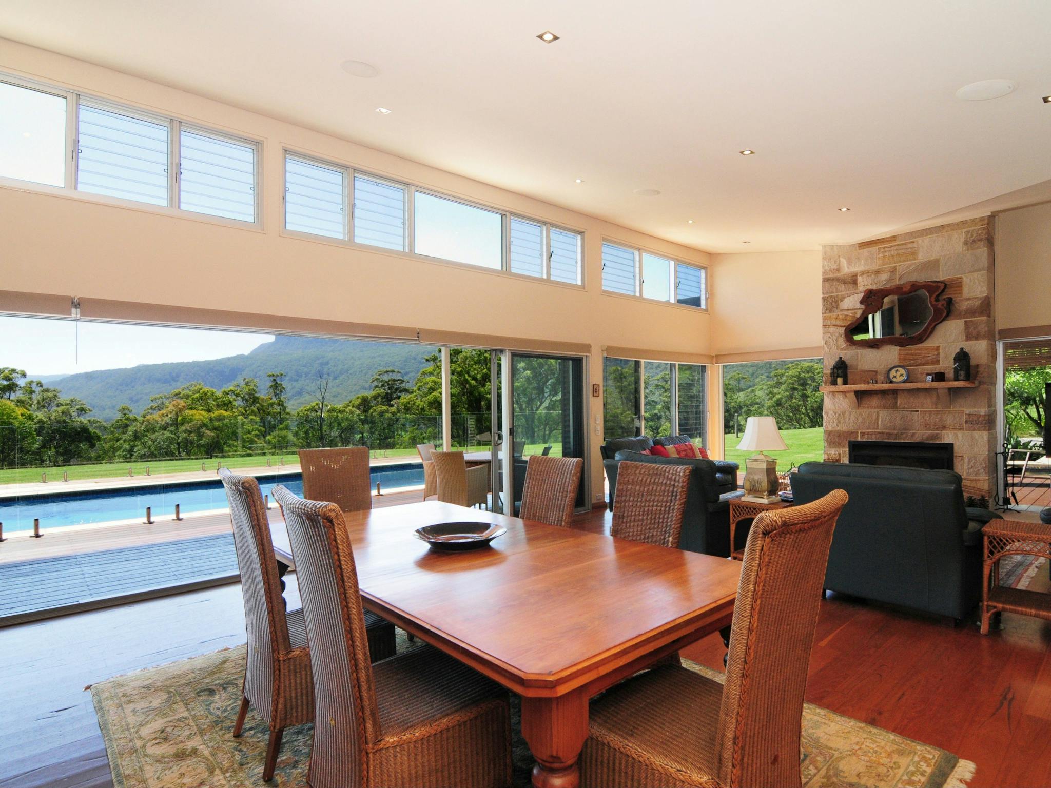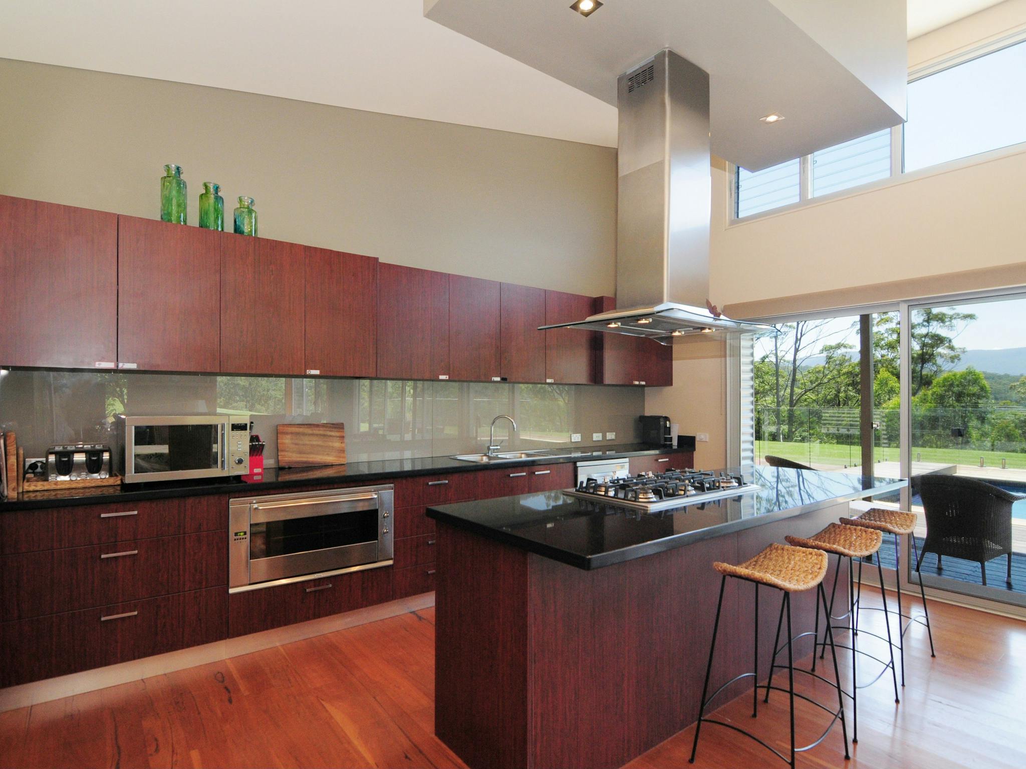 Bottlebrush has a stunning interior atmosphere with a spacious open plan living area opening up through full length glass doors to a timber deck and swimming pool.