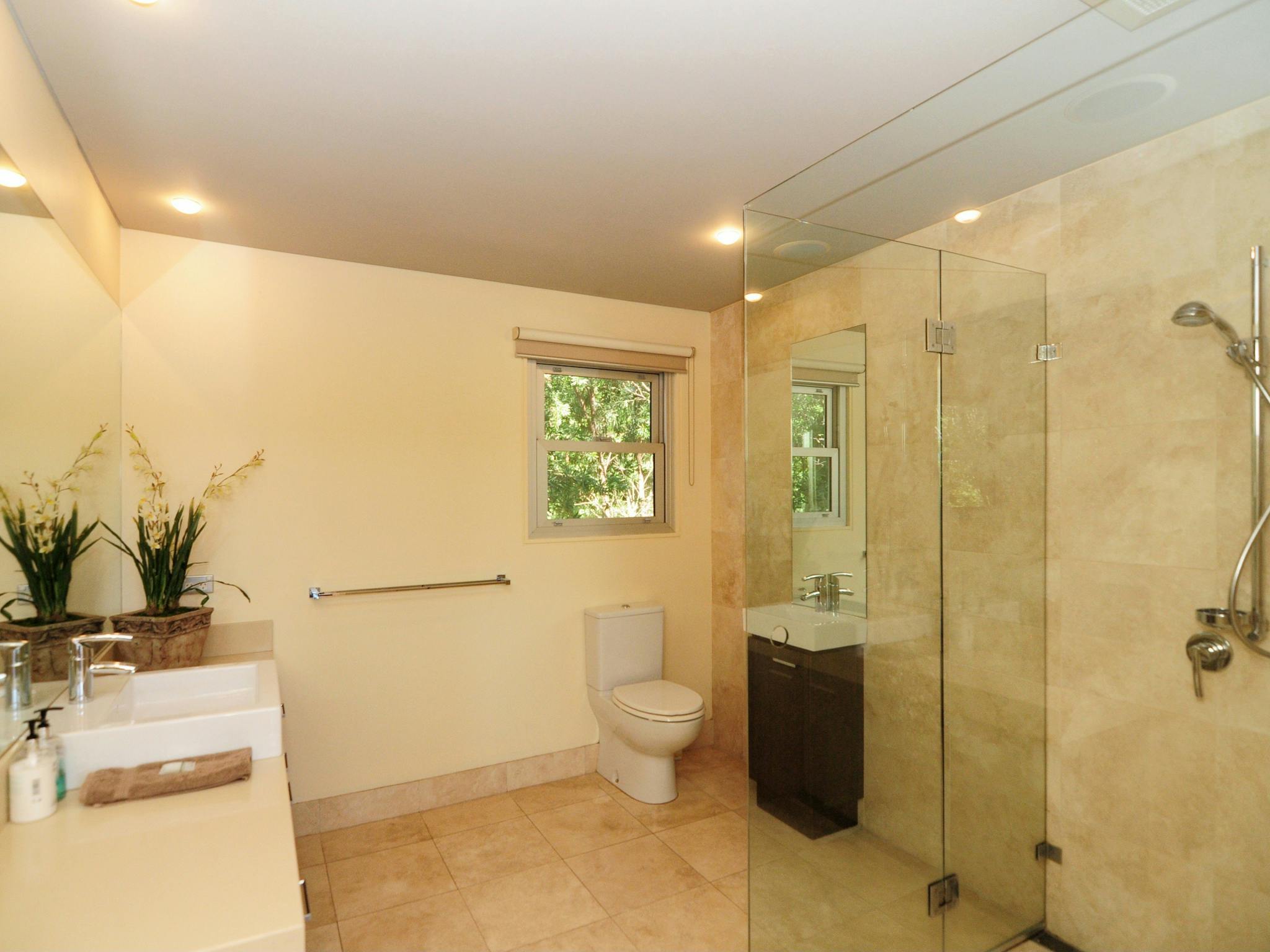 The caesarstone kitchen is equipped with a five burner gas cook top, large oven, dish washer, microwave and fridge/freezer with ice-maker with plenty of bench space and storage to prepare and cook your favourite meals. There is a laundry with washer and dryer.