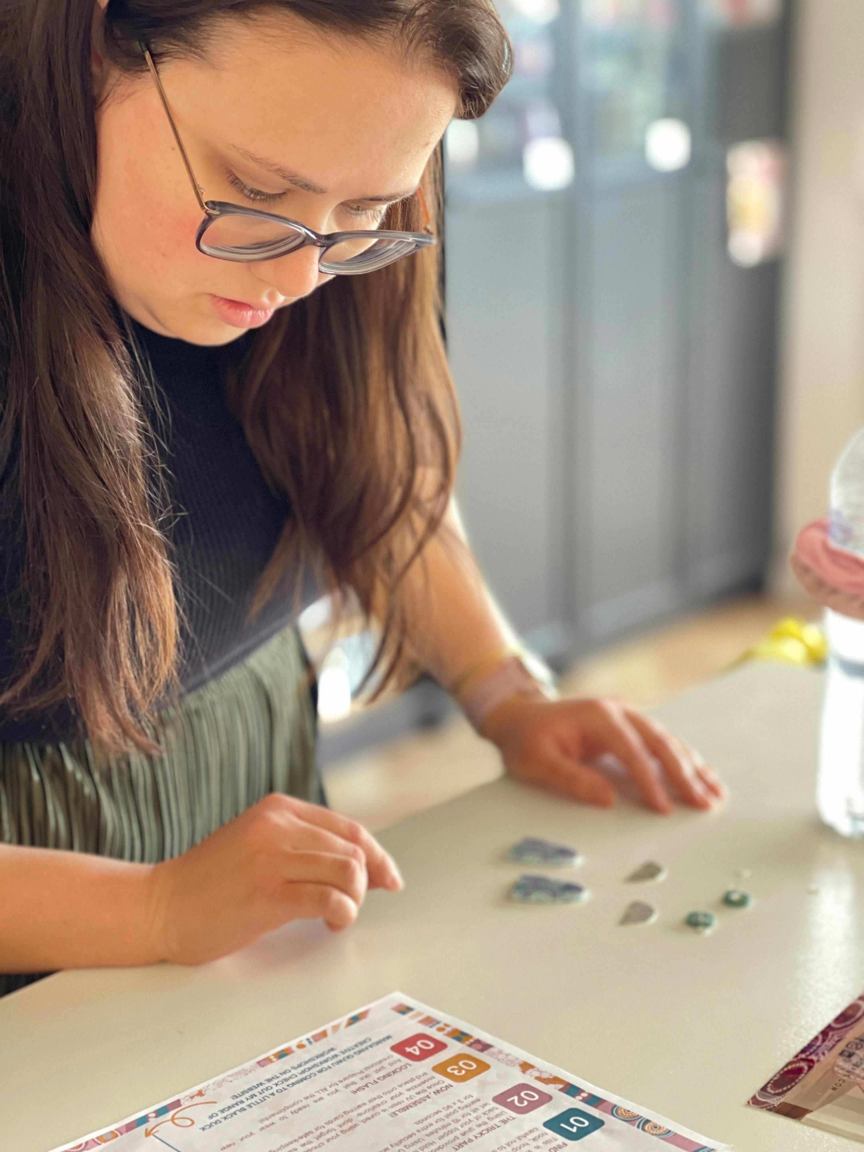 Guided by Ashleigh, you'll learn the process of designing and assembling your own earrings using pre-printed acrylic pieces featuring her original Aboriginal artworks. Choose from a range of colours, shapes and sizes, then personalise your design with your preferred style — studs, hoops, dangles or hooks — and finish them with natural wood, shell or metal add-on elements to make them entirely your own.