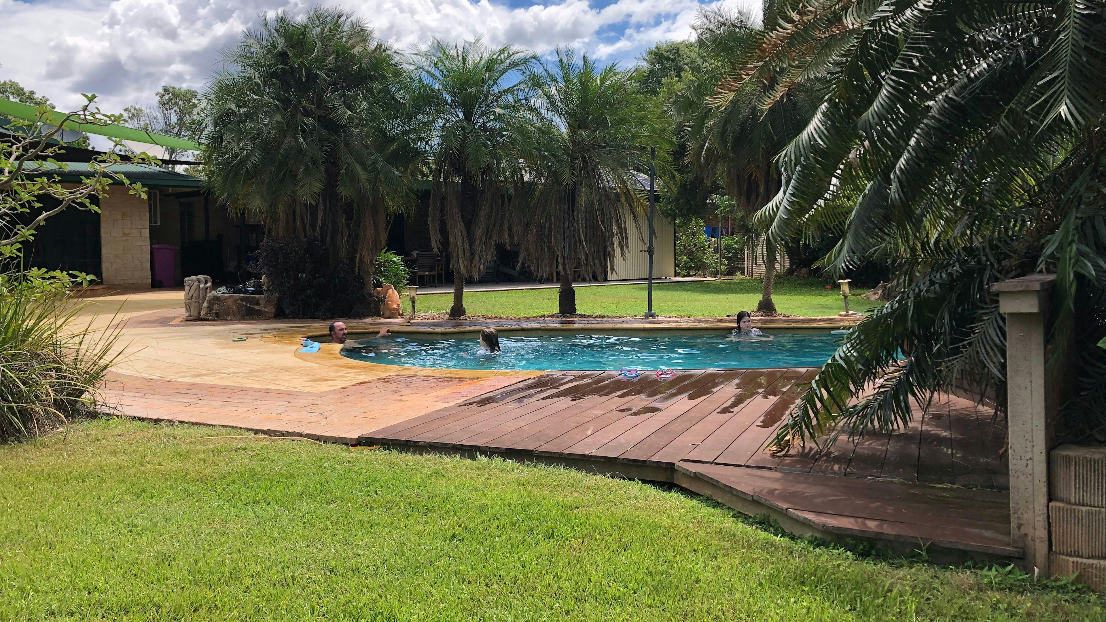 Quiet rural location, manicured grounds just 5km from Katherine. 1 campsite available on shared grounds with 1 guest cabin and the family home. Please note due to unfenced ponds and pool we are unable to host young children. Find us on Facebook or Google for more pics and info. Outdoor kitchen with bbq, fridge, kettle, toaster and microwave. Washing machine on site and clothing racks for drying, byo washing liquid/powder. Pool area with sun loungers and outdoor umbrellas - please no glass poolside for everyone’s safety. Bathroom with shower and toilet. Coveniently located just outside of Katherine N.T. Easy distances to Cutta Cutta caves, Edith Falls, Katherine Gorge, Mataranka, Pine Creek, Umbrawarra Gorge - the list goes on!!