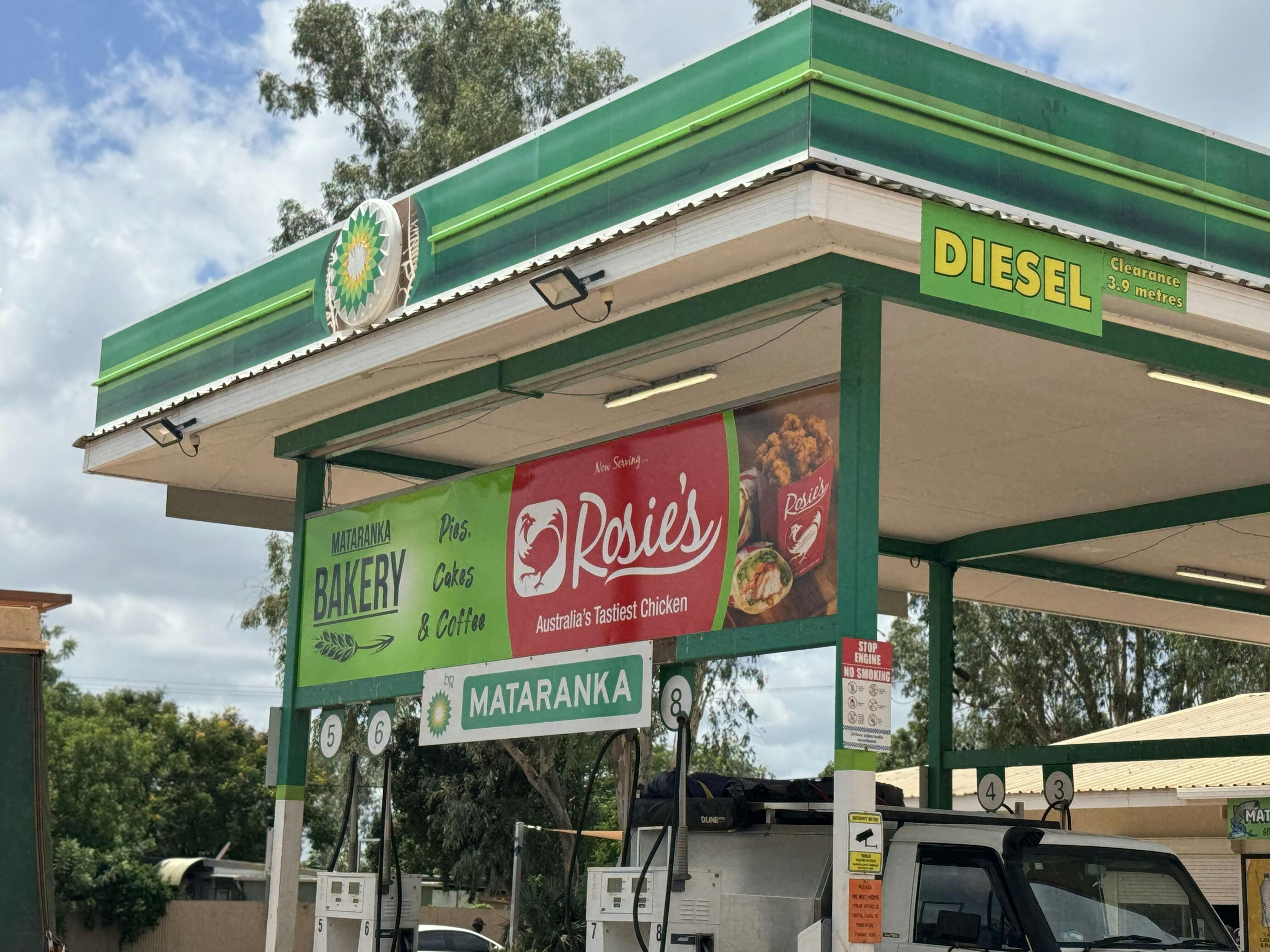 Mataranka Rosies Chicken is located in the BP Mataranka Roadhouse, the fuel station north end of town.