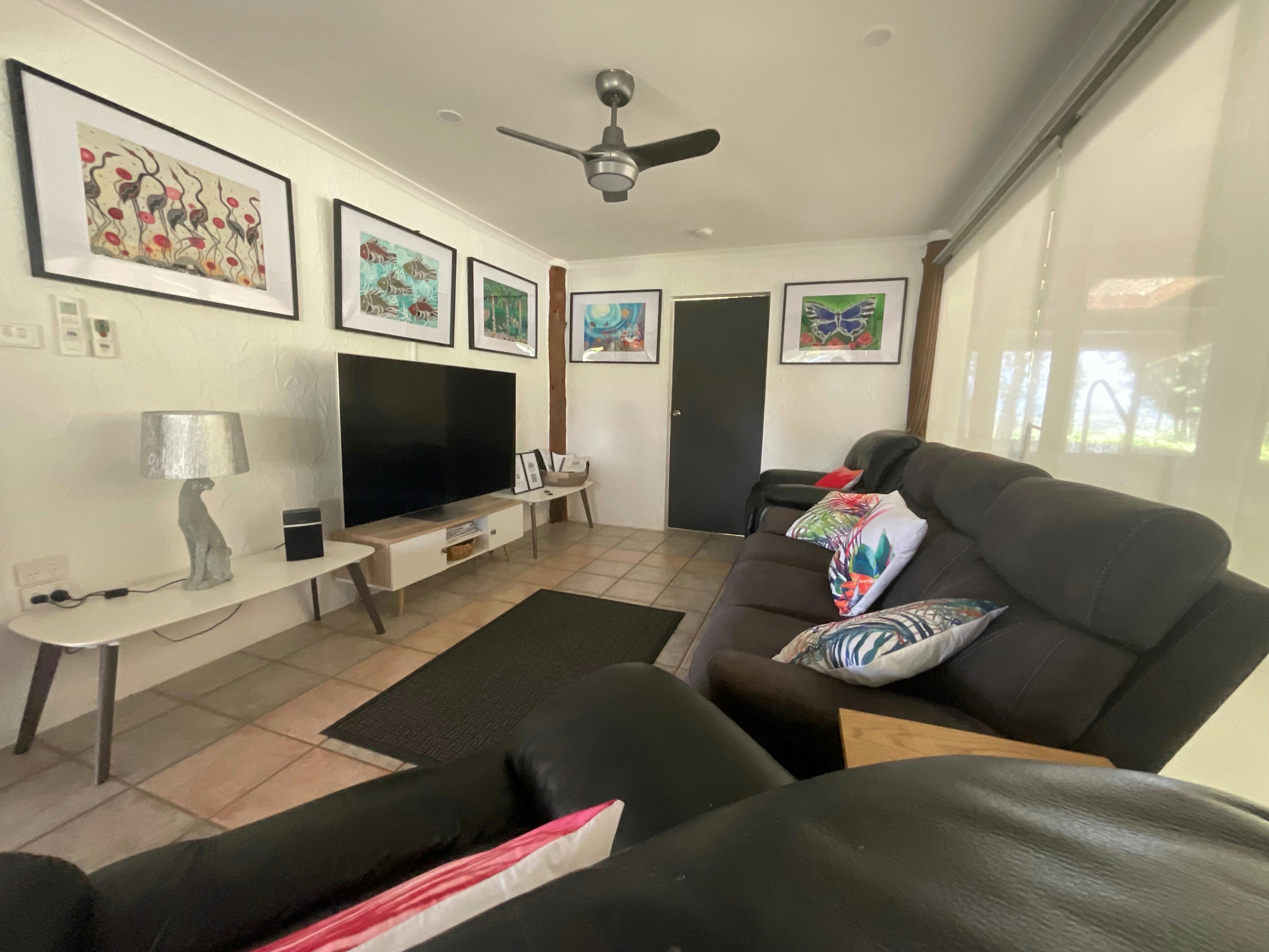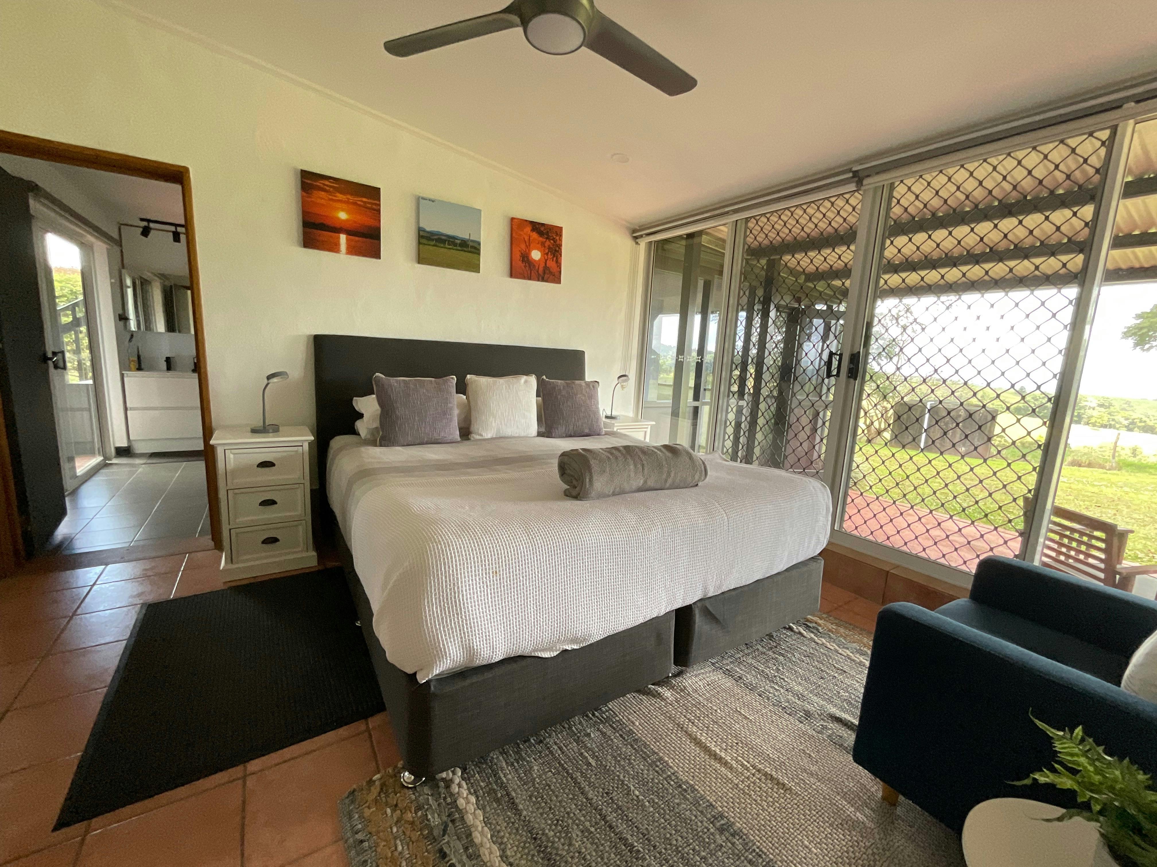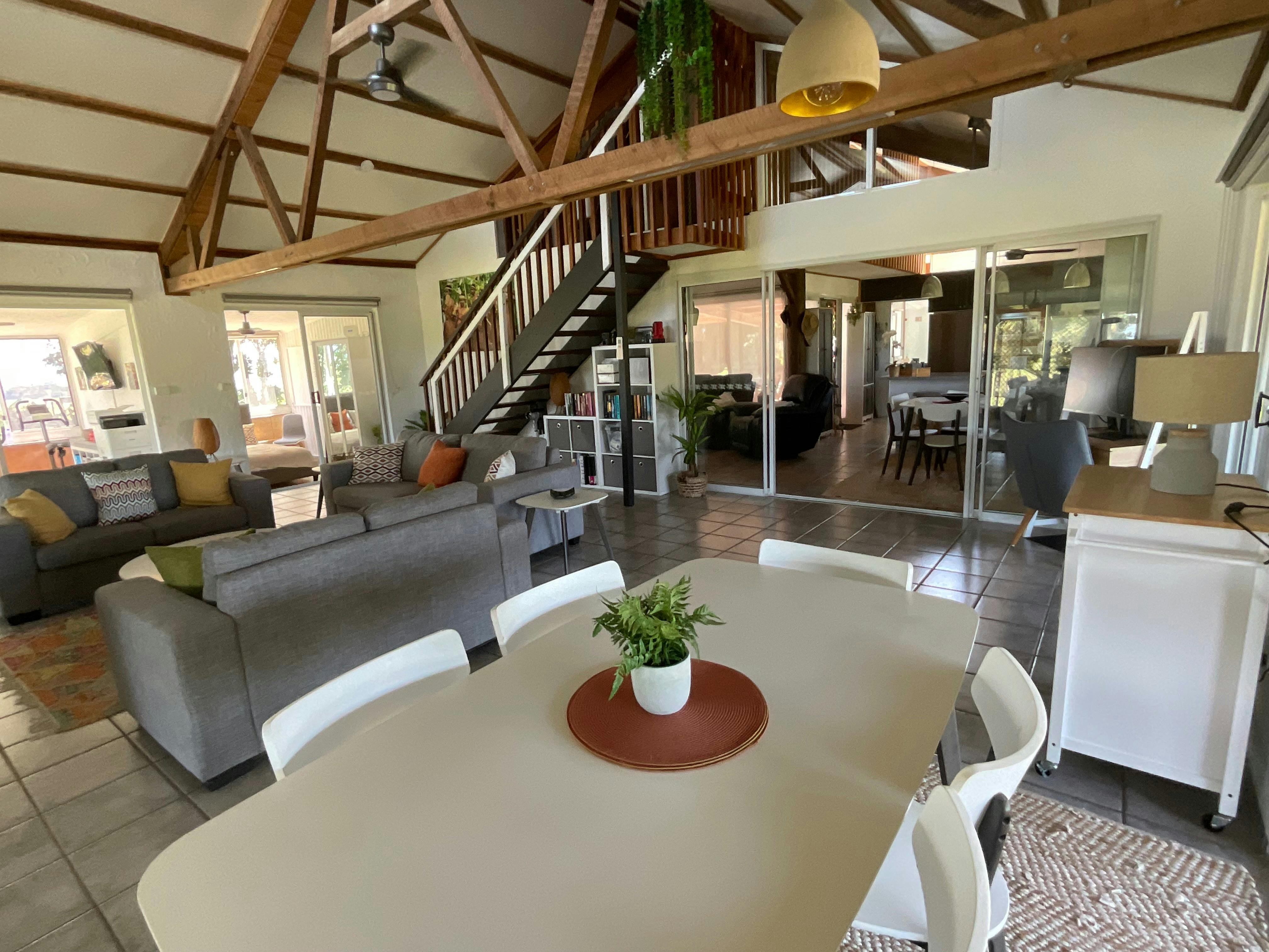 The retreat sleeps a maximum of 6 guests exclusively under one booking across 4 generous sized bedrooms featuring 4 beds (one king and 3 queen) all with luxurious eco-cotton bed linen. There are 2 oversized bathrooms (one is ensuite) and an outdoor shower. Multiple indoor and outdoor living and dining areas, fully equipped modern kitchen, reverse cycle air-conditioning, washing machine and dryer, ample parking both undercover and hardstand, expansive lawns & gardens and excellent free wi-fi coverage will make your stay a true home away from home experience.