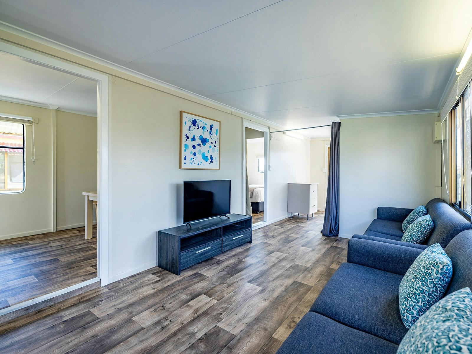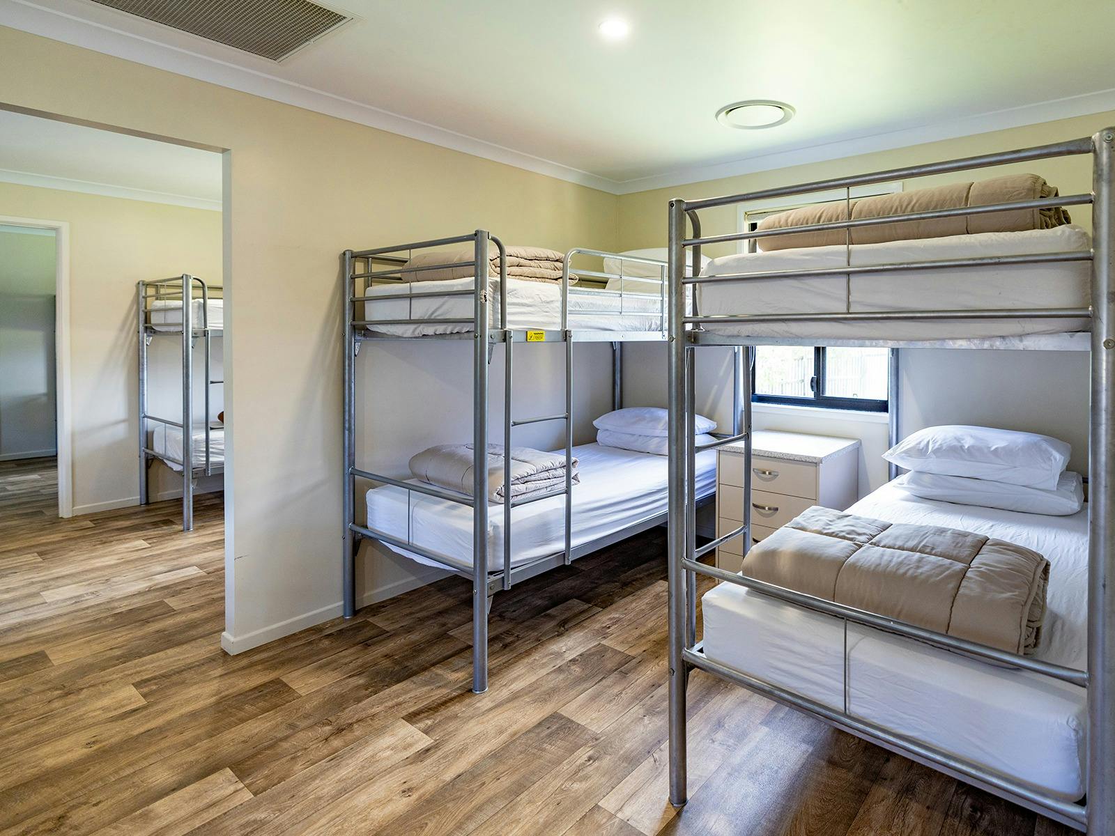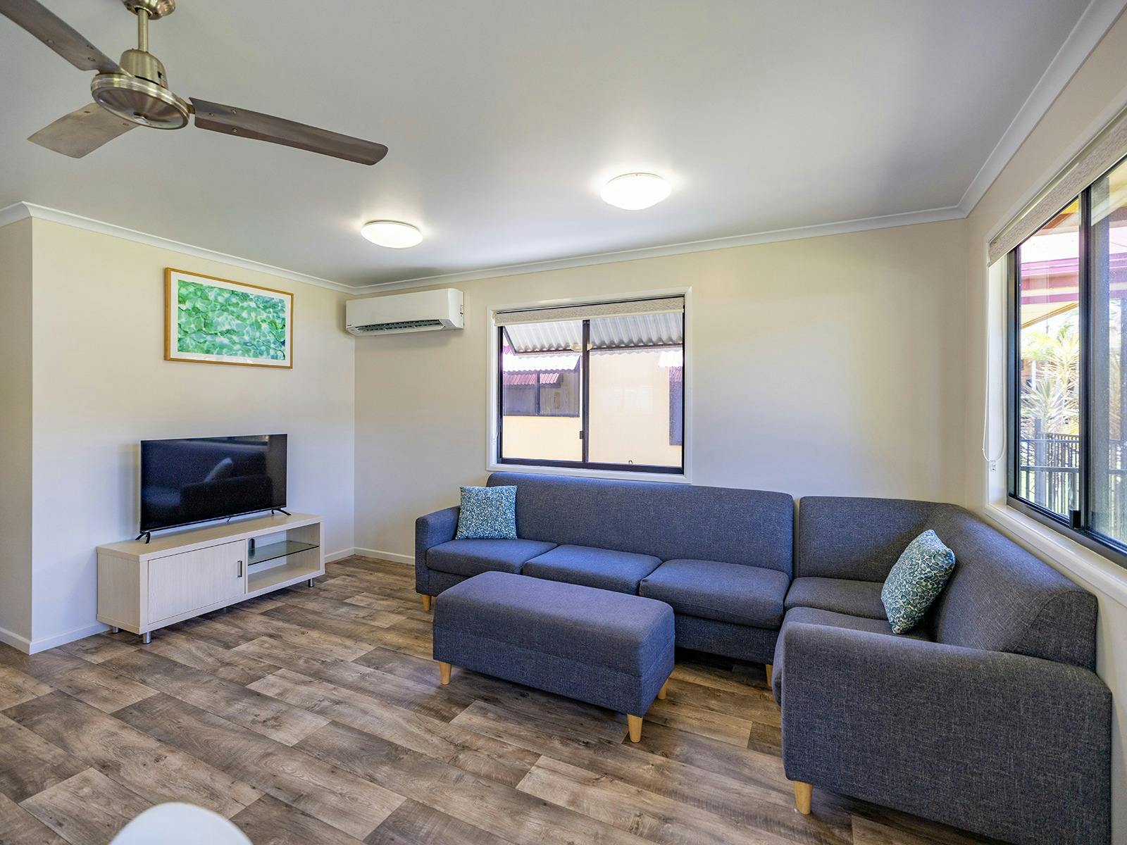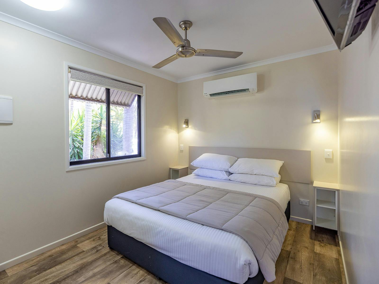 Self-contained accommodation including two and three-bedroom cottages, one and two-bedroom cabins and villas and open plan studios are available as well as group accommodation sleeping up to 24 individuals. Site accommodation options include large powered grass or concrete sites and unpowered grass sites suitable for caravans, motorhomes, campervans and tents.