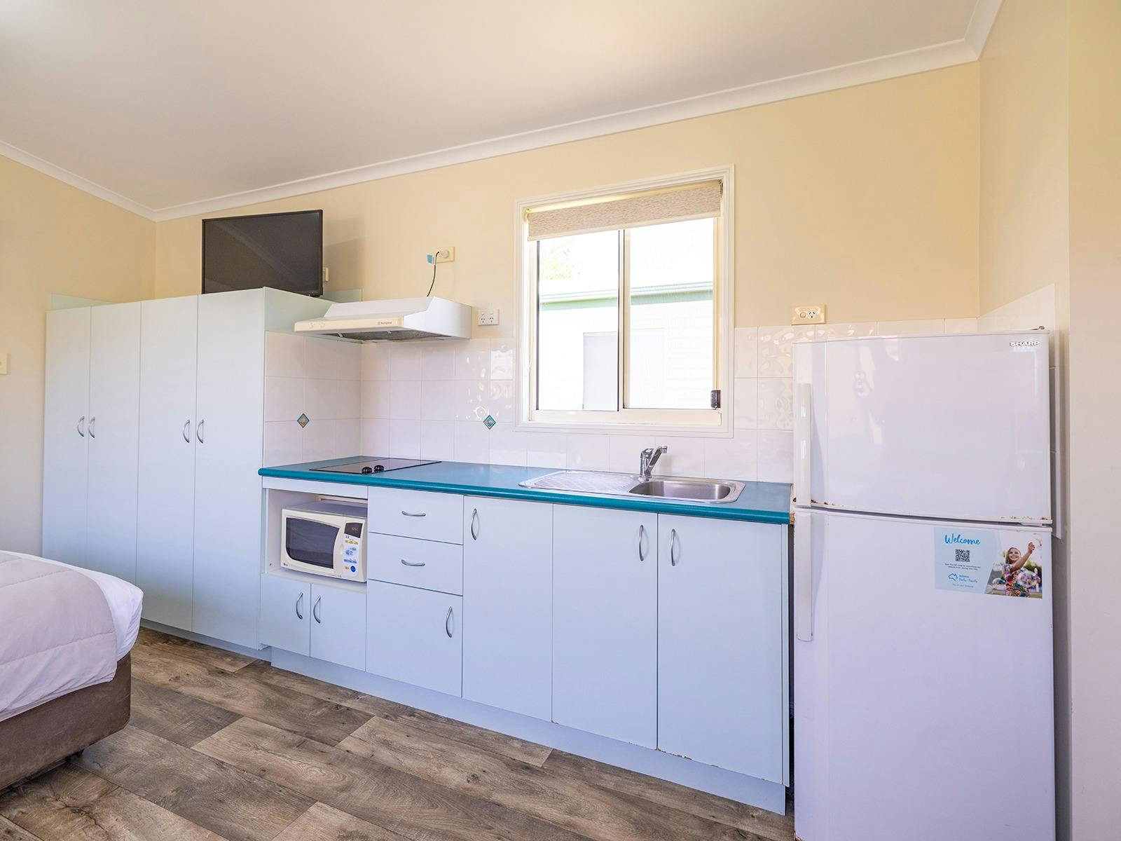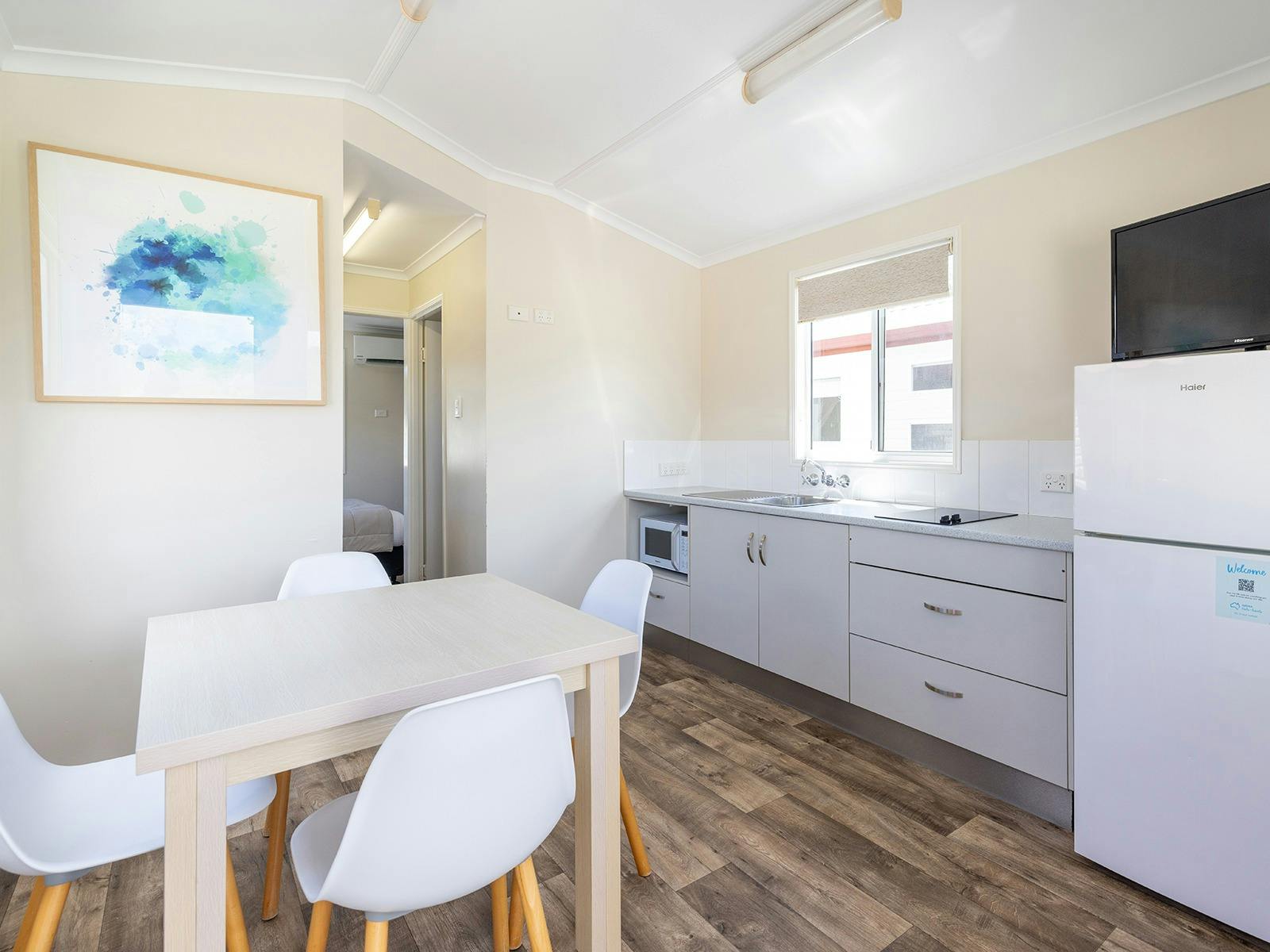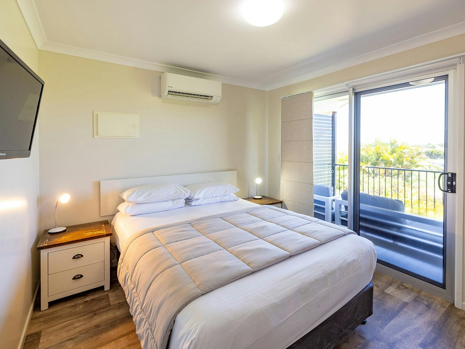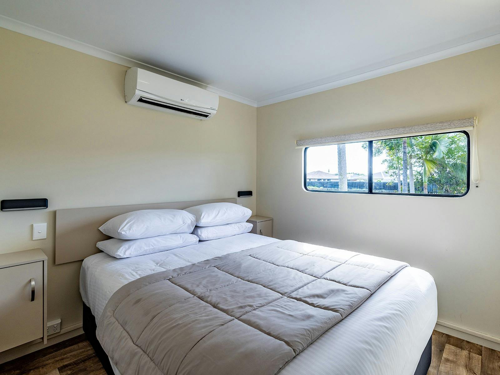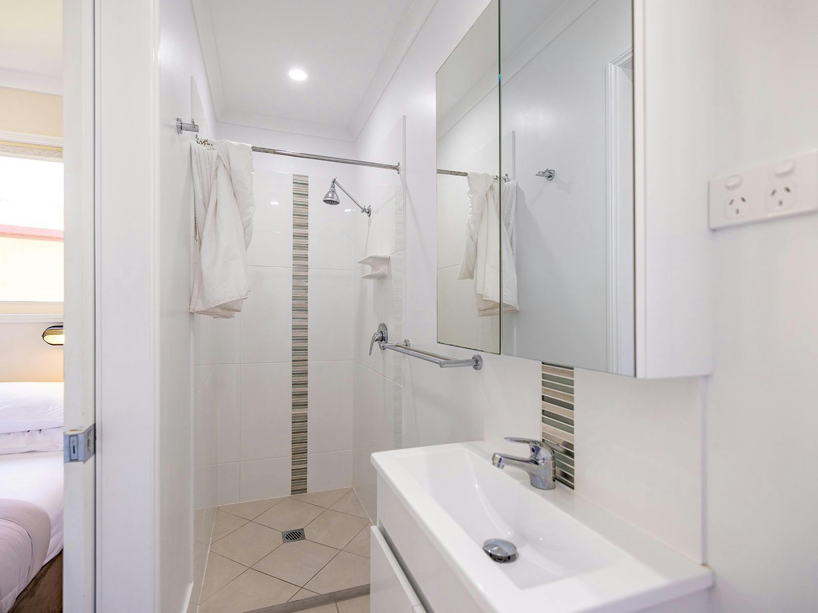 Self-contained accommodation including two and three-bedroom cottages, one and two-bedroom cabins and villas and open plan studios are available as well as group accommodation sleeping up to 24 individuals. Site accommodation options include large powered grass or concrete sites and unpowered grass sites suitable for caravans, motorhomes, campervans and tents.