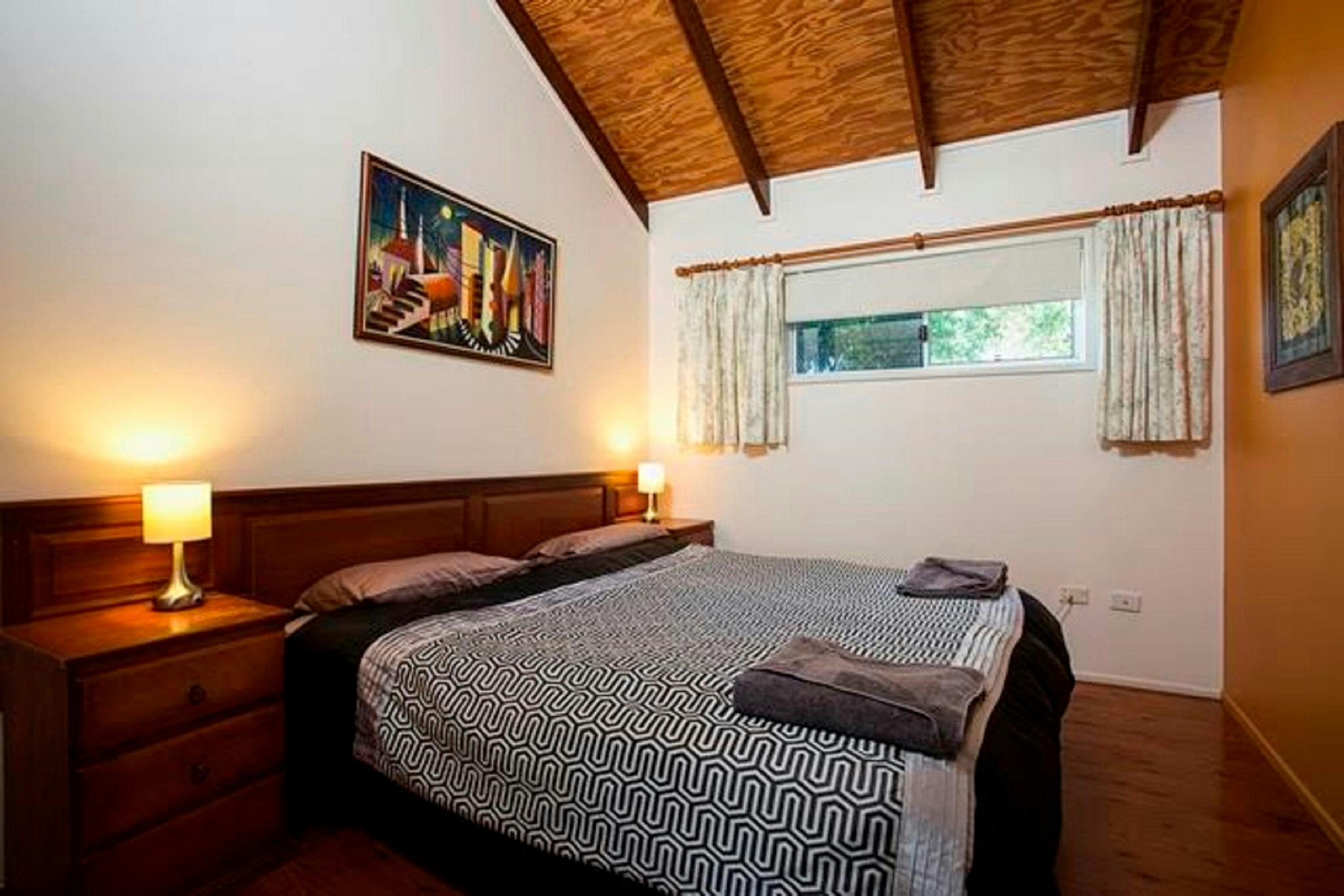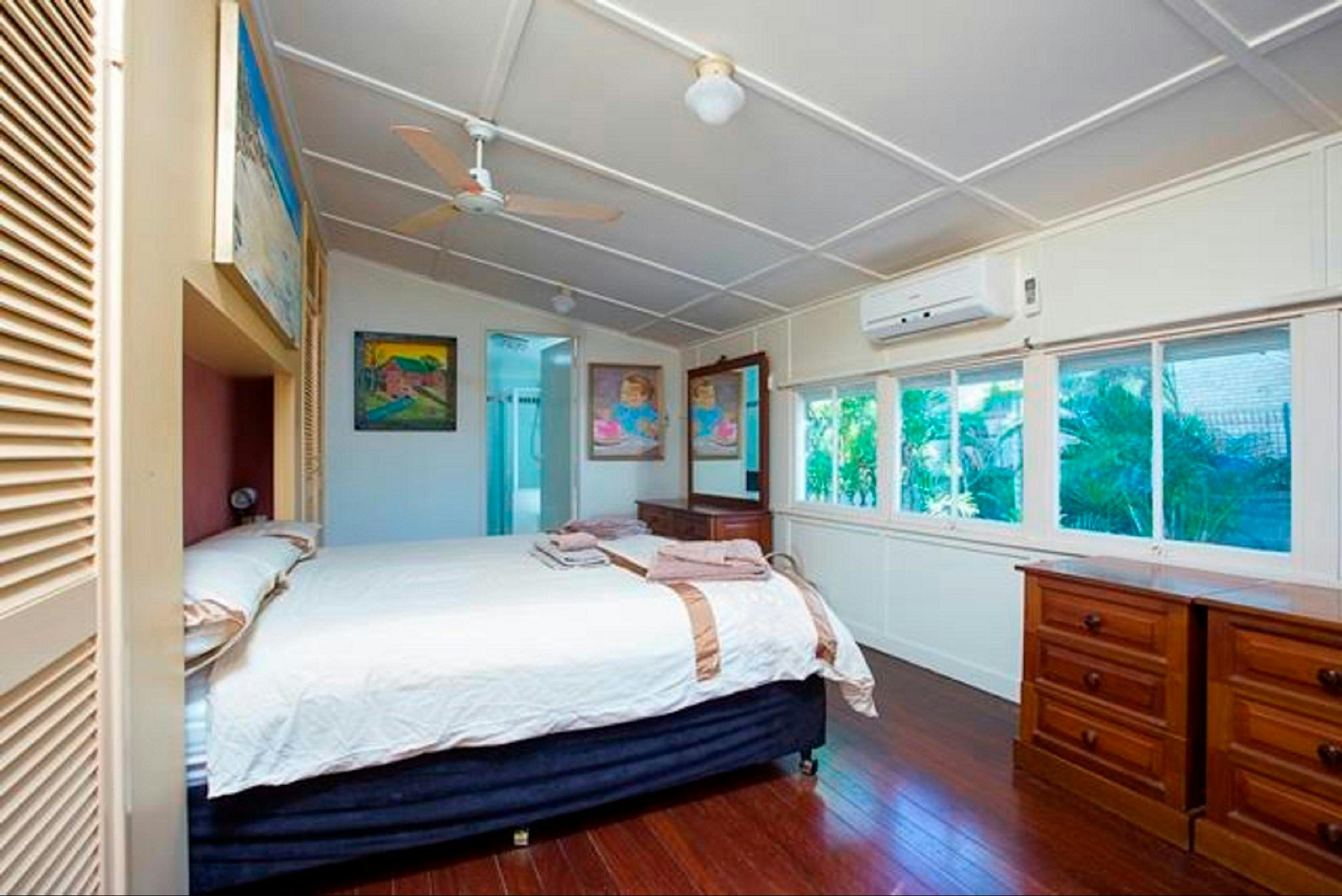 The Holiday House sleeps up to six people with open-style living, large ceiling fans throughout and air-conditioning. It is newly renovated and has a large 55 inch television. It has two bedrooms. One has two single beds and the main bedroom has a king size bed, both have built-ins wardrobes. It also has a very large patio. Luxury accommodation on a budget.