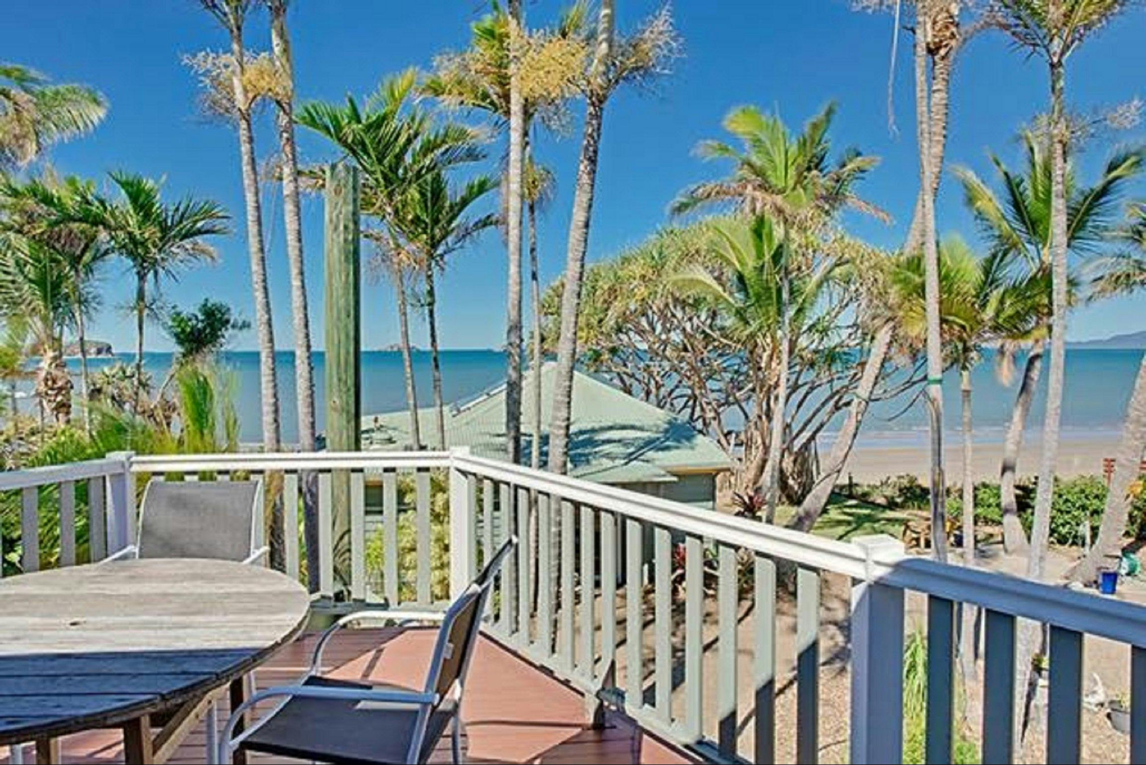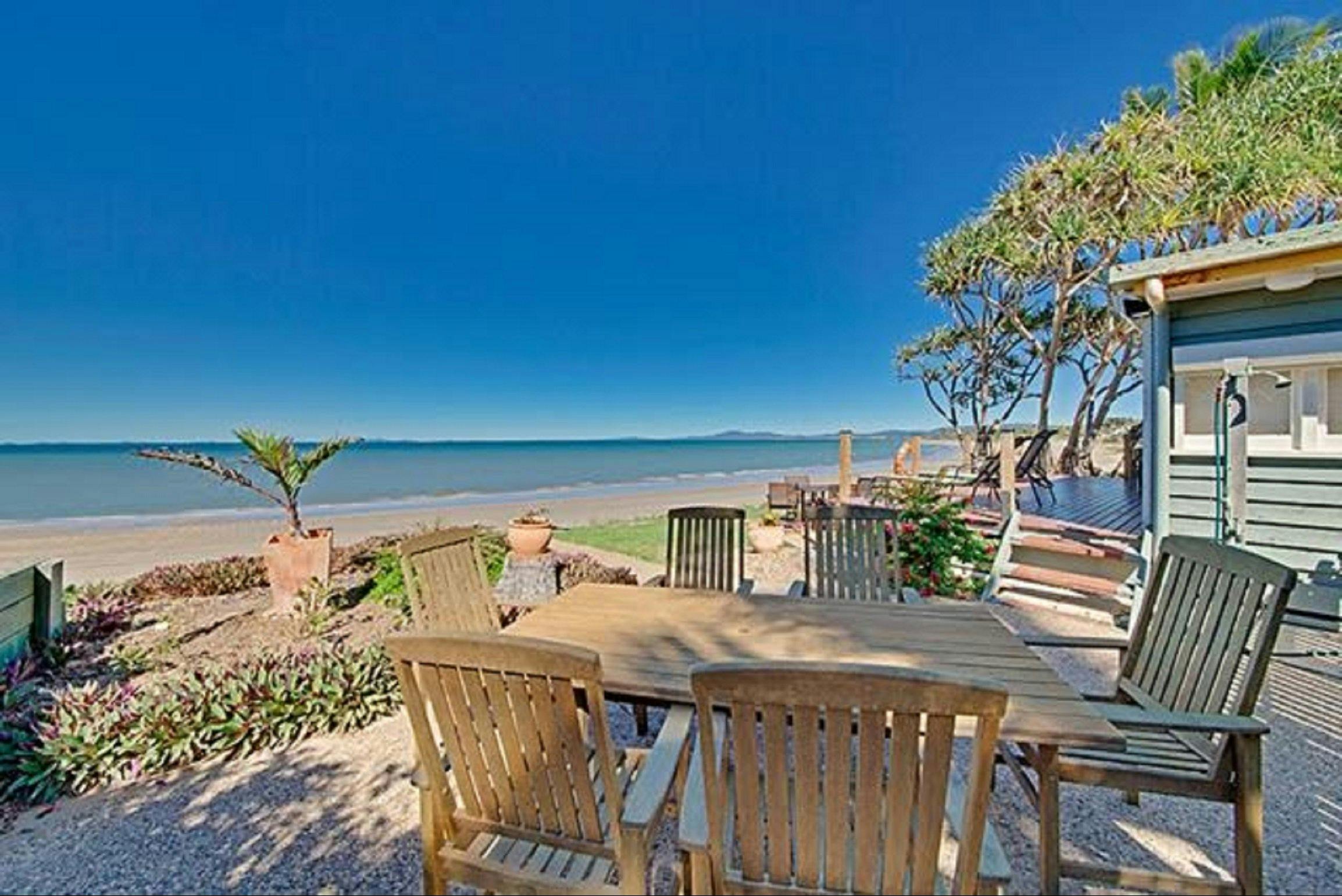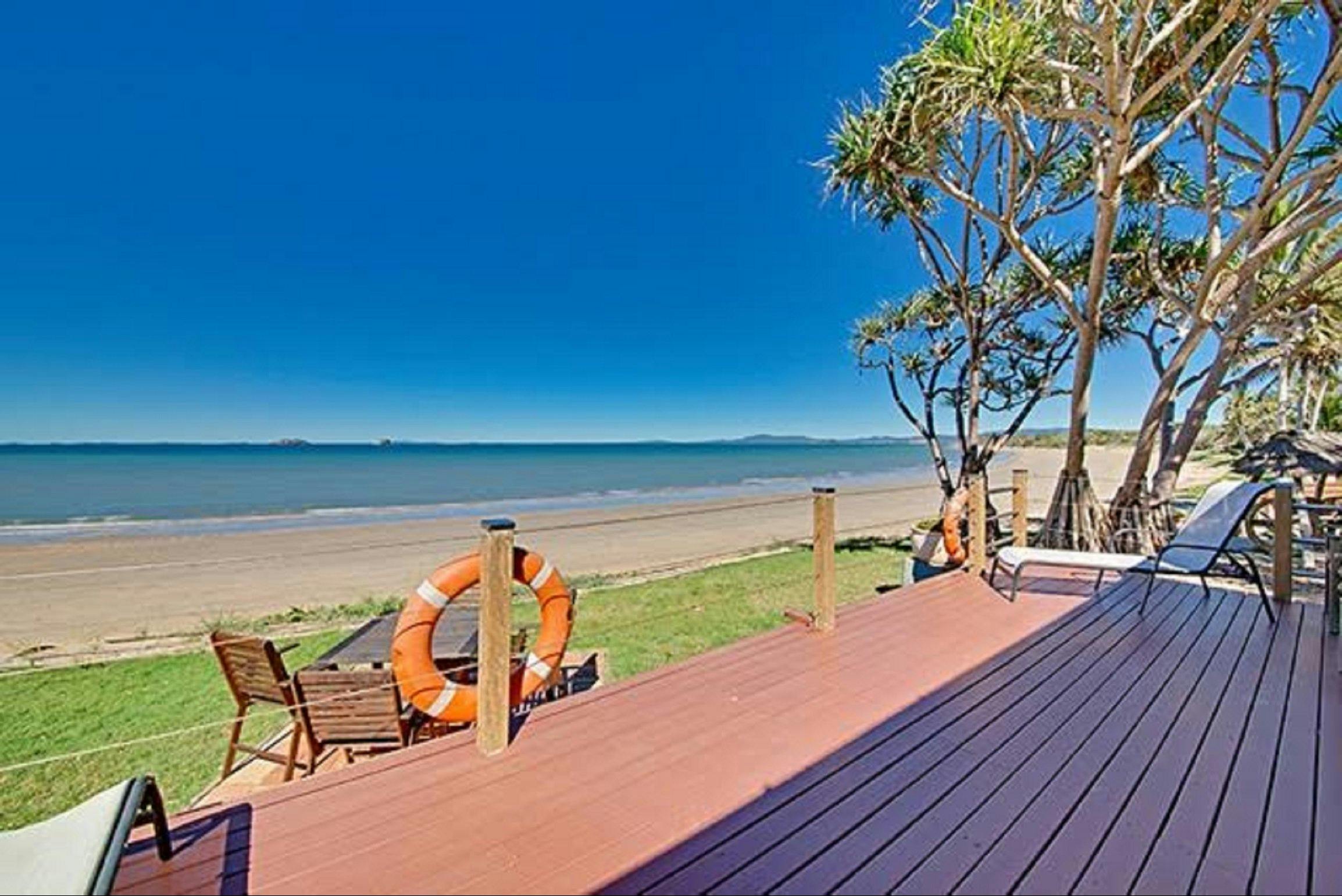 Beachfront Zilzie Holiday Home and Cottage features a two bedroom house and a one bedroom cottage. It is very quiet, down a private lane with relaxation areas. The houses are surrounded with coconut and pandanus palms and is very tropical. The property has beach frontage, and is beautifully maintained.