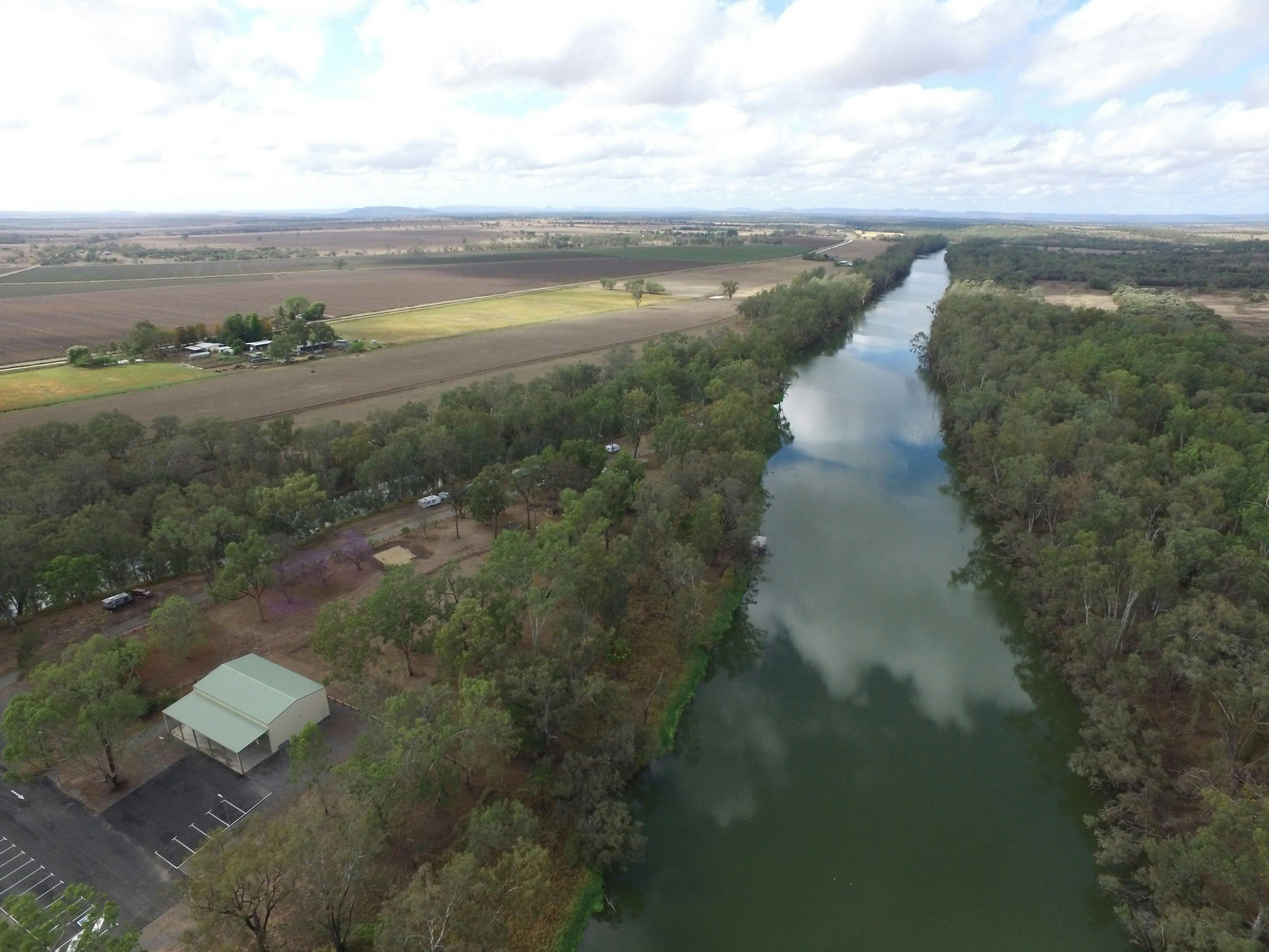 Pleasant and quiet rest area beside the Dawson River, suitable for caravans.