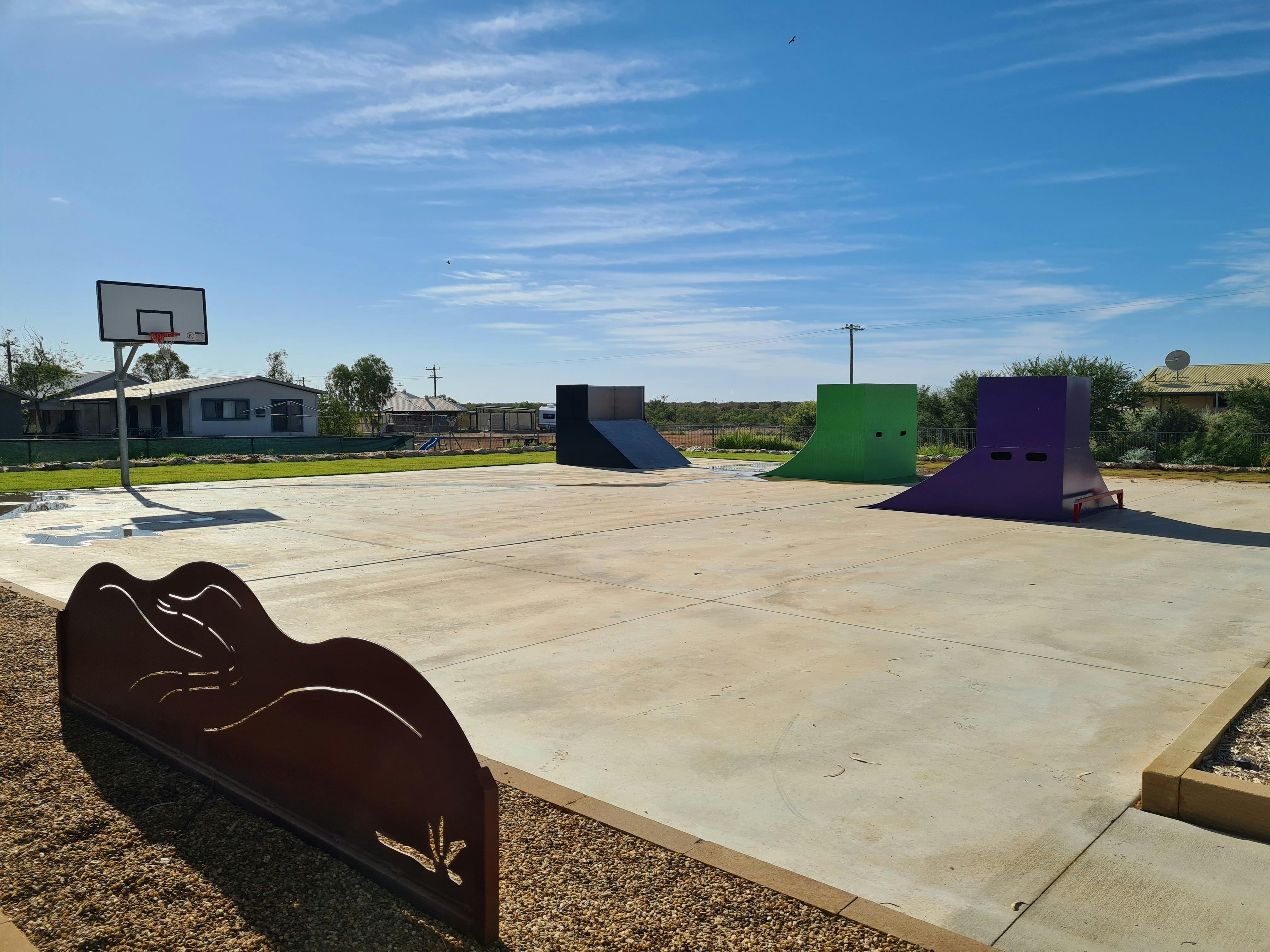 The area is packed with family-friendly facilities including shaded barbeques, lush lawns and gardens, a skate park, basketball hoop, and convenient public toilets—making it an ideal spot for a day of outdoor fun.