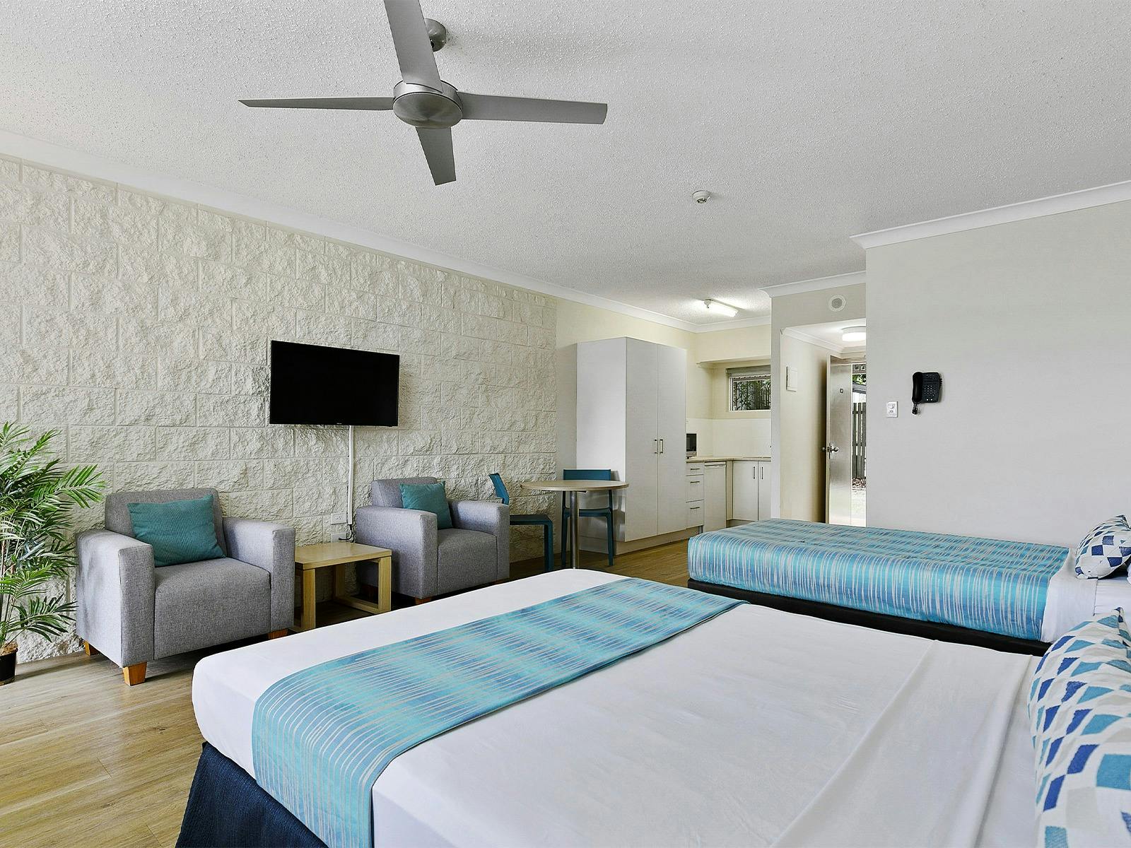 The resort's McKenzie's on 75 restaurant and bar overlooks a large lagoon-style swimming pool and outdoor spa. The resort grounds are home to the famous Eurong Bakery, serving fresh bread, hot food and espresso coffee, plus a General Store with holiday essentials, including souvenirs, groceries, fishing gear, ice, fuel and gas.