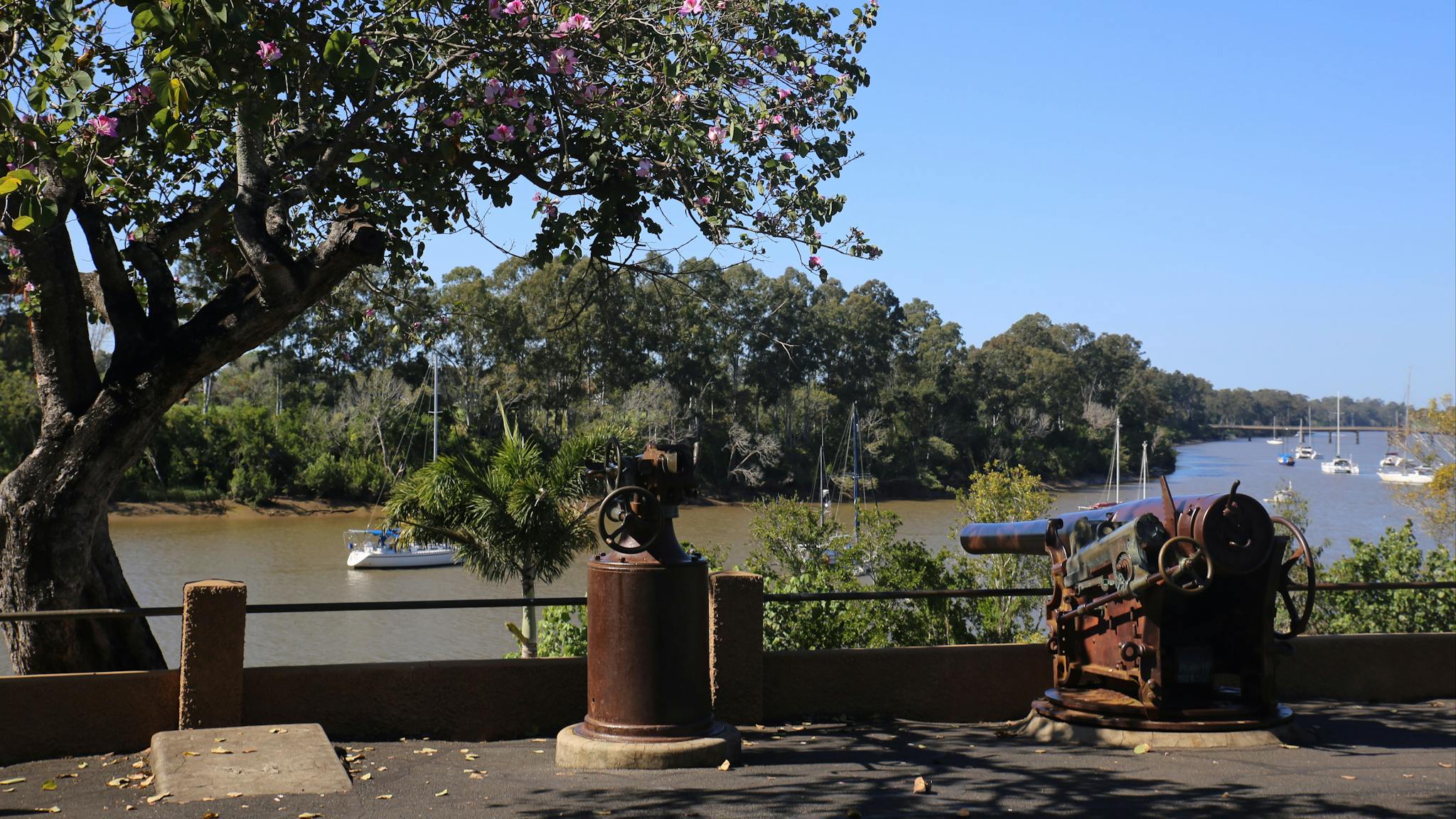 The beginning of the First World War saw the Royal Australian Navy begin the process of updating its armoury. They presented the three guns, located in Queens Park overlooking the Mary River, as a gift to the City of Maryborough. The three guns were relocated to this position in 1914.