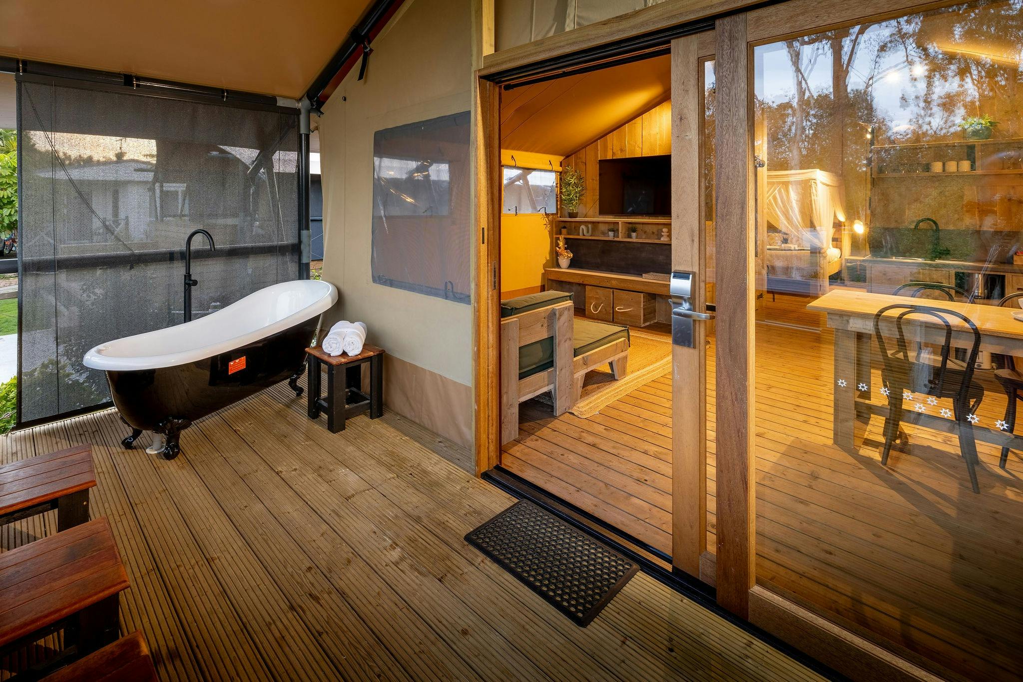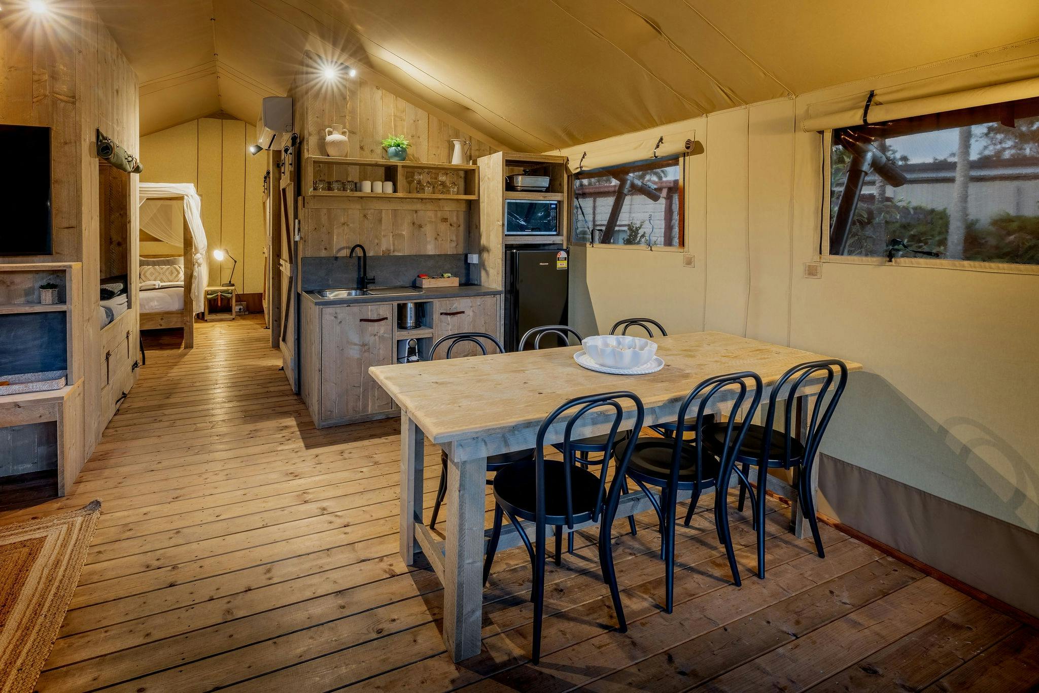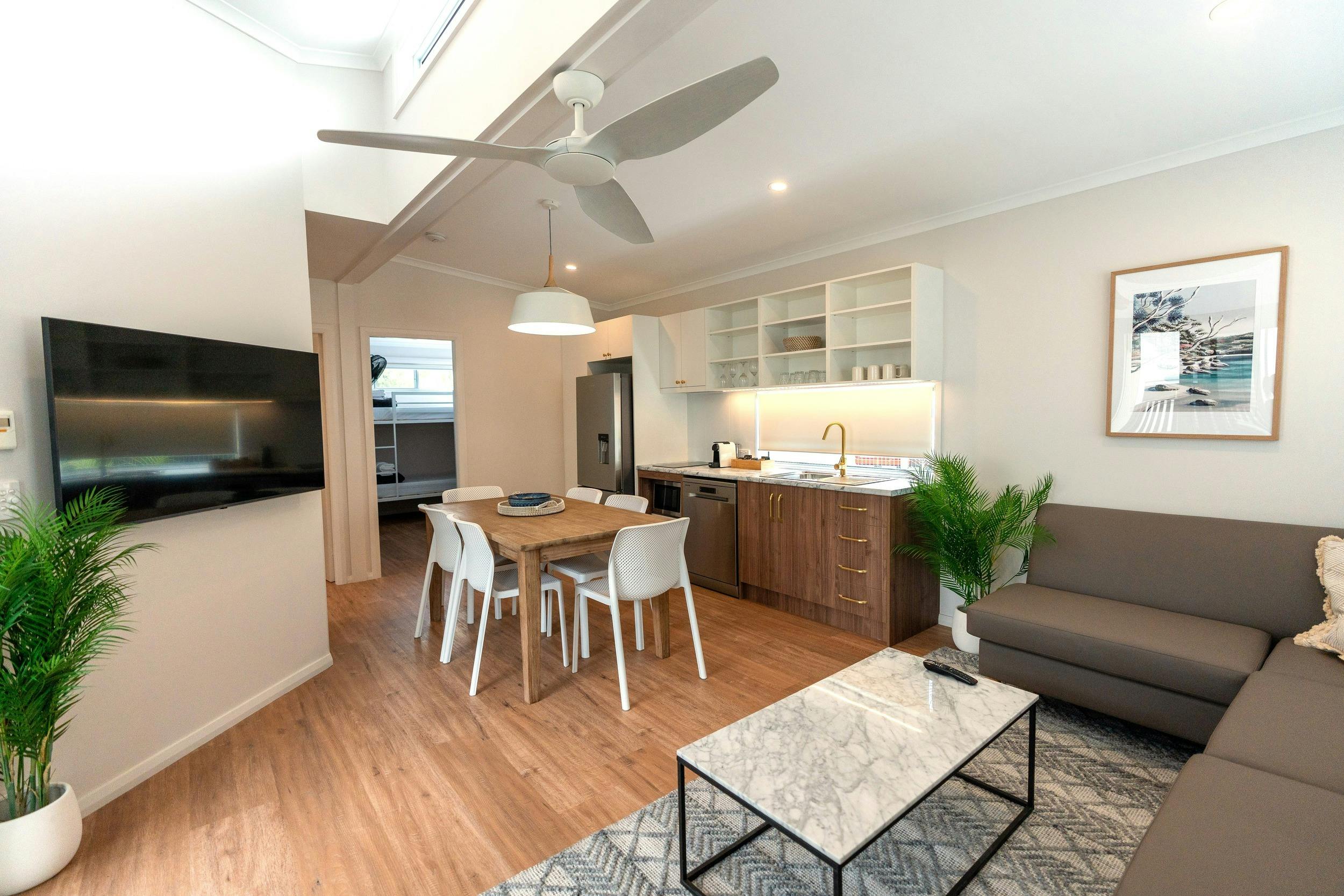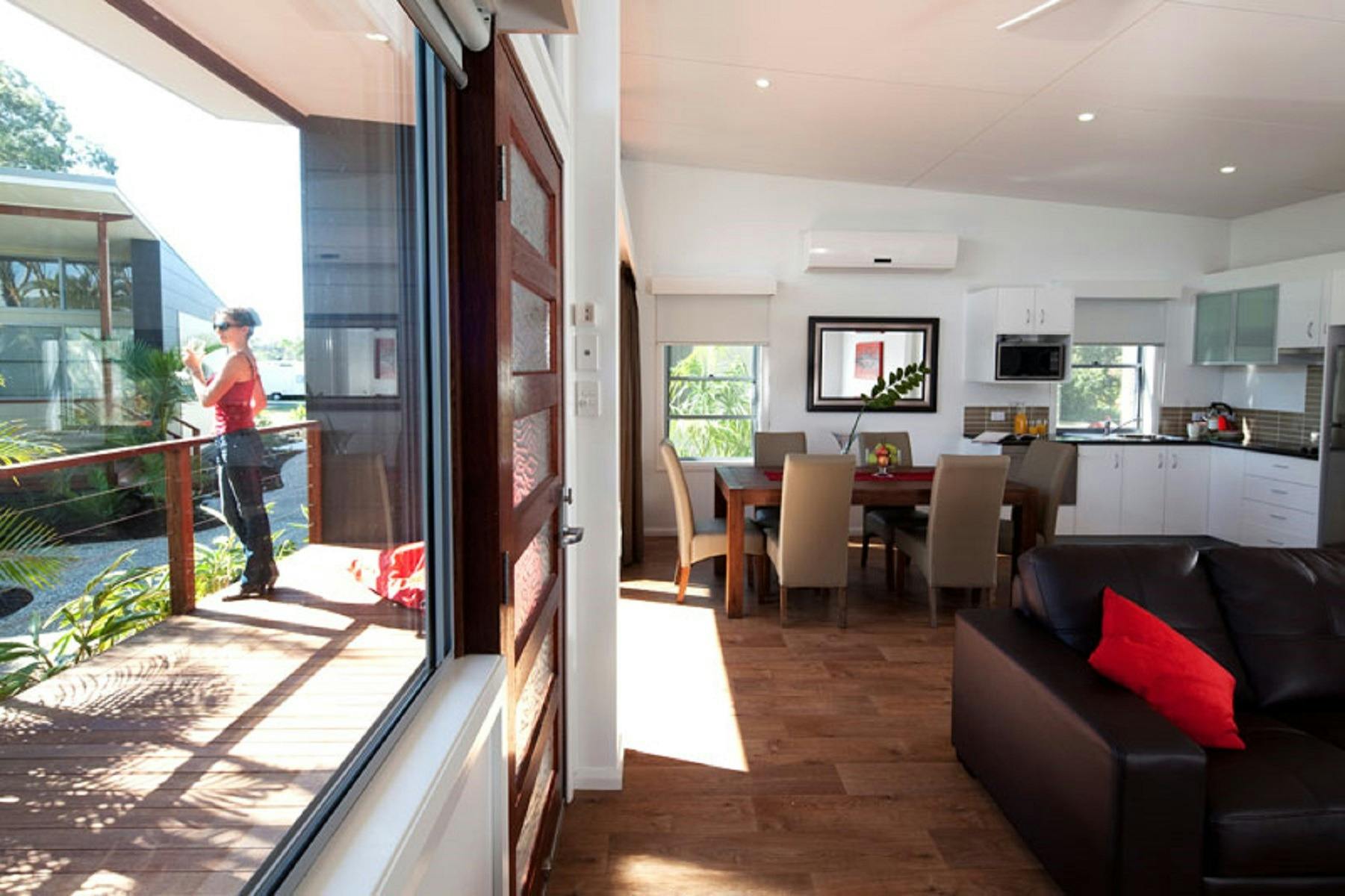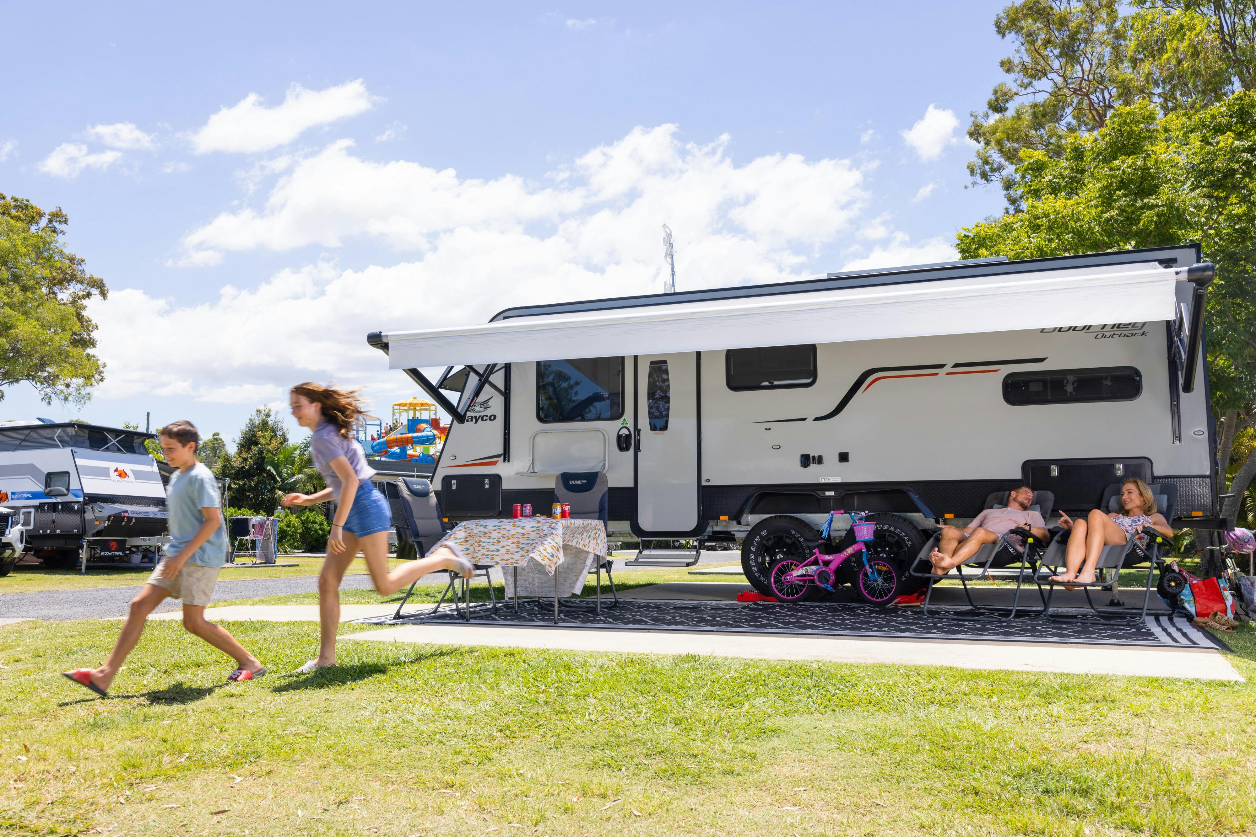 The park has an exciting range of recreational facilities, including their very own waterpark for super sliding, an eco-friendly playground, frisbee golf, and a basketball court. With accommodation ranging from caravan and camping sites, big rig sites, glamping tents, as well as self-contained villas, bungalows, family cabins, cosy cabins and retreats, ranging from studio to 3 bedrooms. Great accommodation options for families or groups of friends.