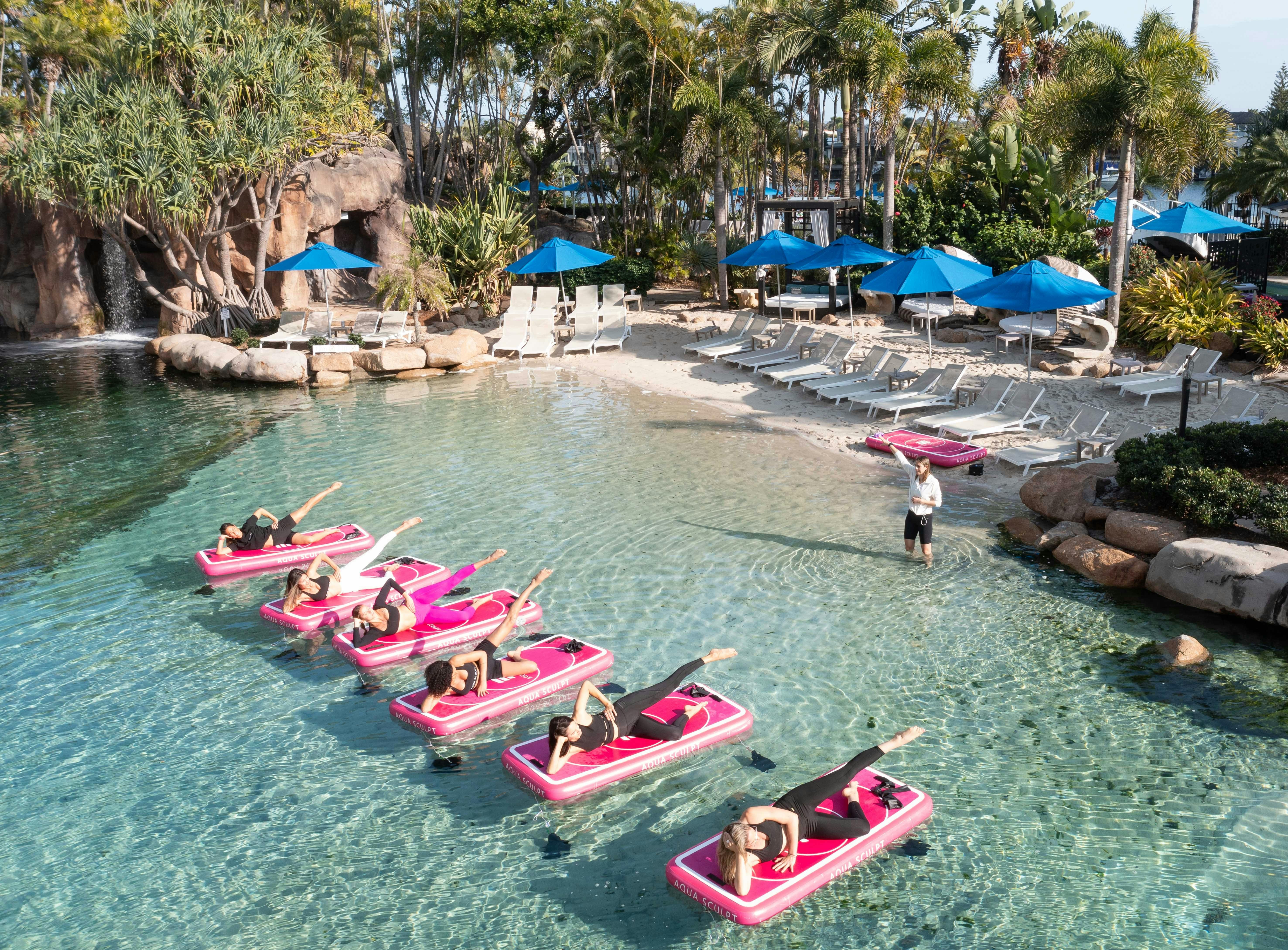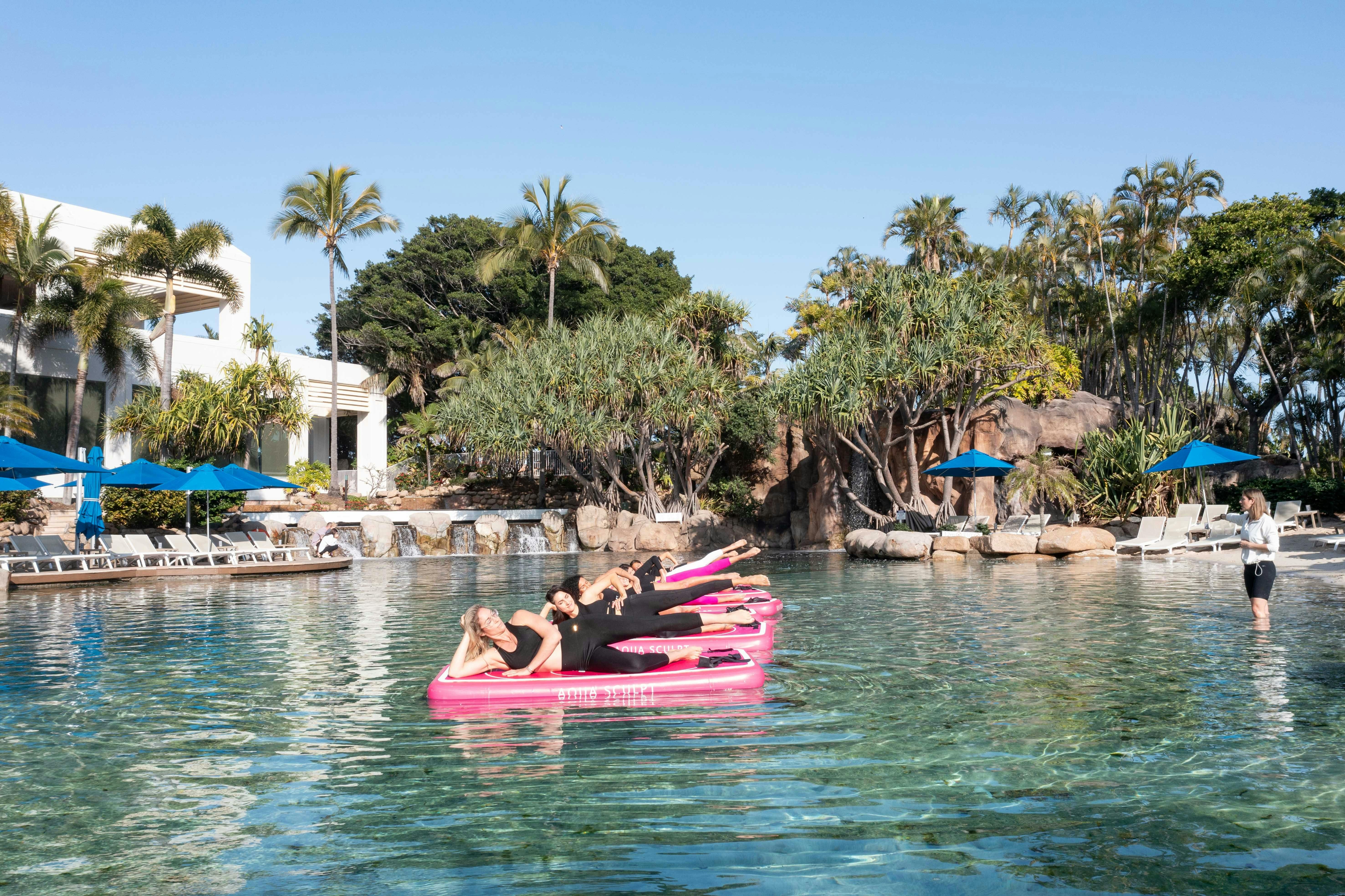 Aqua Sculpt at the JW Marriott Gold Coast Resort & Spa, Surfers Paradise offers a unique one-of-a-kind wellness experience, combining the strength and flow of Pilates with the serenity of floating on water. Using purpose designed floating boards in their stunning lagoon pool, participants are guided through movement that challenges balance, tones muscle, and calms the mind, all while immersed in nature.