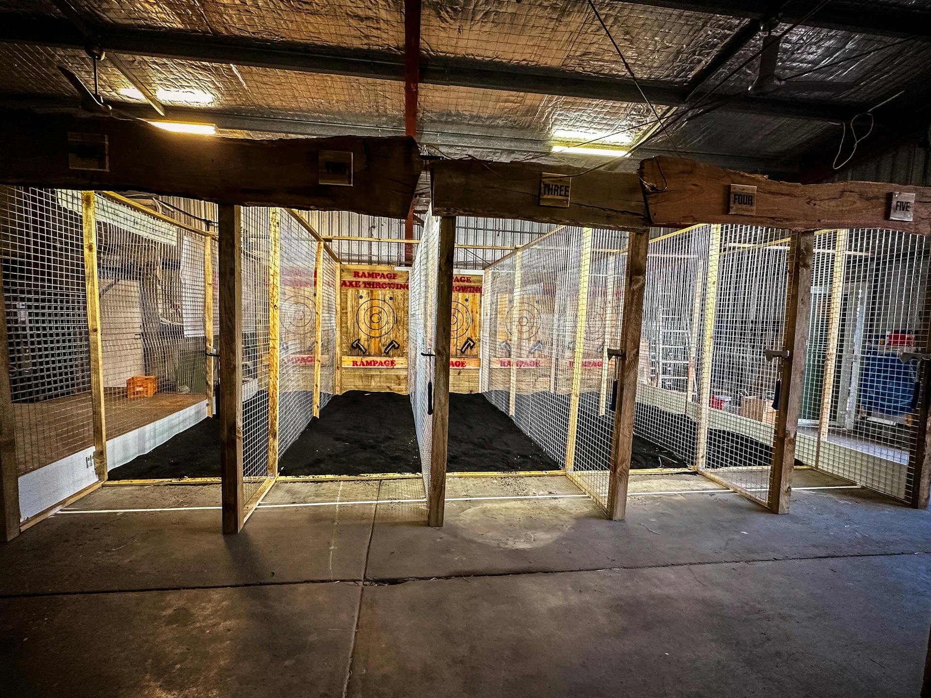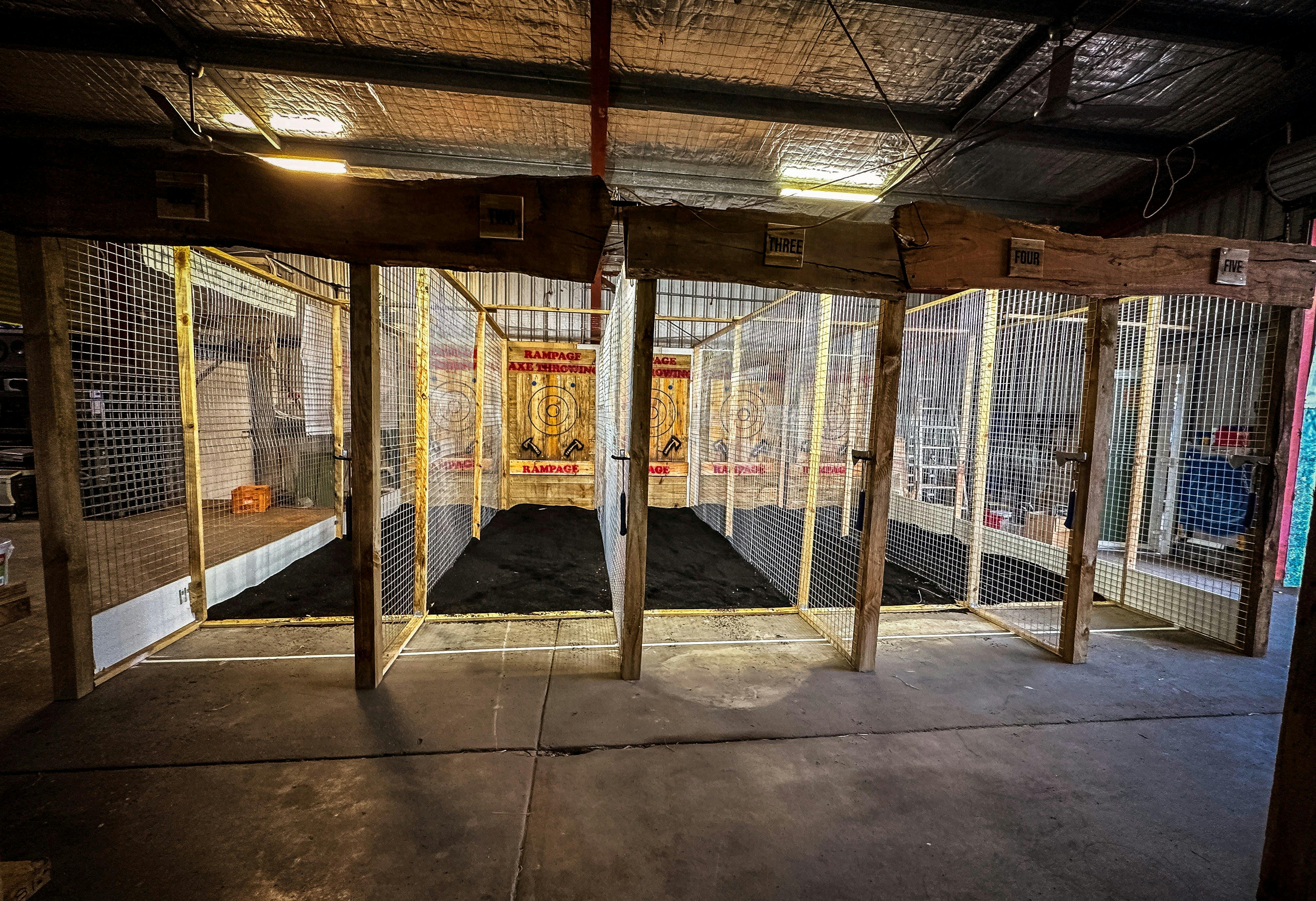 Rampage Axe Throwing opened at North Booval in early 2023, tucked in behind the Rage Cage Smash Rooms that opened a few months earlier. Owner Matthew Pendragon is no stranger to unusual entertainment venues, with other Smash Rooms, at Southport and Browns Plains, well established. He is also an avid axe thrower and competes in a league in Brisbane.