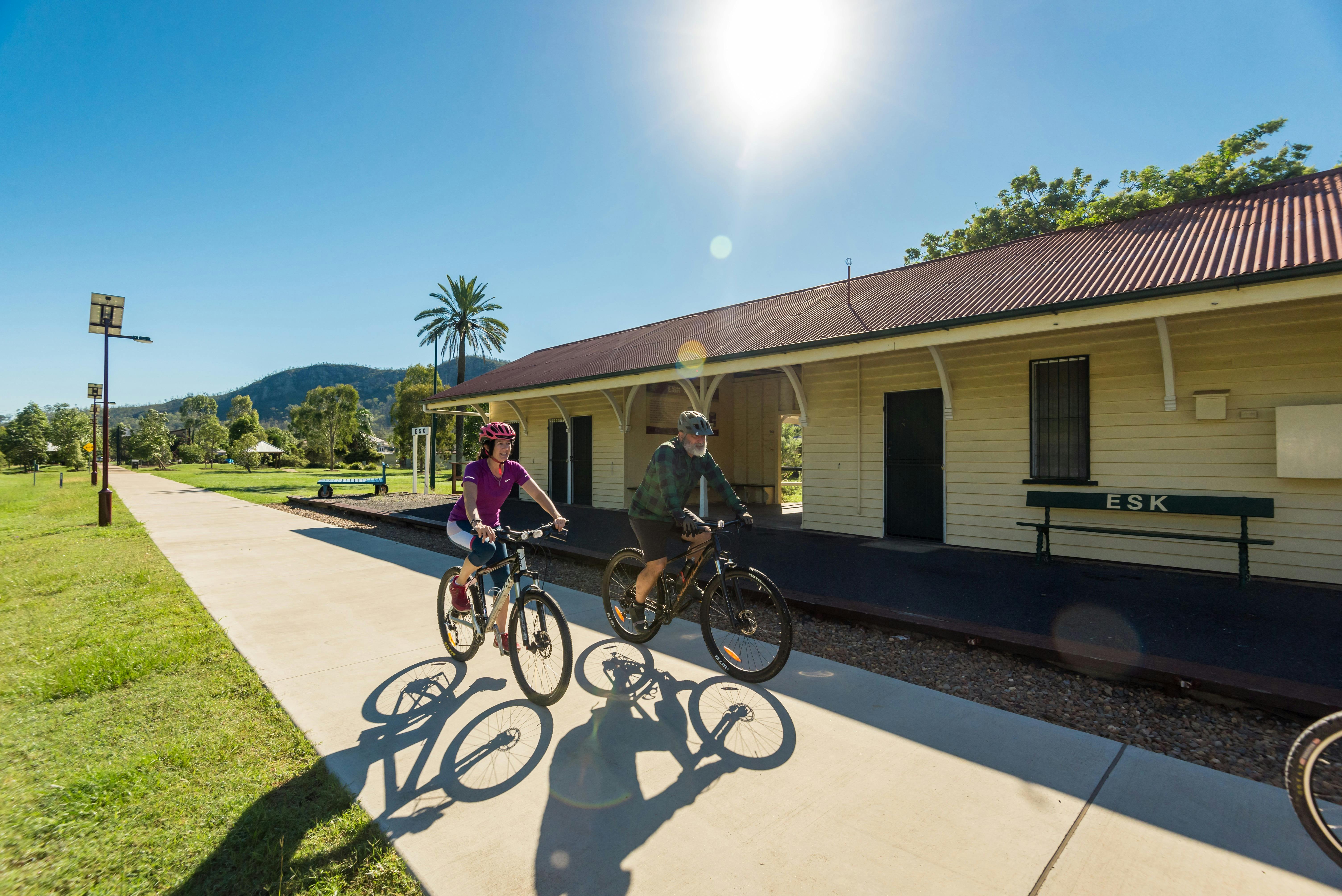 Escape to a trail brimming with breathtaking mountain scenery and tranquil waterways, old train stations and carriages, and a rich history of early settlers along the old Brisbane Valley Railway Line.