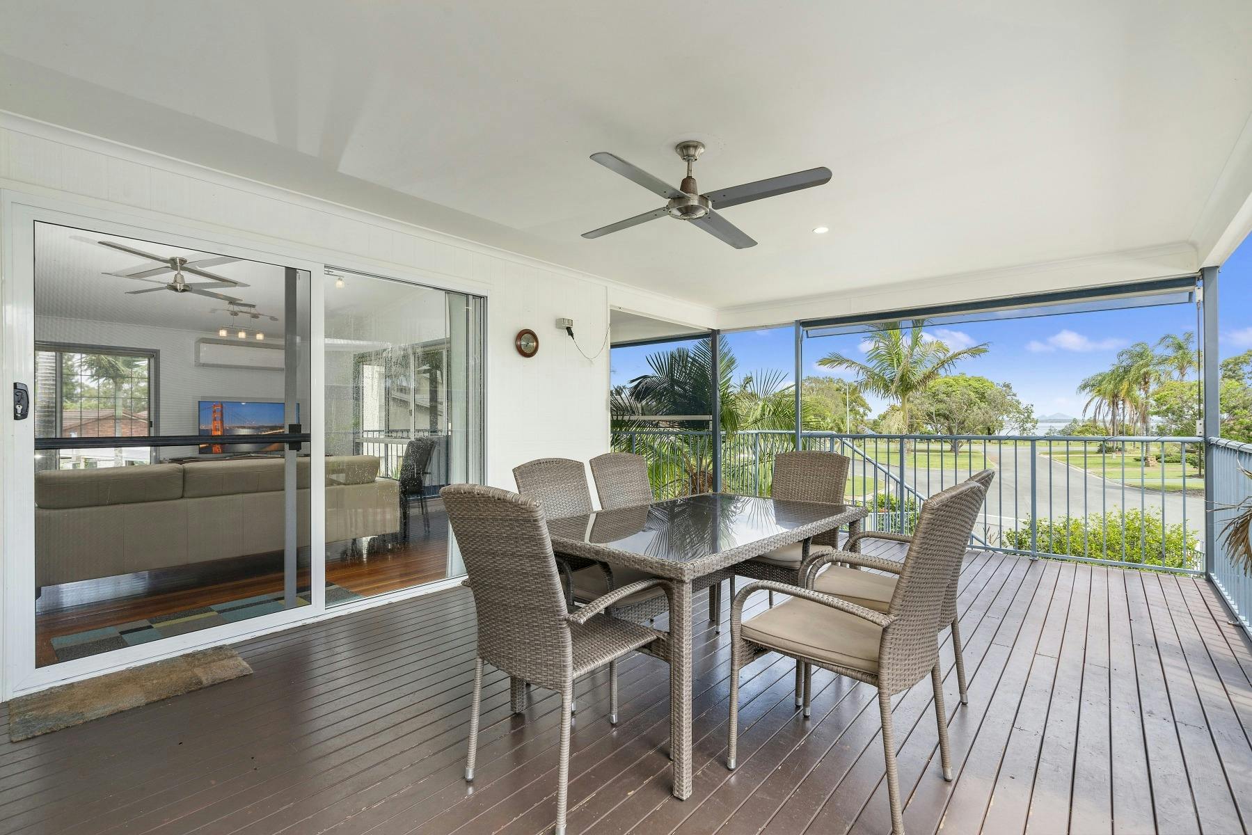 This stunning four bedroom house is the perfect spot to sit on the balcony overlooking the beautiful Pumicestone Passage of Bribie Island with the stunning Glass House Mountains in the background. Walk across the road to undercover BBQ areas, play in the park, walk the dogs, swim at the beach or simply just relax.