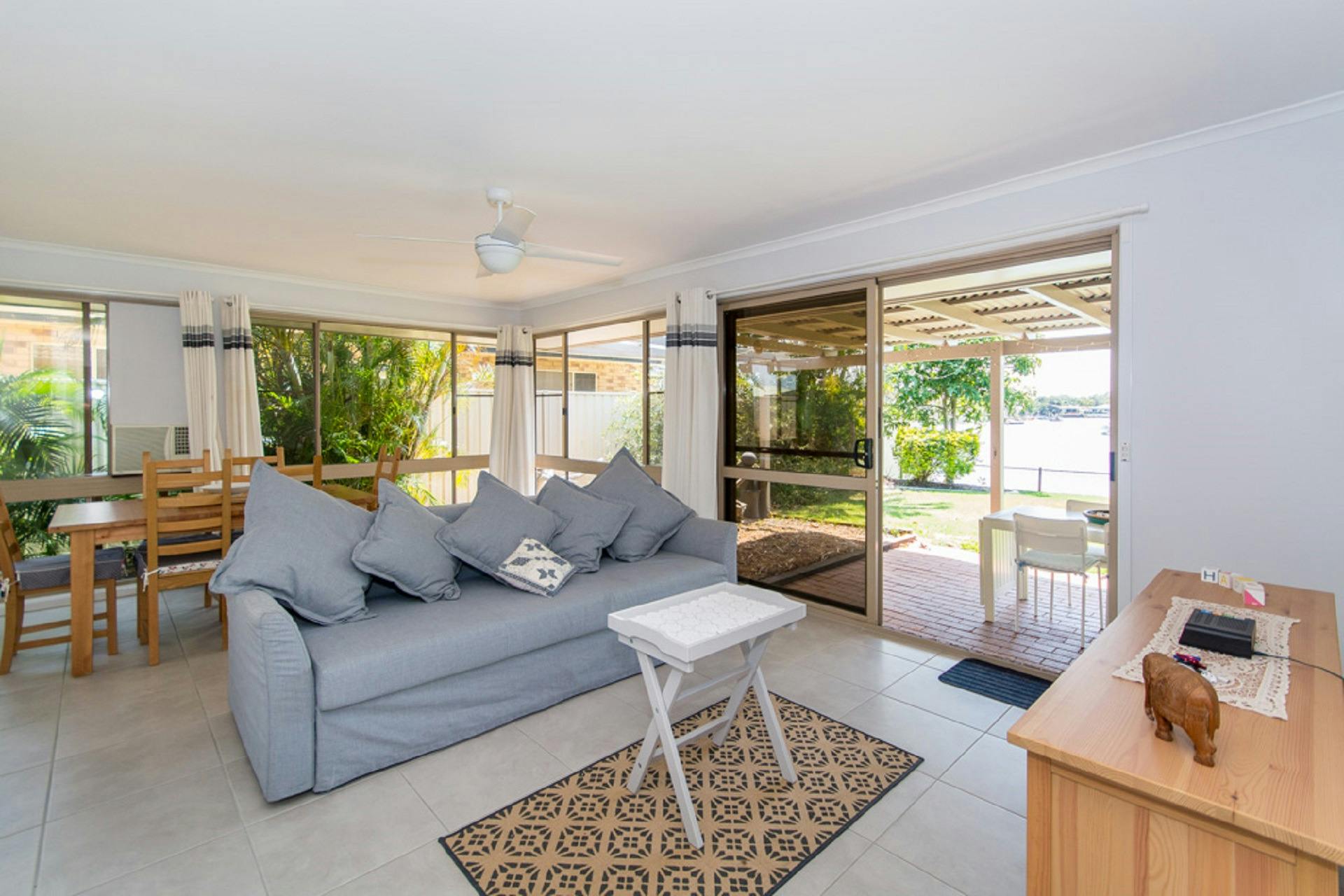 Spacious, lowset, pet friendly house with rear patio overlooking the canal.