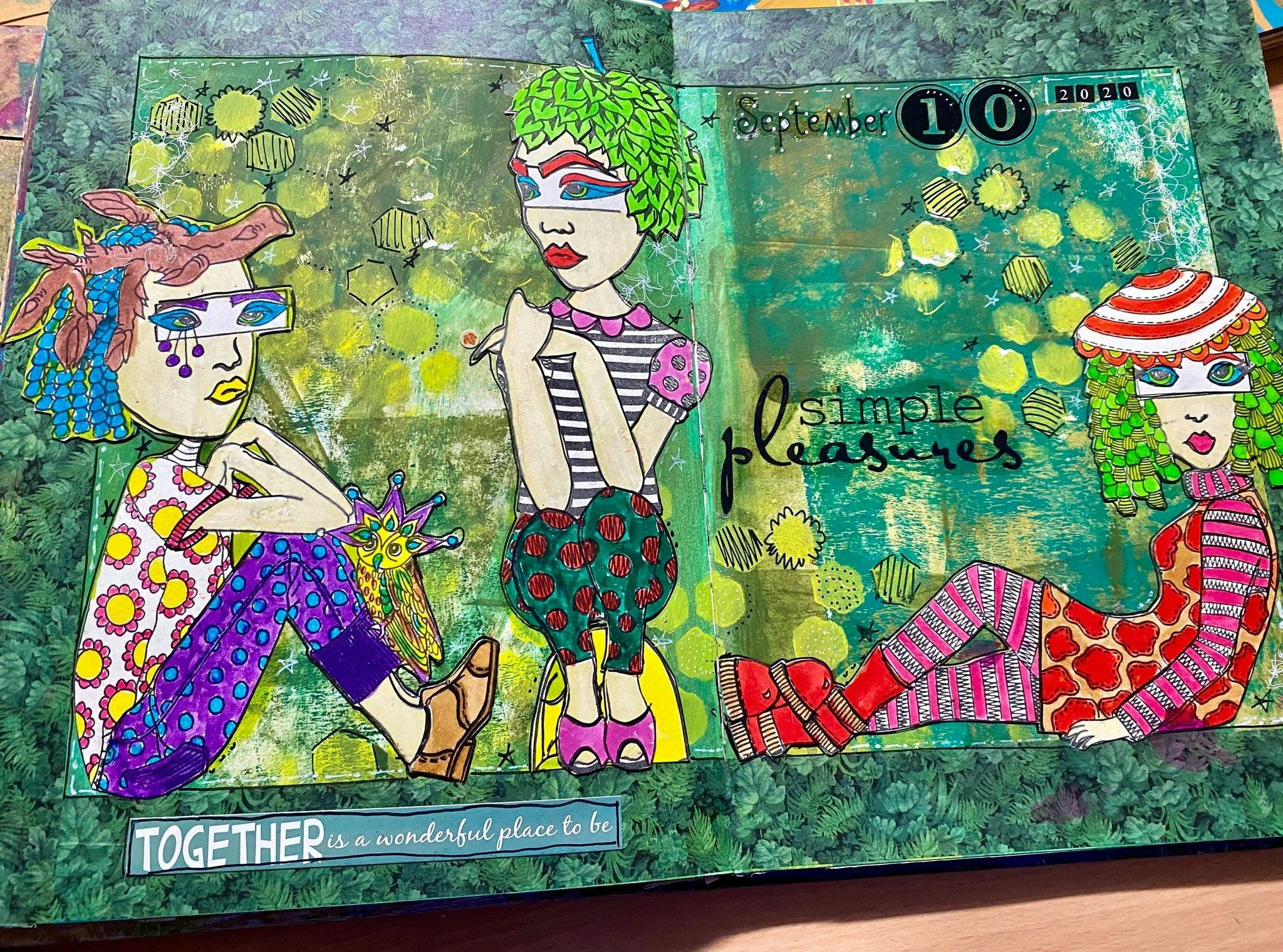 Join the vibrant art journaling workshops and immerse yourself in a world of colour and imagination alongside Julia.