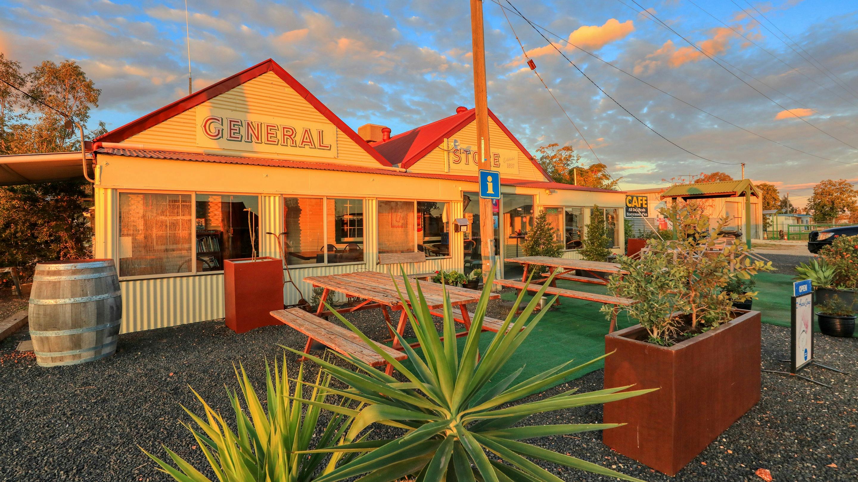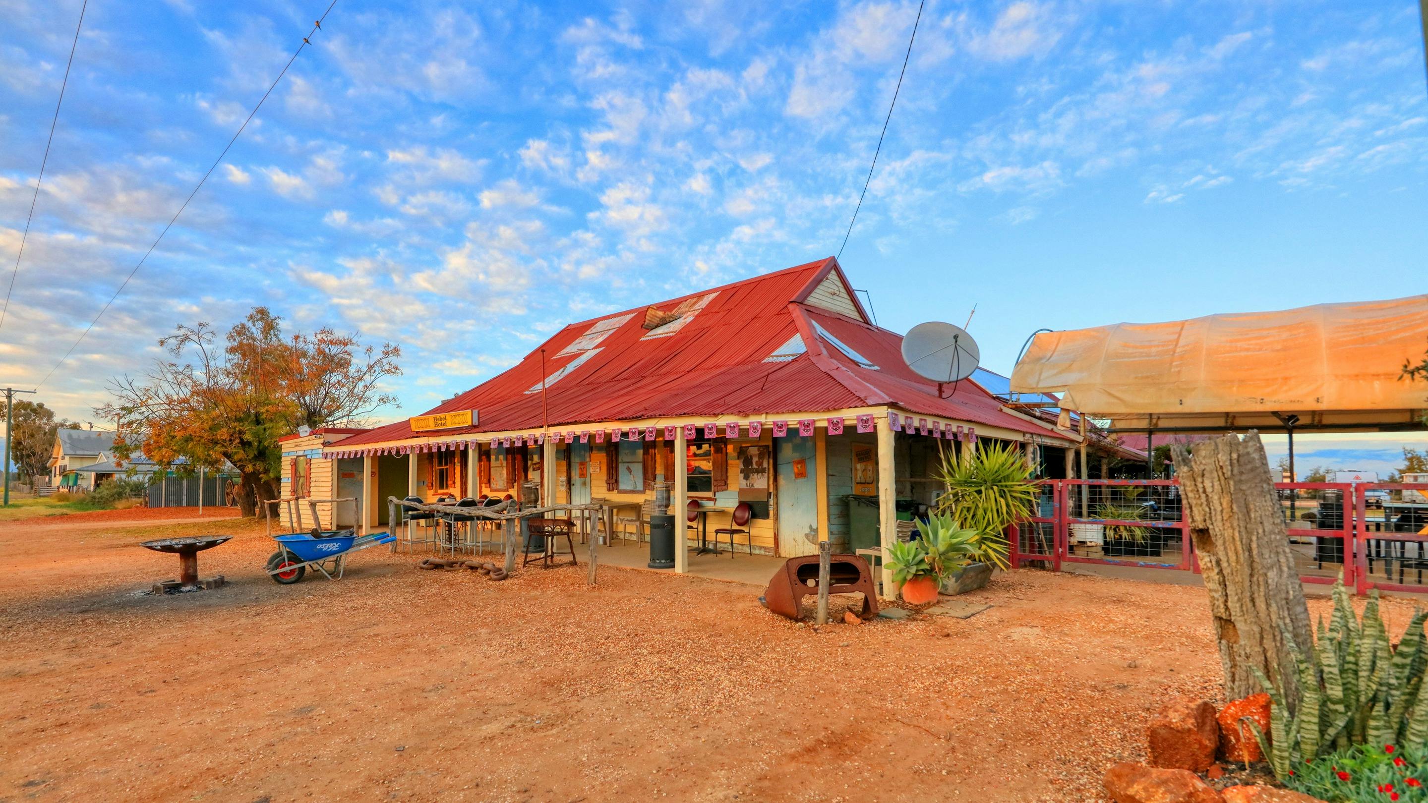 The Hebel Hotel and General Store has been owned since 2020 by a local farming family committed to the town and its people. The Hebel Hotel offers varied accommodations, including cabins, guestrooms, and single bunkhouse rooms, all equipped with air conditioning and TVs. There is also a coin-operated laundry available. Free camping can be found behind the hotel, making it a convenient and welcoming stop for travellers exploring this historic region.