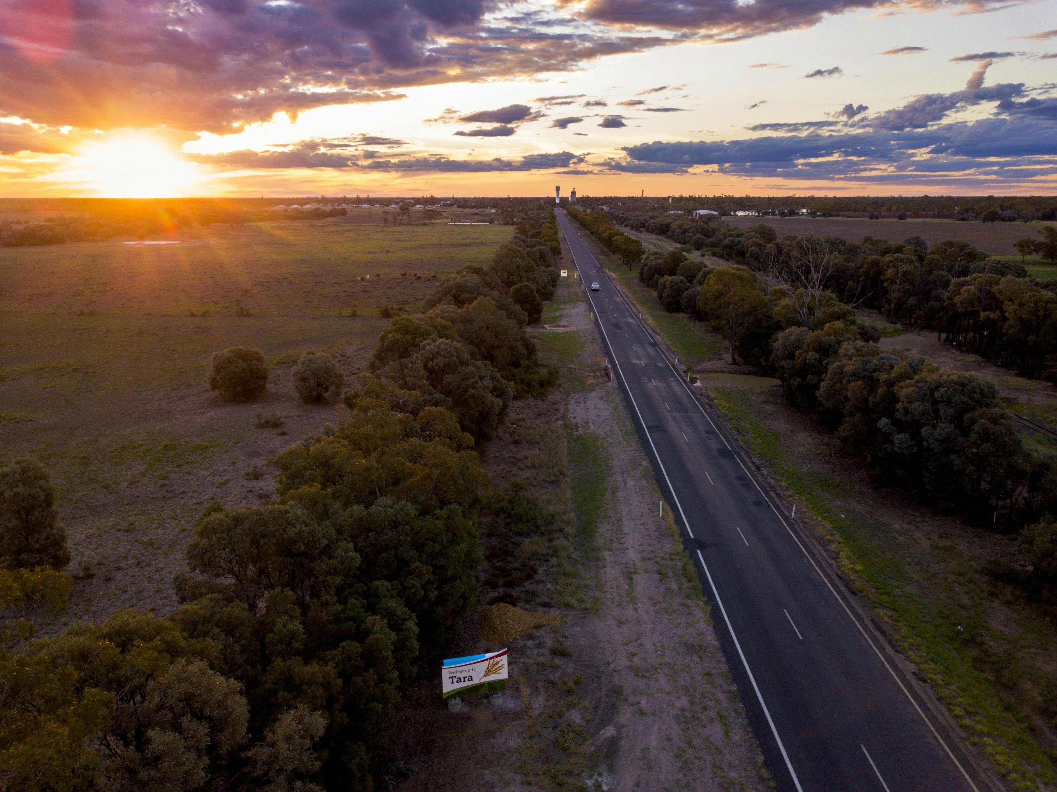 It’s guaranteed no traffic lights, or even roundabouts along this relaxed country drive, travelling west from Tara in Queensland Country and following sunsets across big open skies until you reach Surat, three hours west, on the edge of Queensland’s Outback.