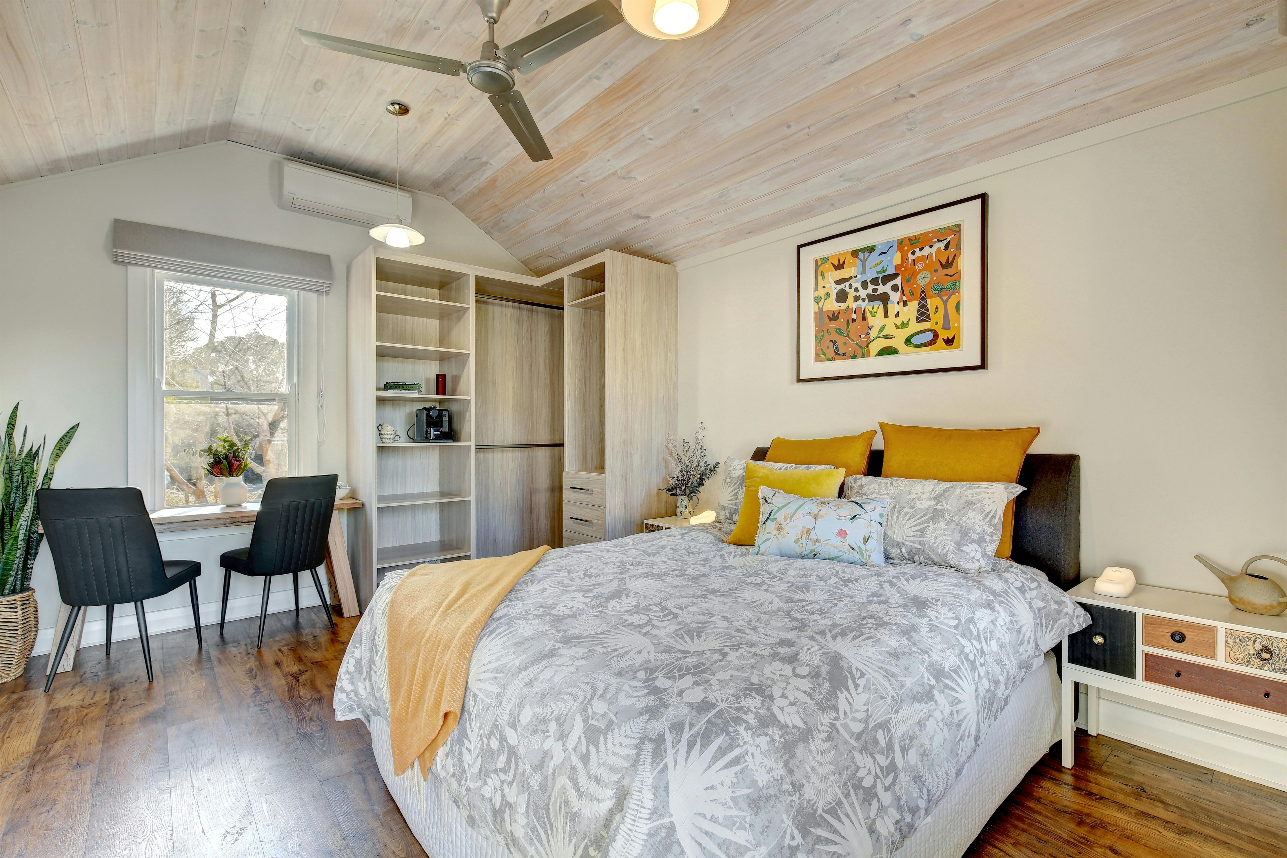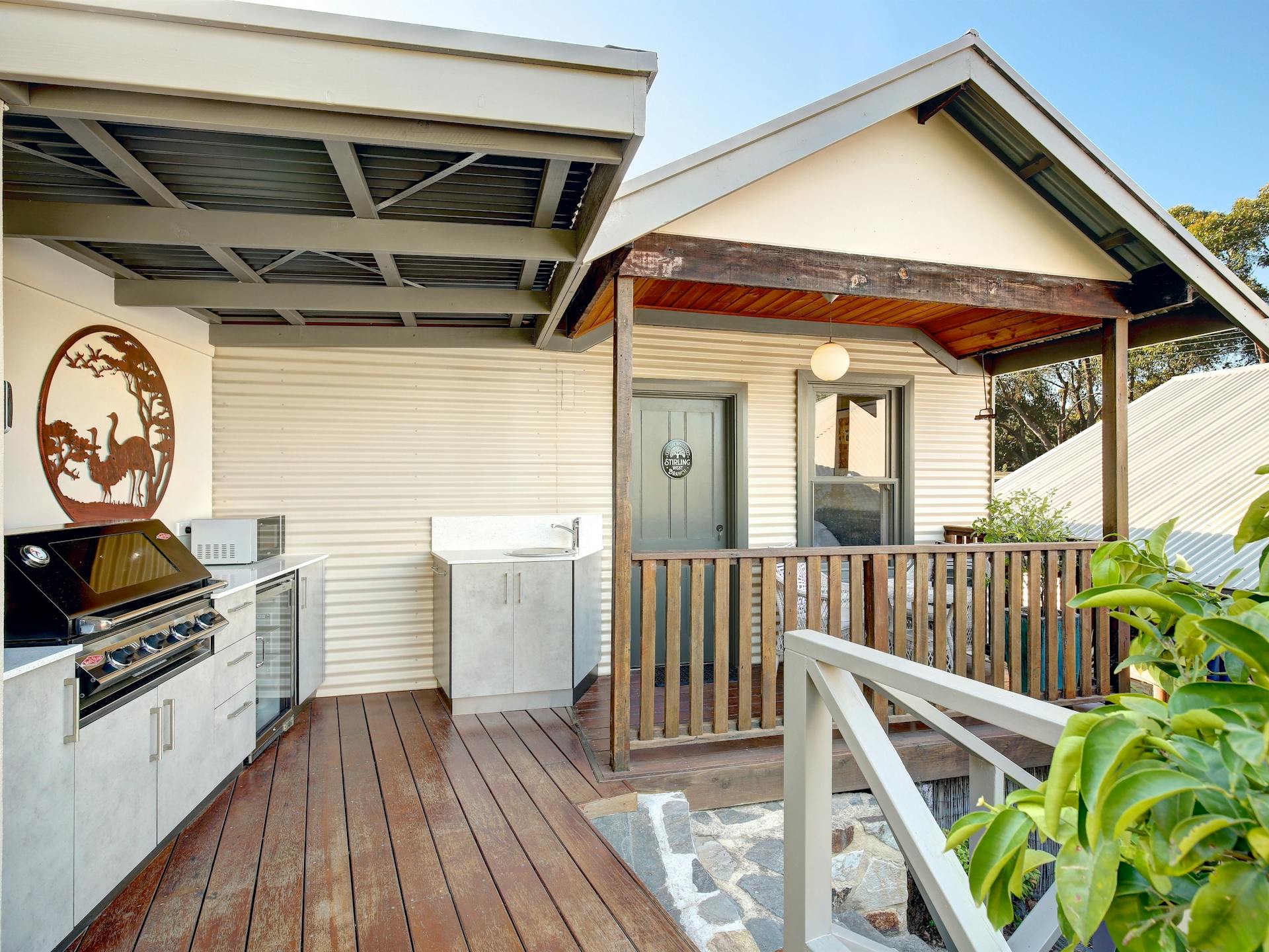 The modern, spacious detached Studio Room dwelling has all of the wonderful character of the main cottage style house. The bed&breakfast is modern. It has a new sparkling bathroom as well as a new undercover outdoor kitchen which is situated on a private deck. All appointments ooze quality.