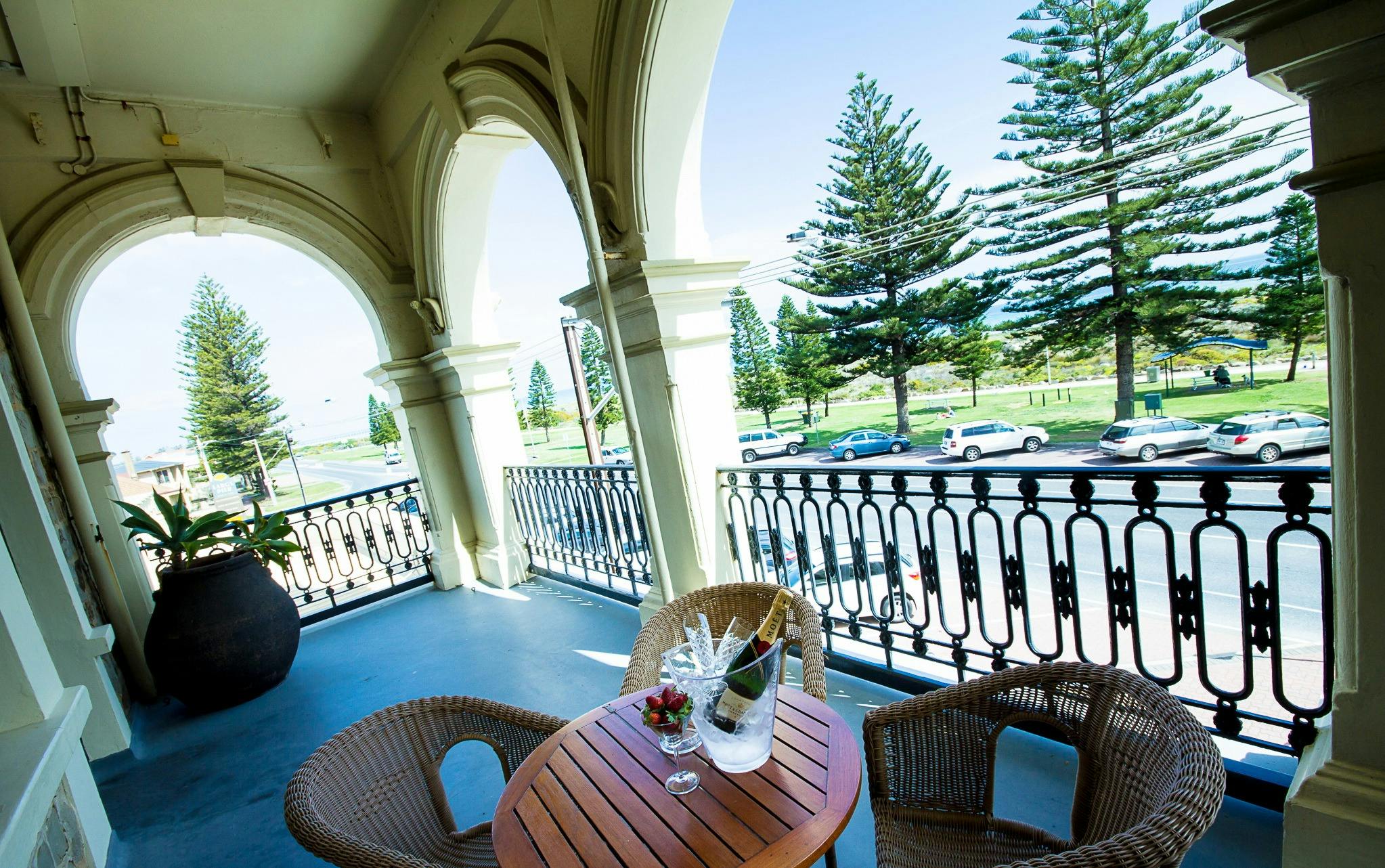 Established in 1882, the Largs Pier has long been an imposing landmark overlooking the Lefevre Peninsula. Its three-story bluestone structure with stuccoed arcades on all levels, elegant archways adorned by eagles with outstretched wings and its grand staircase, are all symbols of elegant craftsmanship from a bygone era.