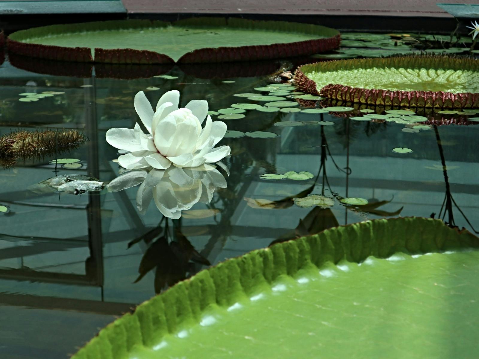 Nearby, the Amazon Waterlily Pavilion immerses visitors in a tropical world of giant lily pads and delicate blooms.