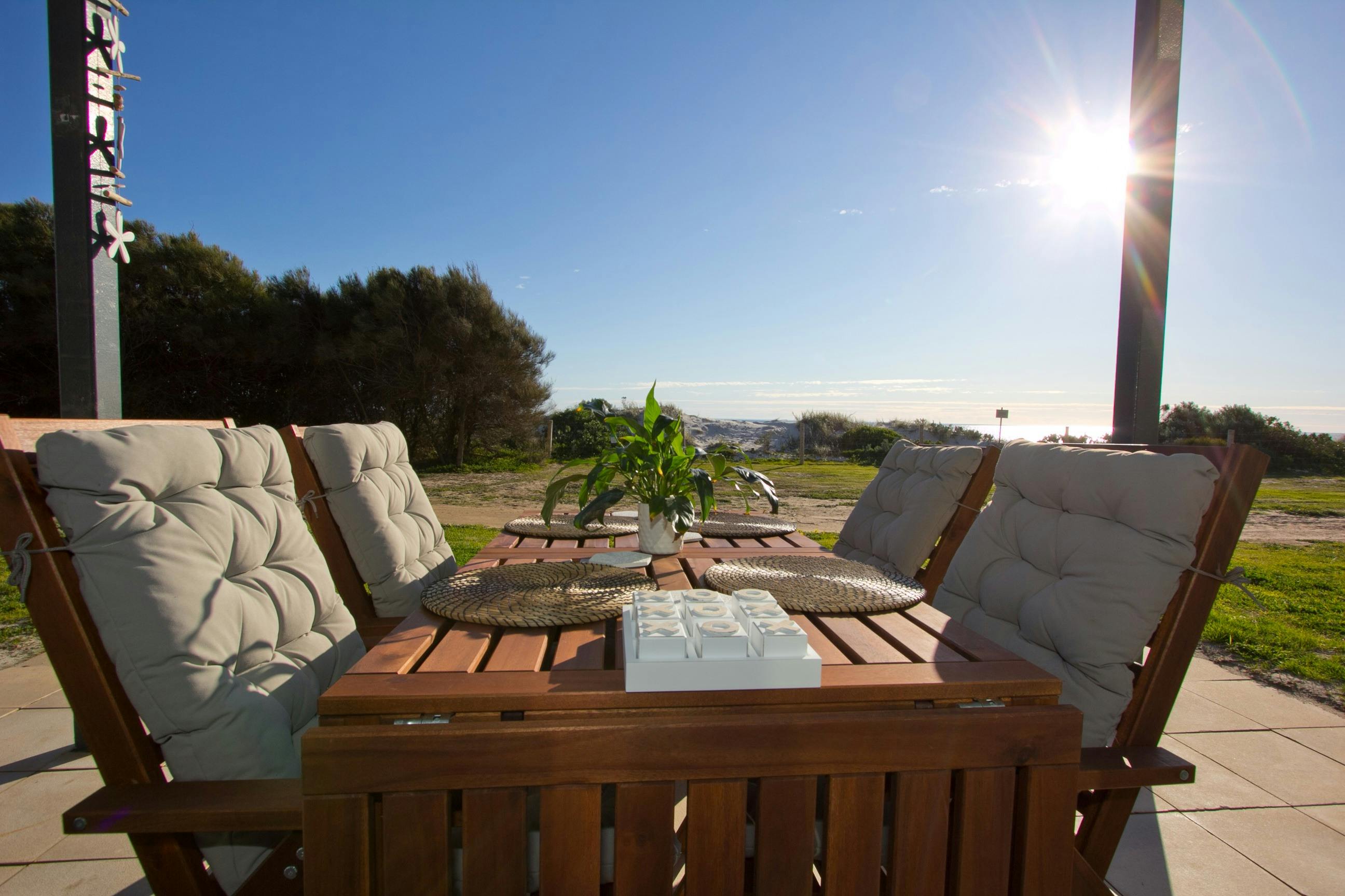 Dine on the balcony while watching the sun set over the ocean.