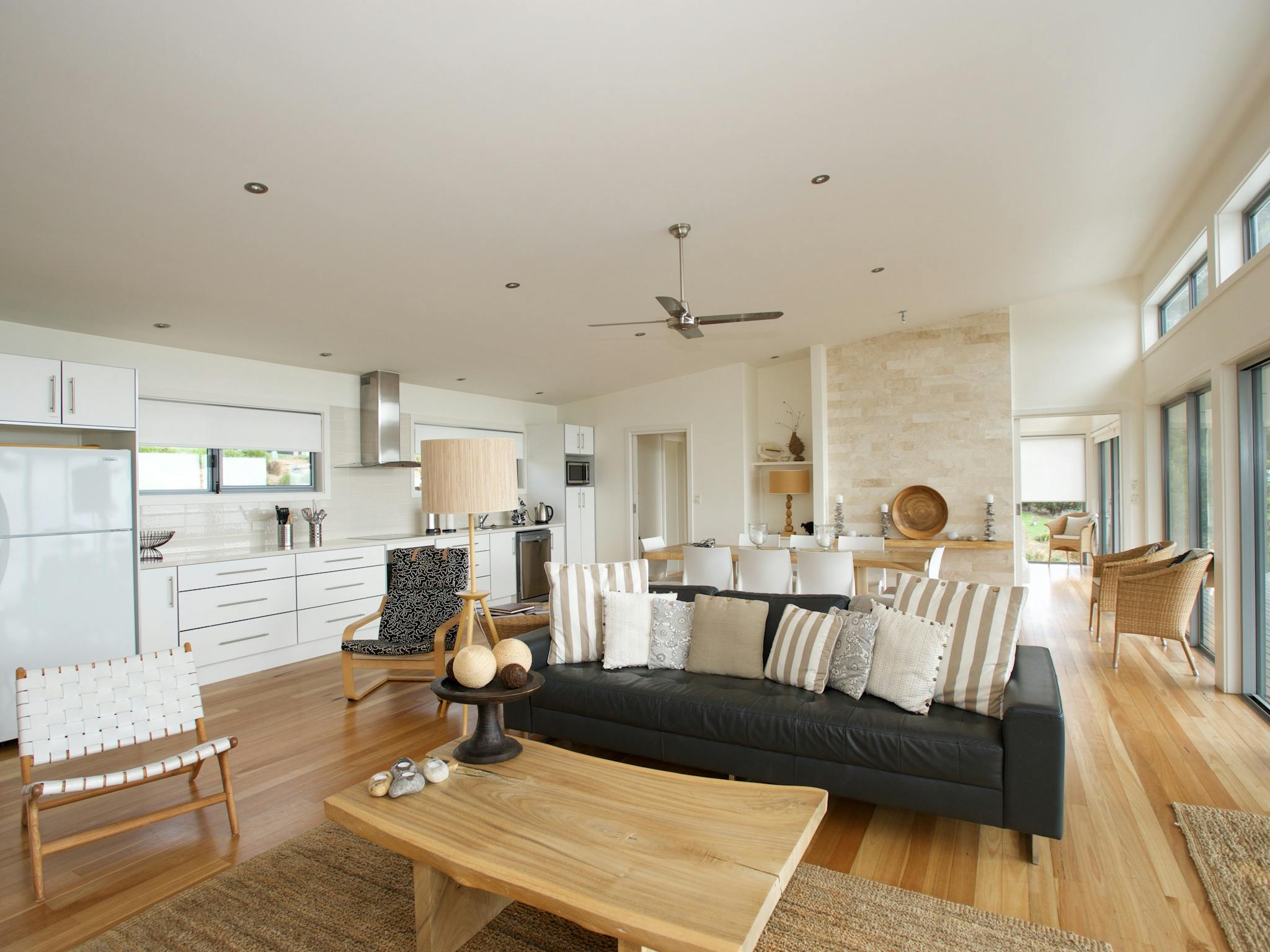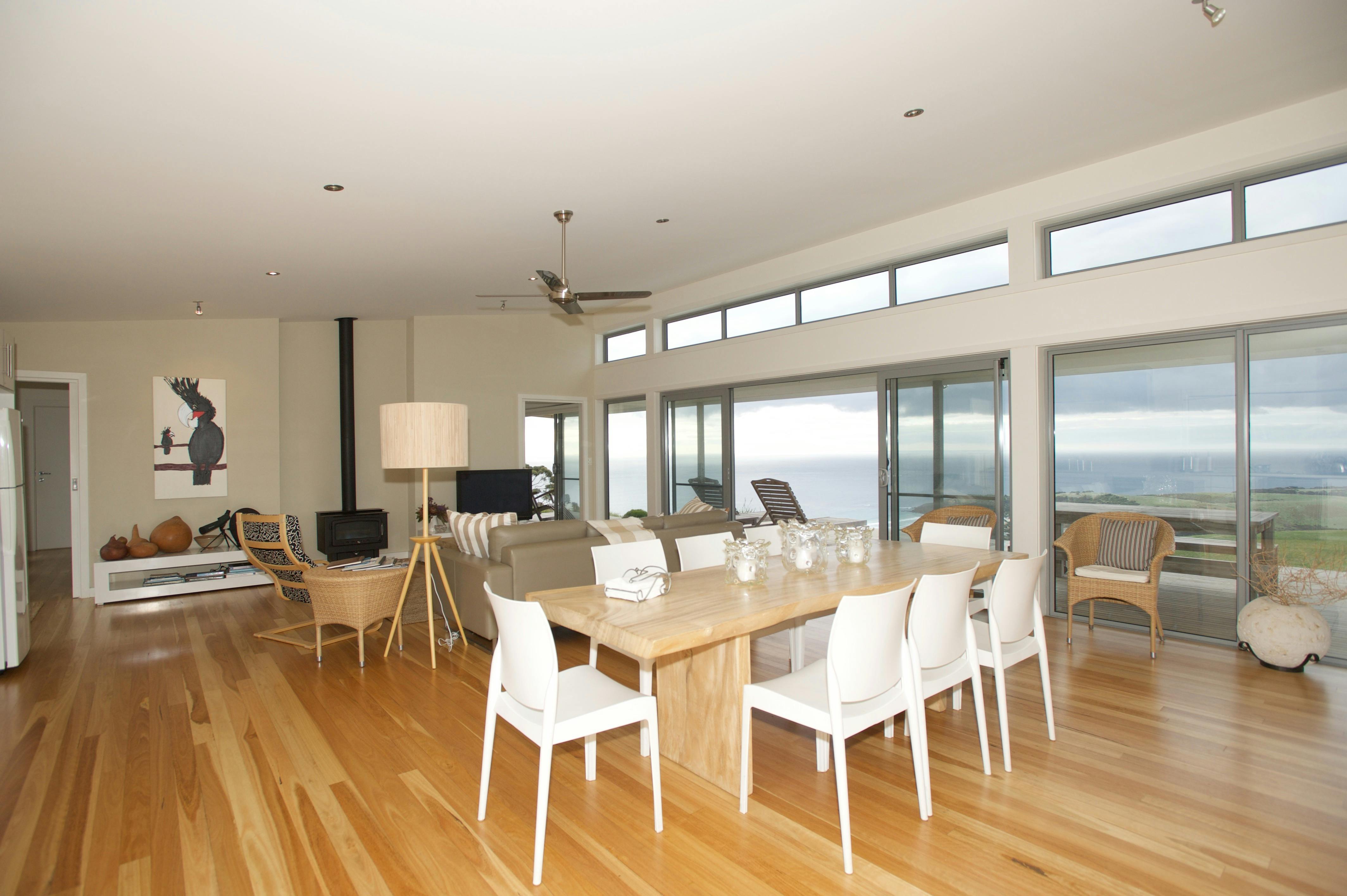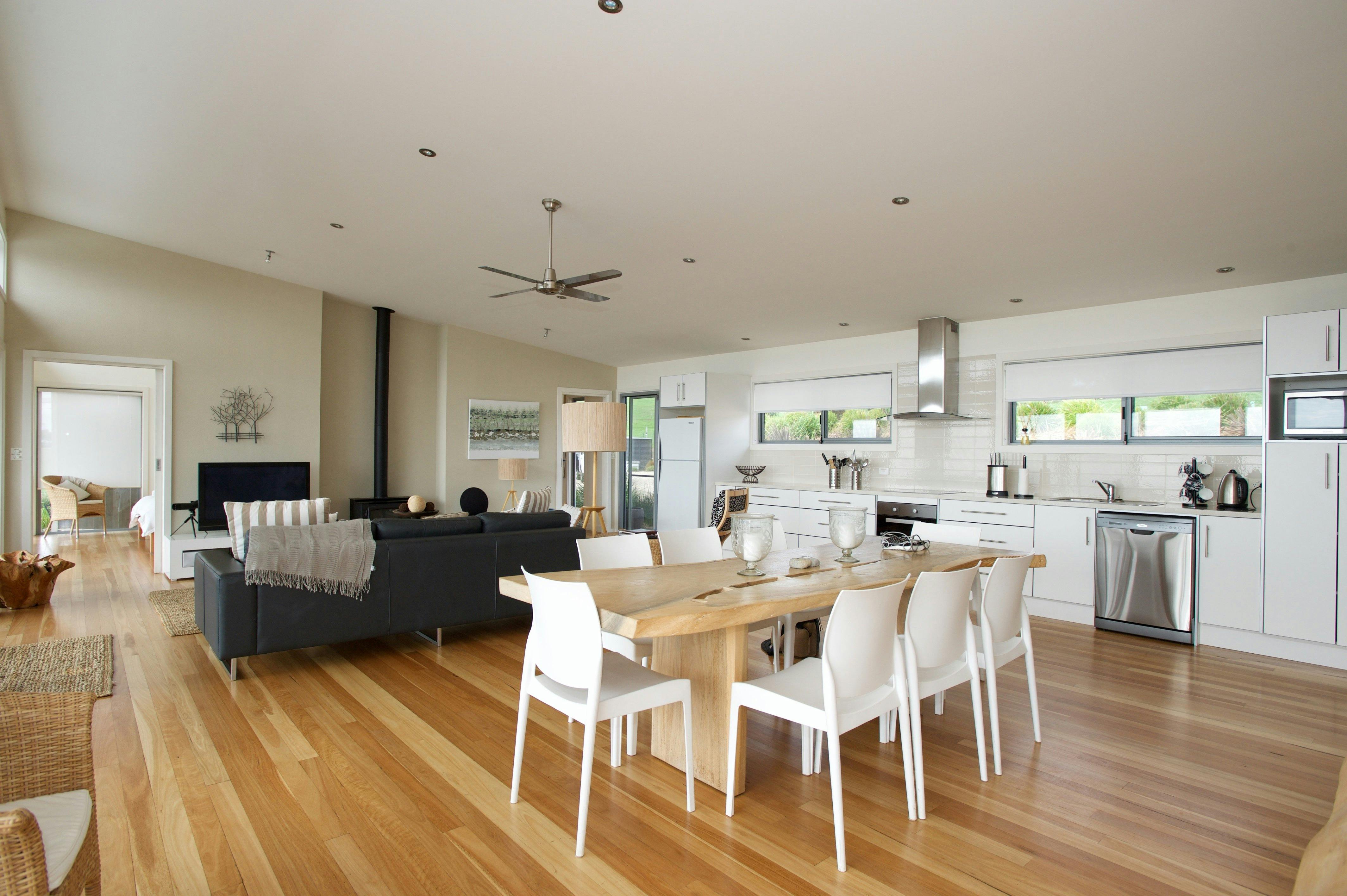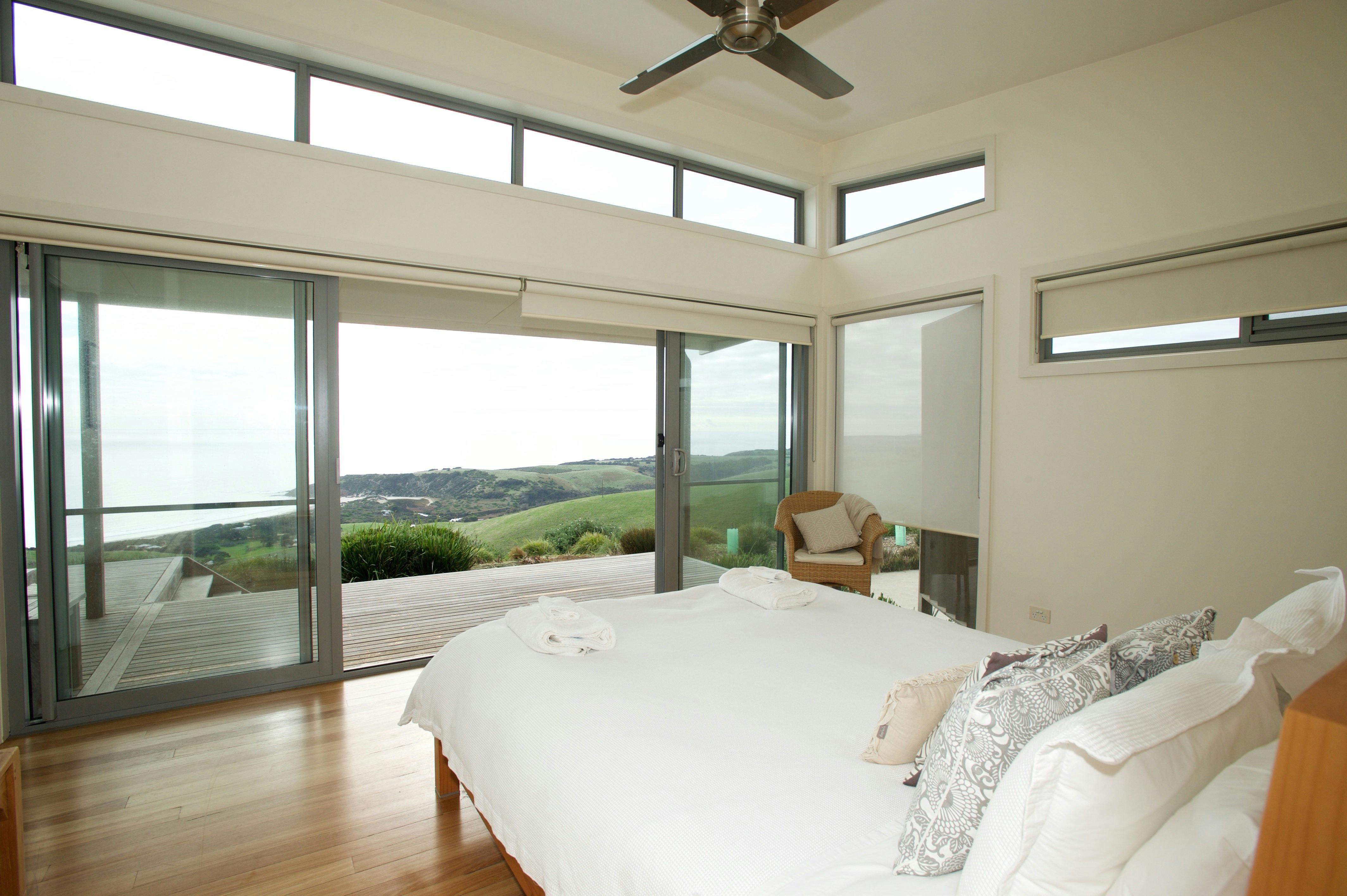 Guests can enjoy uninterrupted views of Kangaroo Island’s pristine coastline and spacious and fully appointed open plan living, dining and kitchen area, equipped with modern stainless steel appliances and superbly finished with natural timber flooring and gas log fire. Bathrooms featuring Italian fittings and limestone floors provide the perfect space for relaxation.